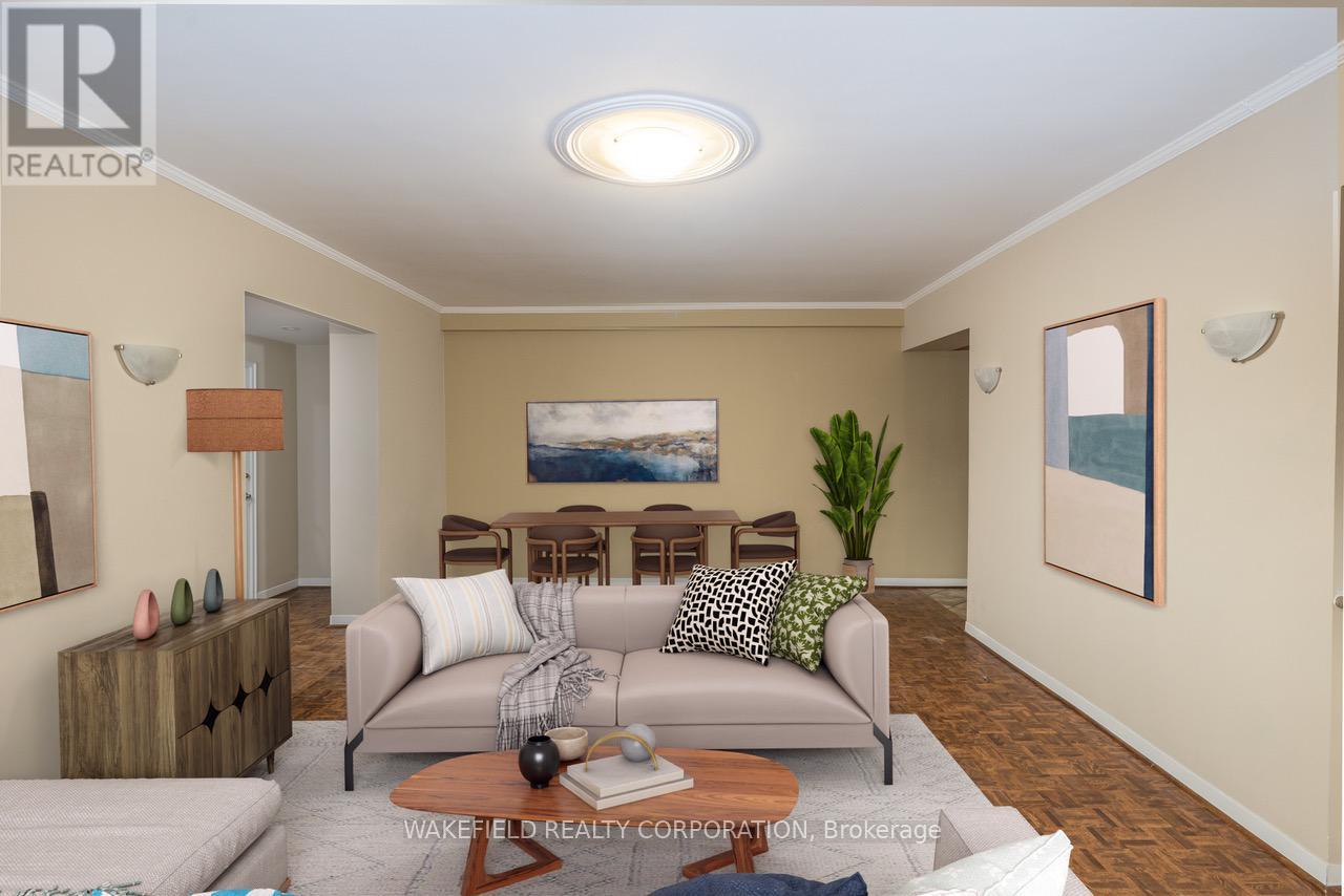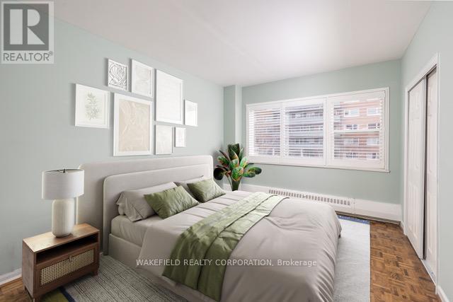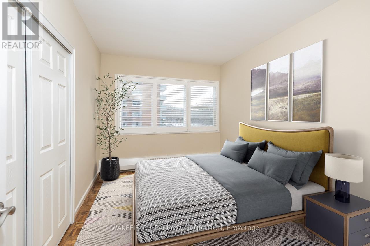 The Kensington Apartments in South Rosedale at 21 Dale. Known for their generous floor plans, ravine, garden and courtyard views on a 5 acre property in the heart of one of the most desirable neighbourhoods. Apartment #635 is 1018 sq ft . Two bedrooms facing East into the ravine and the south courtyard - glorious in summer with an outdoor pool surrounded by sundecks and landscaped gardens. Spacious and sunlit combined living/dining room with a walk out to a 22 ft balcony. Both bedrooms have double closets. The apartment was fully renovated about 12 years ago and the basics were all upgraded at that time. The kitchen is partially open to the principle rooms and has a breakfast bar and space for stools. "Other" in room descriptions is the balcony - BBQs allowed. Additional amenities - An exercise room, library, indoor pool, whirlpool, 24 hour concierge, E V charger and guest parking. Pet friendly. The subway is an easy 2 block walk away. Please note - Maintenance includes - Realty Taxes, Heat, Cable TV, Wifi, Internet, water, building Insurance and maintenance of common elements. Additional Payments not included: Hydro and Parking. Rentals are not permitted and this is a non smoking building. Virtually staged. (id:4555)