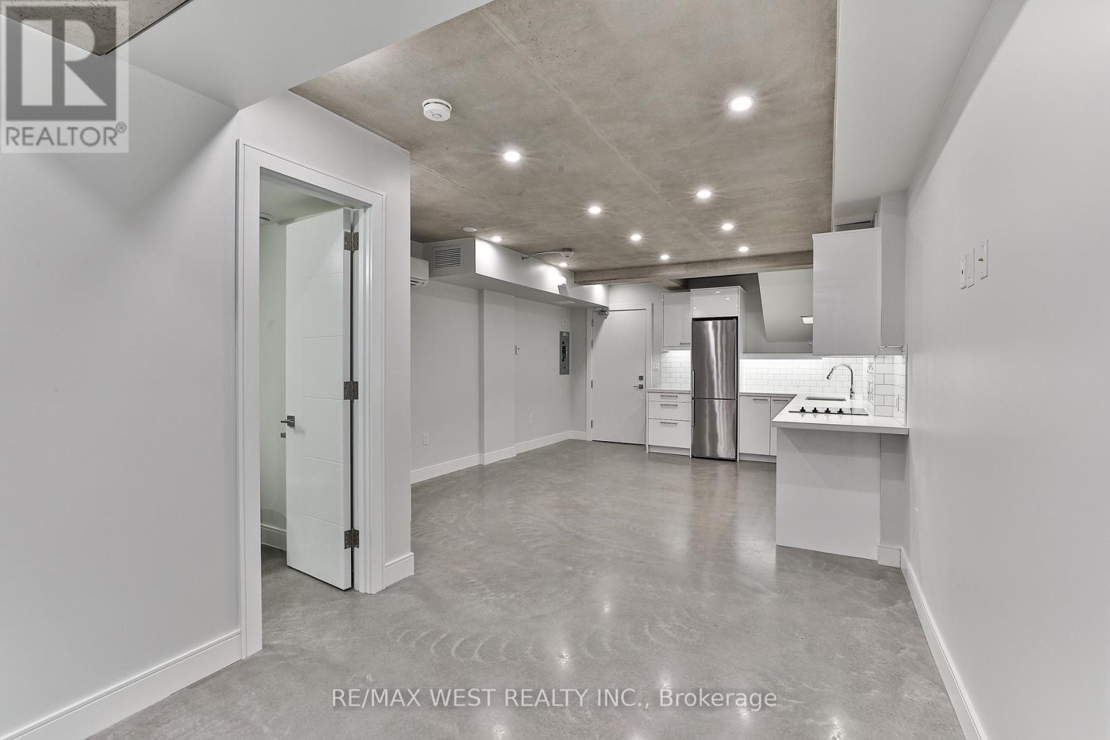Brand new LOWER LEVEL UNIT in stunning boutique building built w/ finest craftsmanship & incredible attention to detail. Bachelor/studio unit with open concept lofty feel. Featuring high exposed concrete ceilings, polished concrete flrs w/ radiant in-floor heating, pot lights & custom kitchen w/built-in S/S appliances & quartz countertops. Functional open concept layout w/ loft style feel. W/3Pc Ensuite w/ walk-in shower. Access to BBQ in common area. Just steps from stockyards, 401, Ttc & Lrt! Water included, just pay gas & hydro (Street parking is free) Very well insulated (solid concrete walls and ceiling with sound proofing)HRV system (allowing for fresh outside air to be recirculated into the unit) (id:4555)
