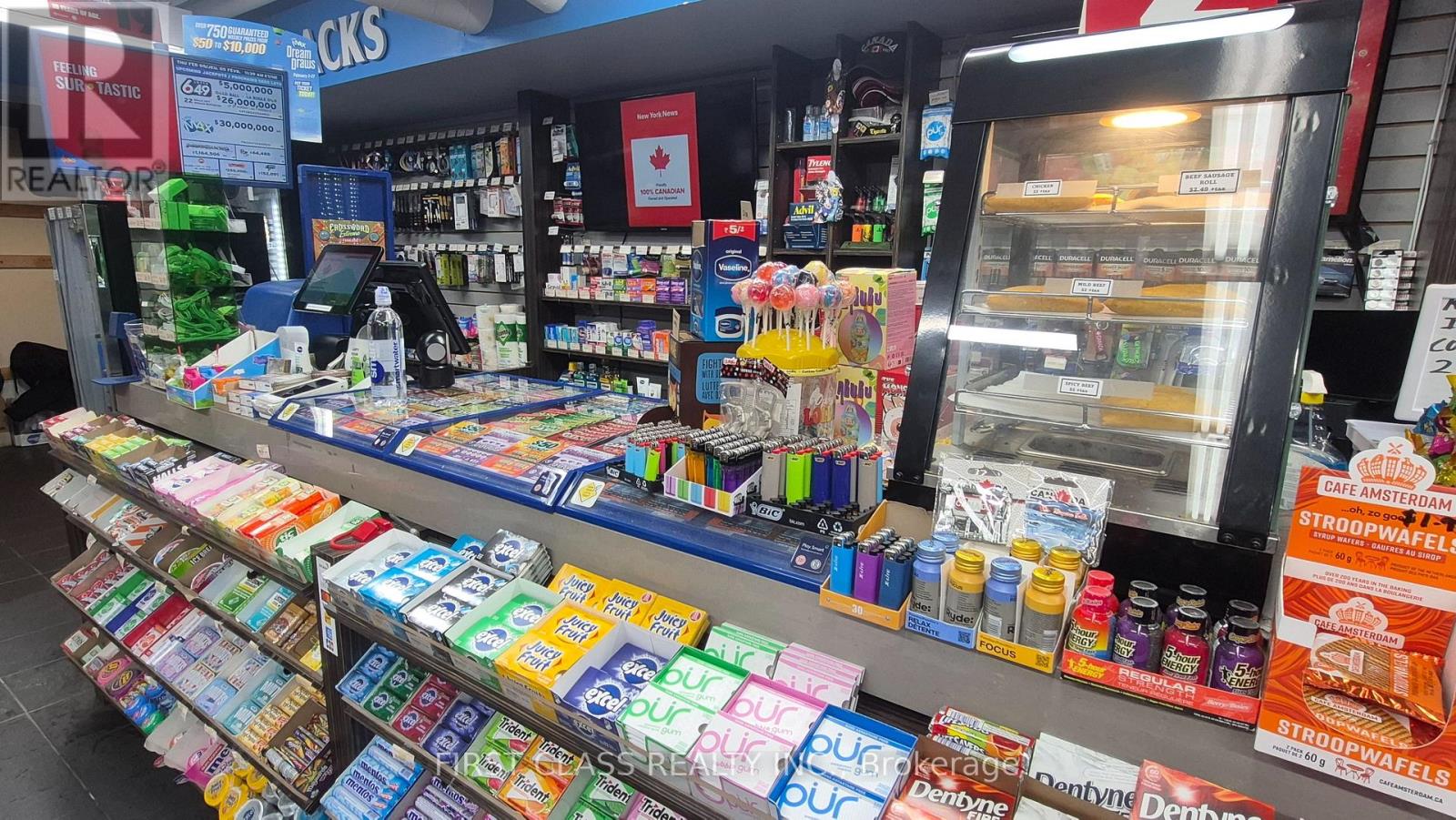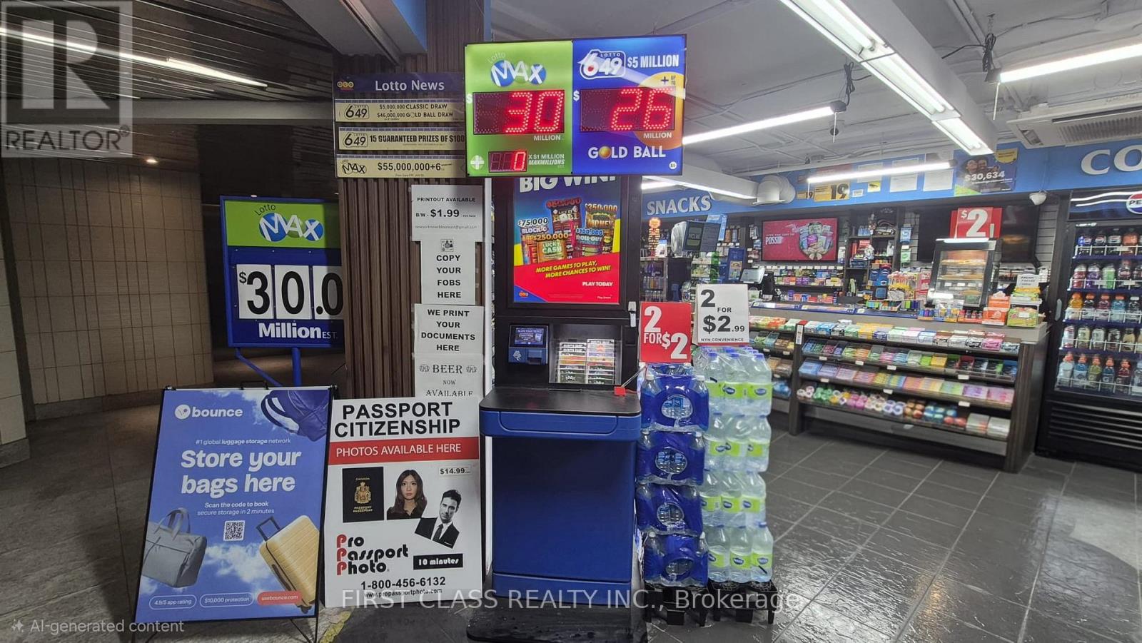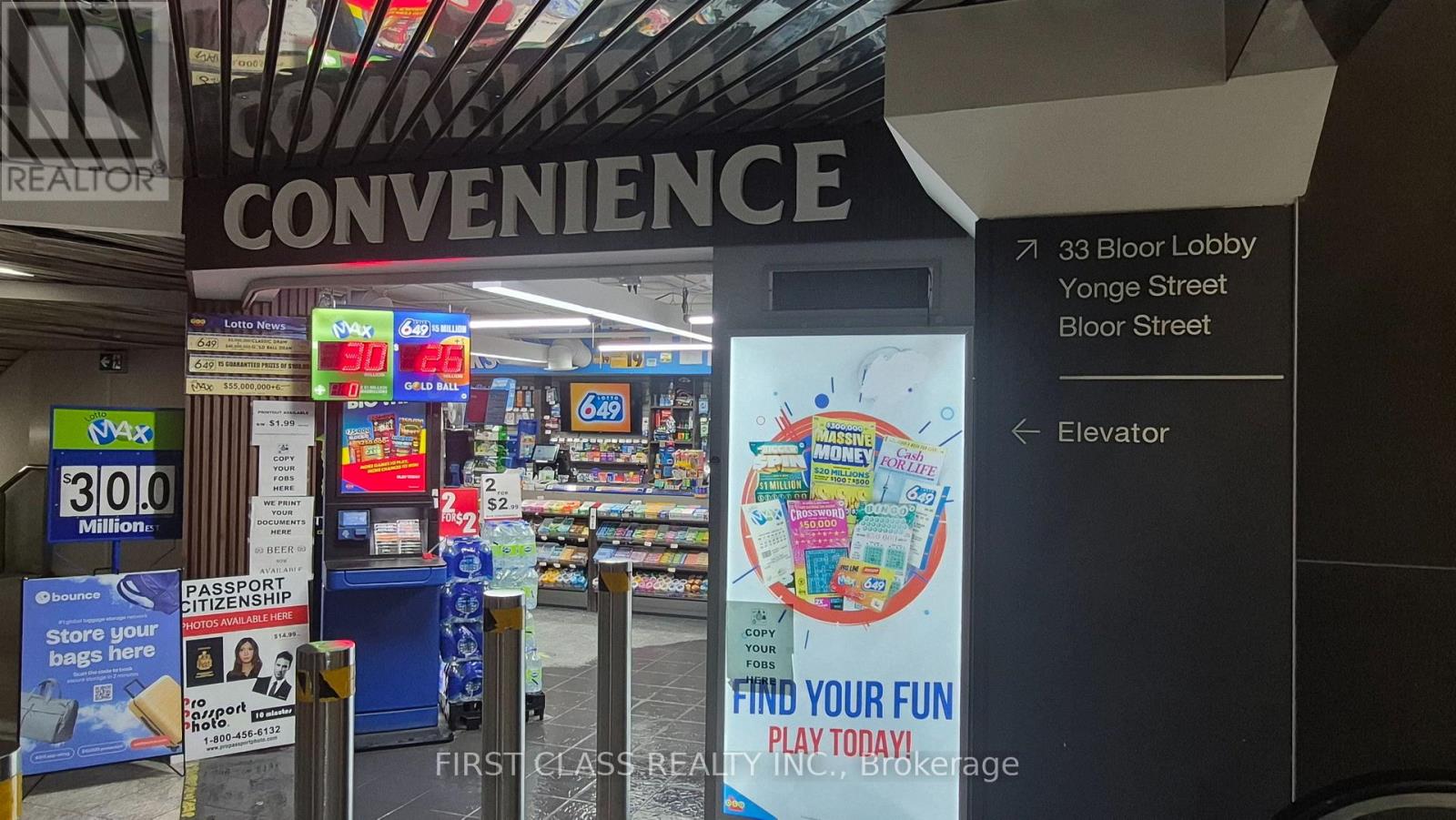 Rare opportunity to acquire a high-traffic New York News franchise convenience store at the iconic Yonge & Bloor intersection - opportunities in this premier corridor seldom become available. Located within prestigious 33 Bloor St E, a Class A office tower surrounded by luxury retailers and premium brands. Situated inside the building along the interior retail corridor linking One Bloor Condo and Yonge-Bloor Subway Station, capturing steady commuter and residential foot traffic year-round. Approx. 654 sq ft with efficient, easy-to-manage layout. Monthly rent is $4,237.38+HST (including TMI and Hydro), Long-term lease (5 + 5 years) with less than 2 years utilized, providing operational stability and future upside. Fully licensed including Beer/Wine, Tobacco, and OLG Lottery. Multiple revenue streams from Pro Passport Photo Service, PUDO parcel services, Bounce Luggage Storage services, Fobs copy and more. Business for sale only. Premises leased. Ideal for owner-operator or investor seeking stable cash flow in one of Toronto's strongest retail nodes. (id:4555)