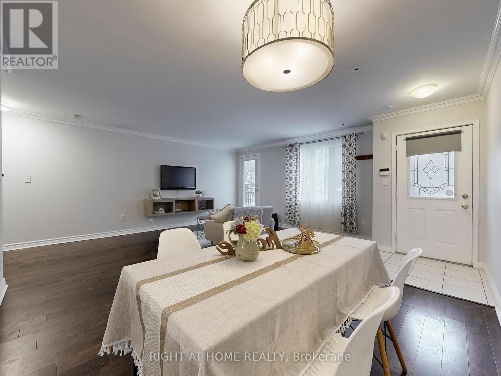 Rarely offered two-storey condo townhouse with two parking spaces in Chelsea Gate, steps to Finch Subway Station, shopping, and restaurants. Carpet-free living with fresh paint throughout. Bright unit featuring an open-concept living and dining area, and an eat-in kitchen with backsplash, stainless steel appliances, and breakfast bar. Upper level offers two bedrooms, a full bath, in-suite laundry, and a spacious den ideal for a home office or recreation area. The primary bedroom includes a walk-out balcony and walk-in closet. Approximately $10,000 in upgrades, including an owned new tankless water heater and hydronic air handler. Move-In Ready. Ideal for first-time buyers, families, or downsizers seeking space, comfort, and convenience. (id:4555)