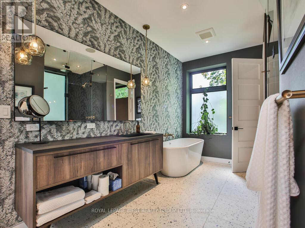 Contemporary meets Mid-Century Modern in this unique, custom-built Bone Structure home, featuring every designer detail. Radiant heated floors throughout. Sleek Scavolini kitchen and cabinetry. Entertain effortlessly in the gourmet kitchen equipped with a professional range featuring a steam oven and warming drawer, touch-open panels concealing the fridge and freezer, and custom solid-slab Laminam porcelain countertops and backsplash.This home offers four generously sized bedrooms. The large primary suite features tranquil views of the pool and garden, along with a luxurious ensuite complete with a deluxe soaker tub and a glass-enclosed shower with multiple shower heads.The expansive living and dining areas are ideal for both family gatherings and elegant entertaining. Just outside you enter a private garden oasis with a salt-water pool complete with automation and swim jets, or unwind in the large six-person Beachcomber hot tub. Lighting, whole-home audio, security, and window coverings are all controlled via touchscreen panels or remotely through a smartphone app. A full-home backup generator powers the entire house, including heating, air conditioning, pool, and hot tub.This property has a 79 Walk Score; (id:4555)
