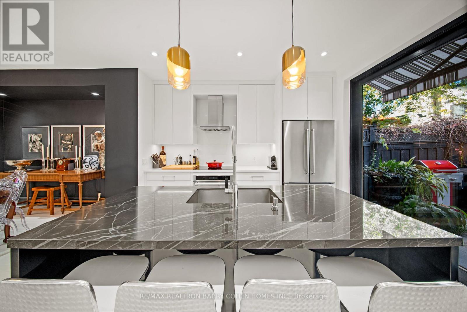 Welcome to 42 Berryman Street, a rare designer's residence built in 2003 and fully renovated in 2020, tucked away in the heart of Yorkville right off of Hazelton Ave. This fully customized home combines timeless Victorian architecture with contemporary European elegance, offering an unparalleled lifestyle for the most discerning buyer. The main floor is defined by a dramatic open-concept layout with soaring ceilings, a Bianco D'Italia porcelain feature wall with linear fireplace, and bespoke wrought-iron staircase detailing. Natural light pours through expansive windows and skylights, illuminating every refined finish. At the heart of the home, the chef's kitchen showcases full-height custom cabinetry, premium appliances, and a Sahara Noir quartzite waterfall island. Sleek pendant lighting and direct walkout access to a private courtyard make this space ideal for both everyday living and sophisticated entertaining. Upstairs, the vaulted primary suite offers a serene retreat with custom built-ins and a spa-inspired ensuite featuring a floating double vanity, dramatic marble shower. Additional bedrooms provide comfort and versatility, complemented by elegant baths finished with curated stone and designer fixtures. The fully finished lower level extends the living space with a flexible family room, private office, or gym complete with custom built-ins and a linear fireplace. Outdoors, a landscaped, maintenance-free courtyard offers a true urban sanctuary with granite tiling, privacy fencing, gas BBQ station-perfect for alfresco gatherings. Every detail at 42 Berryman has been thoughtfully designed to create a home that offers exceptional style, comfort, and refined sophistication. Seller is willing to arrange and cover the cost of one (1) rental parking space at Hazelton Lanes for 12 months, for the buyer's exclusive use. (id:4555)