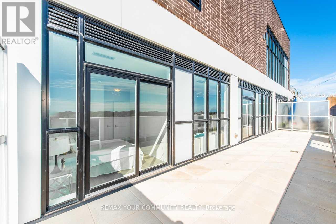 Welcome to this stunning penthouse at CANVAS Boutique Condos. This fully furnished 2-bedroom, 2-bathroom suite offers unobstructed southwest views from the top floor, showcasing the Toronto skyline, Toronto Islands, lush green space, and the waterfront. Floor-to-ceiling windows and 9ft ceilings, flood the unit with natural light and provide breathtaking panoramic views. Access to your 416 sqft private terrace from the living room and primary room with your own BBQ gas line! This unit is fully upgraded with with pot lights throughout, granite countertops, backsplash, stainless steel appliances and a paneled dishwasher, and a deep sink. Includes one parking space and one locker for added convenience. Just move in and enjoy an unbeatable location steps to the subway, shops, cafés, The Beaches, Danforth GO Station, and all the amenities of this vibrant neighbourhood. Building comes with an exercise room, rooftop BBQ with fireplace, parcel room, concierge and 24hr security. (id:4555)