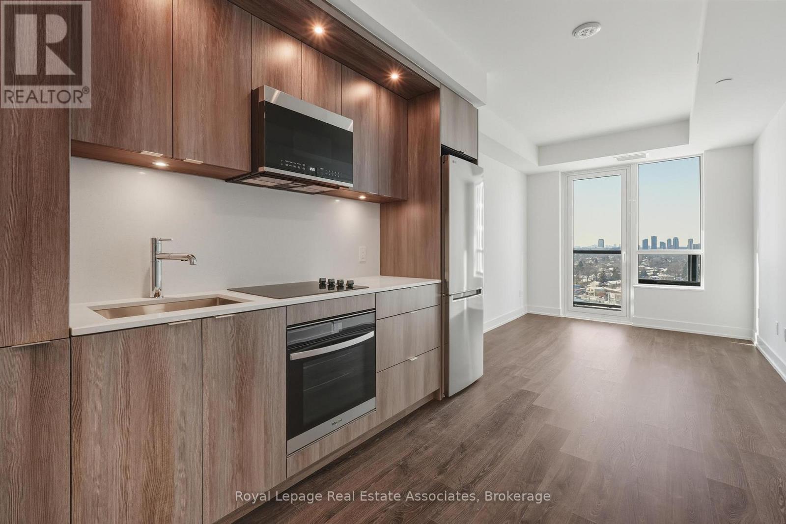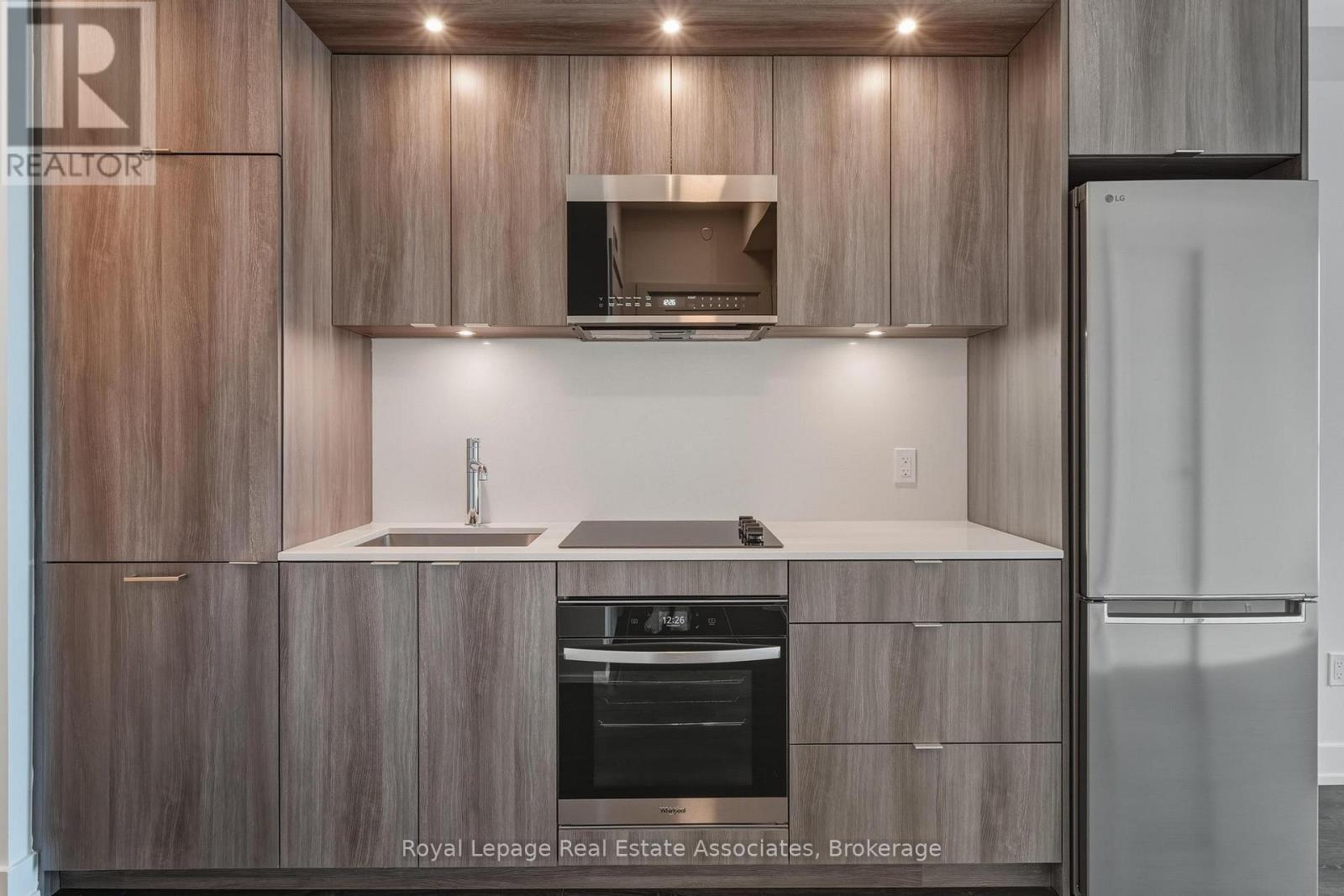 Welcome to Westerly 2 at 60 Central Park Roadway, where contemporary design meets everyday convenience in the heart of Islington-City Centre West. This thoughtfully designed 1-bedroom suite spans 509 sq. ft. and features a practical open-concept layout with clean finishes and comfortable proportions well suited to modern living. The modern kitchen is appointed with full-height cabinetry, quartz countertops, and integrated stainless-steel appliances, opening seamlessly into the combined living and dining area. Wide-plank flooring and large windows enhance natural light throughout the space, while a walk-out from the living area leads to a private balcony that extends the living space outdoors. The bedroom offers a well-proportioned layout with generous closet storage and a large window, complemented by a modern 4-piece bathroom finished with contemporary tilework and a sleek vanity. In-suite laundry is neatly tucked into a dedicated closet, maintaining a streamlined and efficient layout. Residents enjoy access to amenities including a fitness centre, party and meeting rooms, guest suites, and concierge service. Ideally located steps from Islington Station, parks, grocery stores, cafés, and everyday conveniences, this suite delivers comfortable, well-connected urban living in an established Etobicoke community. (id:4555)