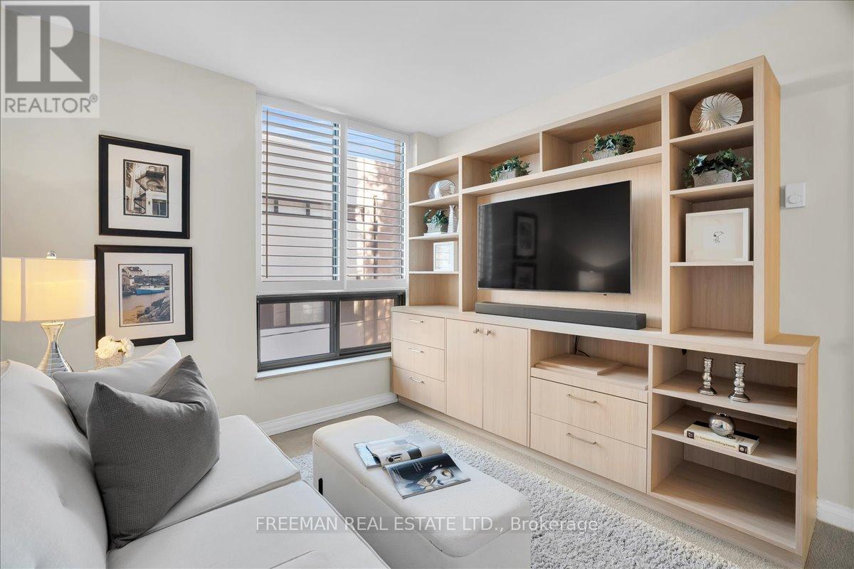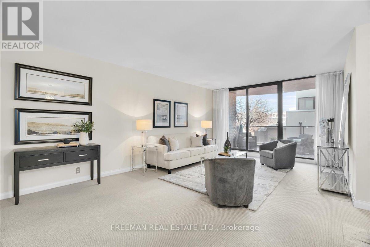 Coveted and Super-Accessible Forest Hill Village cul-de-sac location, The Lonsdale House pairs privacy within steps of all the amenities you need in the Lower Village. Backing toward the ravine paths, this updated suite also enjoys peaceful exposure with a generous covered balcony with enhanced seclusion. Offering three bedrooms, or two plus a den, the layout adapts easily to your needs. The welcoming and spacious foyer provides proper proportions with graceful separation from the living space, and opens to generous living and dining areas, flooded with natural light, designed for both everyday comfort and easy entertaining. Thoughtful built-ins and extensive storage make downsizing feel seamless. Spacious principal rooms support both relaxed living and entertaining, complemented by radiant heated floors for year-round comfort. Ready for thoughtful upgrades and personal touches to make it your own, but ready for turnkey living as well. The location is a true advantage. Walk to the many shops, restaurants and cafés of the Lower Village along Spadina Road, banks, pharmacy, and Loblaws. The St. Clair West subway entrance on Tichester is 2 blocks away, offering direct access downtown and uptown. With pool, gym, sauna, party room, visitor parking, and concierge, The Lonsdale House delivers community, security, and ease in one distinguished address. The condominium sits adjacent to nearby parks providing immediate connection to green space and ravine walking trails. You have found a residence that allows you to simplify without compromise, live quietly at the centre of it all, and settle into an established and well-networked community to call home. (id:4555)
