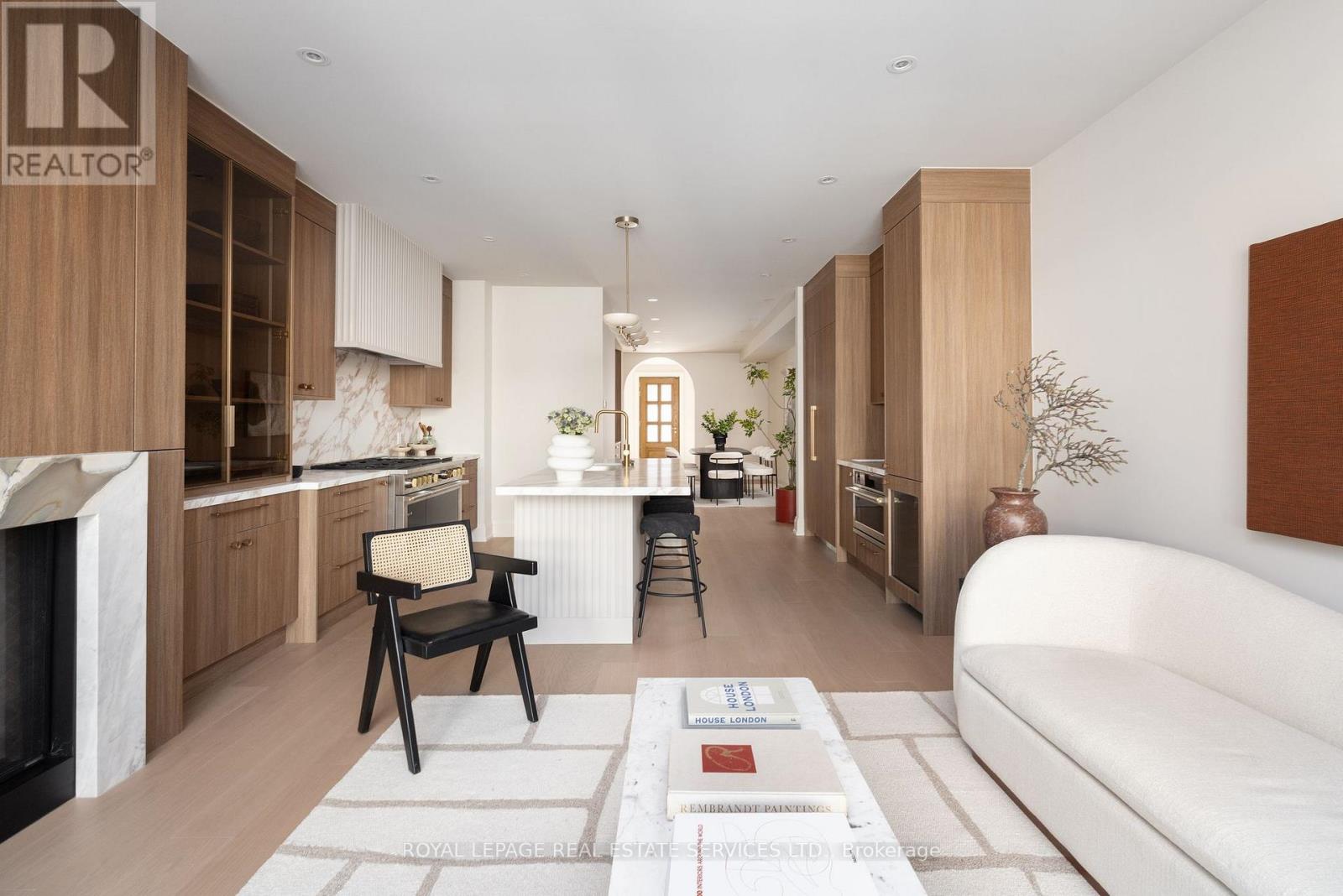 168 Bedford Park Avenue is a thoughtfully designed net zero ready family residence where architecture and function shape daily life, offering four bedrooms and five bathrooms in the main house, together with a turnkey one bedroom, one bathroom laneway suite. From the street, it presents a charming curb appeal, its proportions and detailing considered to sit comfortably within the Bedford Park streetscape. Inside, the home unfolds as a sequence of light filled spaces connected by soft arches, millwork, and deliberate transitions. Wide plank engineered white oak floors carry through the main level, establishing continuity of the design. The foyer is purposeful and uncluttered, with storage and lighting that allow the architecture to lead. The main level is arranged around how the house is lived in. A built-in cabinet anchors the dining space, while the kitchen forms the centre of daily activity, generous in scale and easy in use, with a large island, ample work surfaces, and integrated appliances supporting both everyday routines and gatherings. Living spaces remain connected yet distinct, culminating in a family room centred on a fireplace and opening directly to the backyard.The primary suite reads as a retreat, with integrated storage, access to a private terrace, and a well appointed ensuite designed for comfort and calm. The second bedroom features built-in cabinetry, a built-in desk nook, large tilt-and-turn windows, and a three-piece ensuite bathroom. The third level provides two additional bedrooms, supported by custom storage, a shared family bathroom, skylights, and an outdoor terrace that brings light and openness to the upper floor.The lower level functions as true living space, offering recreation and gym areas alongside a cedar sauna and steam shower. Set behind the main house, a fully self-contained laneway suite provides independent accommodation for extended family, guests, or rental use, featuring an additional bedroom and three-piece bathroom. (id:4555)