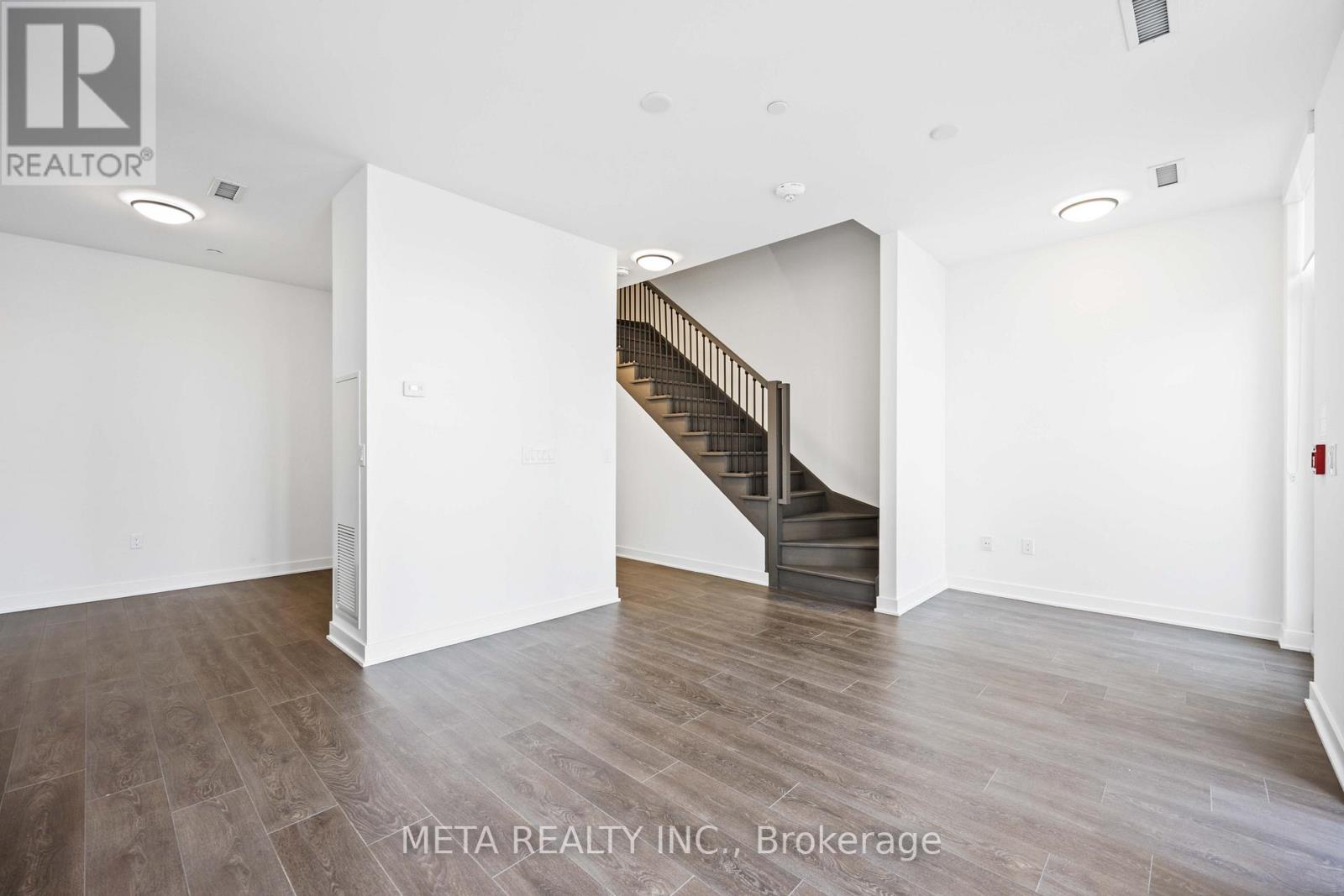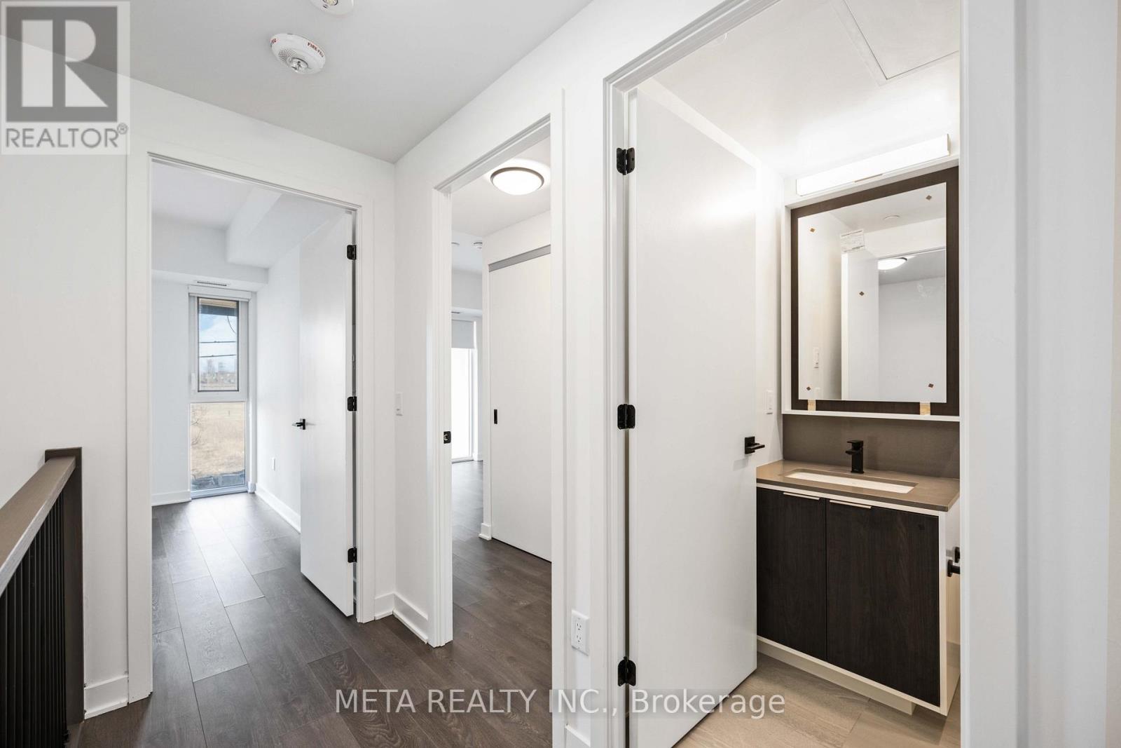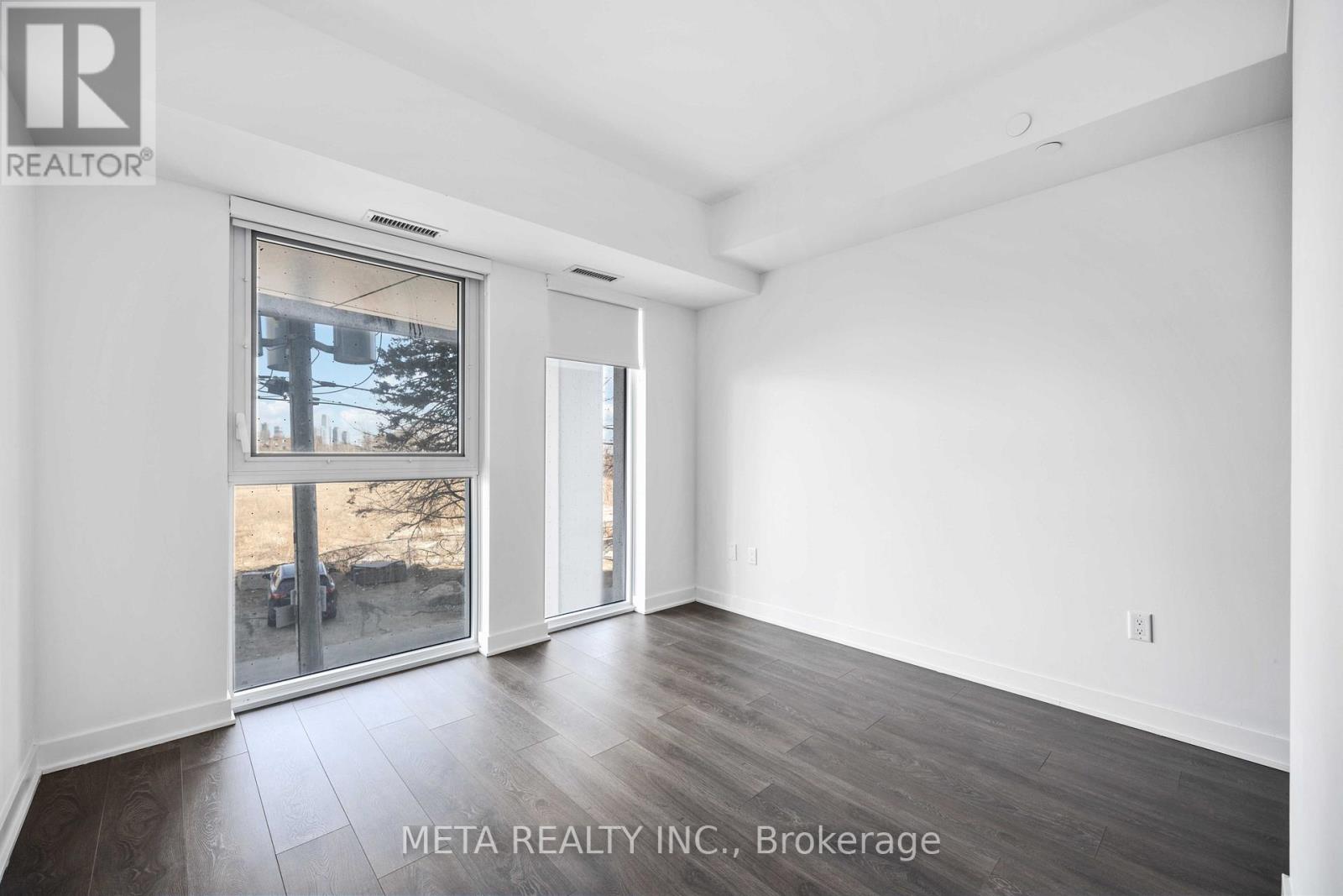 Experience elevated living in this beautifully designed 2-storey townhouse offering over 1,000 sq. ft. of sophisticated, thoughtfully curated space. The main level features a spacious enclosed den (9.7 ft x 7.6 ft) with a door for privacy, ideal as a third bedroom, executive home office, or private guest retreat.Designed for both comfort and functionality, the home offers two full bathrooms plus a stylish main-floor powder room. The modern kitchen is appointed with full-size appliances, sleek cabinetry, and ample prep space-perfect for everyday living and entertaining alike.Enjoy the rare convenience of dual access with a private street-facing front entrance and rear entry through the condominium building, allowing seamless access to premium amenities. The approximately 100 sq. ft. private front patio provides an intimate outdoor retreat, ideal for morning coffee or evening relaxation.Underground parking is included. Situated in a prime location with immediate access to transit and major highways, this residence blends urban convenience with upscale comfort.Residents enjoy an exceptional array of amenities including a state-of-the-art fitness centre, outdoor pool, landscaped patio with fire pit, concierge service, security, guest suites, party room, and a direct shuttle bus to the subway station.A rare opportunity to own a newer luxury townhouse in a highly sought-after community. The property will be professionally cleaned prior to closing, and noted deficiencies-including the den ceiling and flooring-will be fully repaired before closing. (id:4555)