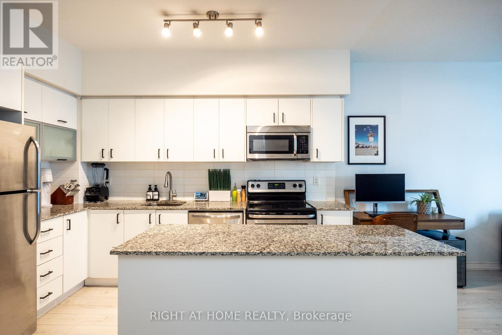 Welcome to this spacious one-bedroom suite in Liberty Village offering over 650sqft of stylish, well-appointed living space. The modern kitchen features a large centre island, stone countertops, full-size appliances and abundant storage - ideal for both everyday living and entertaining. The king-sized bedroom is a rare find and showcases an oversized window, along with double closets and a custom built-in dresser. A sleek bathroom with walk-in glass shower, plus convenient ensuite laundry completes the interior. Residents enjoy premium building amenities including concierge, gym, indoor pool, hot tub, sauna, party room, guest suites, visitor parking and outdoor BBQ/entertaining area. Steps to shops, grocers, restaurants, cafés and just a short walk to King West, Queen West, Trinity Bellwoods Park, Lake Ontario waterfront, and the Downtown Core. (id:4555)