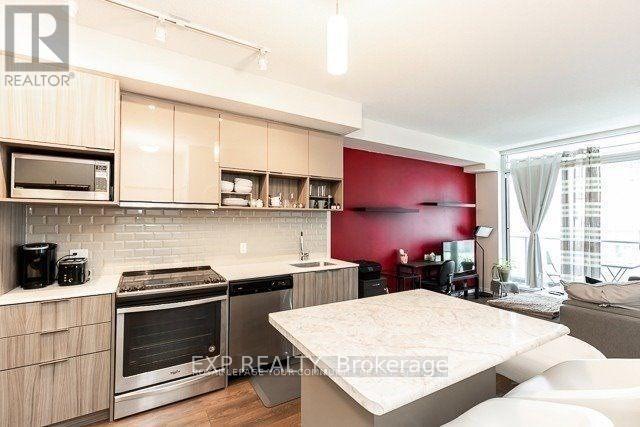 Located in the sought after Emerald City Condos, this bright, spacious, unit has been freshly painted and is move-in ready. Thoughtfully designed with modern finishes, the contemporary kitchen features quartz countertops, a stylish island, and sleek laminate flooring throughout. The generous sun filled bedroom offers plenty of natural light, while the private balcony accessible from the living area provides the perfect space to relax or enjoy your morning coffee. Just steps from CF Fairview Mall, TTC and subway access, major highways (404 & 401), North York General Hospital, and Seneca College, this location offers exceptional convenience for commuters and everyday living. Residents enjoy outstanding amenities including an indoor pool, fully equipped fitness center, concierge service, and visitor parking,delivering comfort and convenience all in one. Parking Spot is included in lease but can be negotiated if not required. (id:4555)