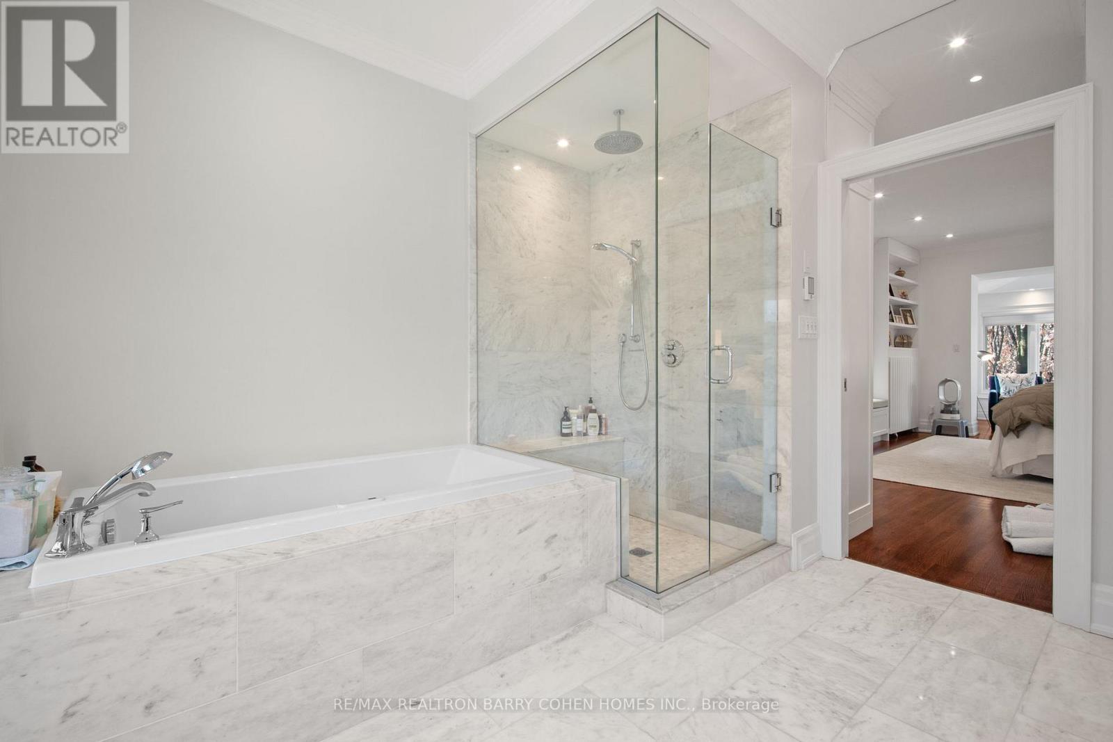 A Rare and Refined Offering On One Of Forest Hill South's Most Prestigious Streets. This Stunning Residence Sits On A Remarkable 55' x 181' West Facing Lot And Has Been Extensively Updated By Current Owners To Blend Timeless Charm With Exceptional Craftsmanship and Comfort, Including Richly Restored Original Hardwood Floors and Architectural Details, Custom Kitchen With Top-Of-The-Line Wolf/Sub-Zero Appliances and Statuario Marble Throughout, Coved Ceilings and Crown Moulding, Custom Leaded Windows, And Designer Embellishments At Every Turn. The Gourmet Kitchen With Adjacent Servery and Grand Principal Rooms With Sun Room Complete The Main Level, Along With A Striking Side Staircase Leading To Three Spacious Bedrooms On The 2nd Floor With Walkout To The Upper Level Terrace. The Primary Suite Is A Private Retreat, Offering Custom Built-Ins, Lavish Marble Ensuite and Sitting Room Overlooking The Rear Gardens. Additional Living Spaces Include A Third-Level Complete With Expansive Office Space Which Can Be Converted To 2 Bedrooms If Needed, 4th Bedroom and 3PC Bathroom, Plus A Fully Finished Lower Level With A Very Convenient Laundry Room, Nanny's Suite Featuring 4PC Ensuite and Lower Level Rec Room/Fitness Room Plus Ample Storage Space. This Residence's Gated and Fully Fenced Rear Gardens Are Equally Impressive, With Exquisite Stonework, Integrated Lighting, Irrigation And Meticulous Landscape Design Including Salt Water Pool and Multiple Entertaining Spaces. A Beautifully Renovated Midtown Retreat Designed For Luxury & Comfort. (id:4555)
