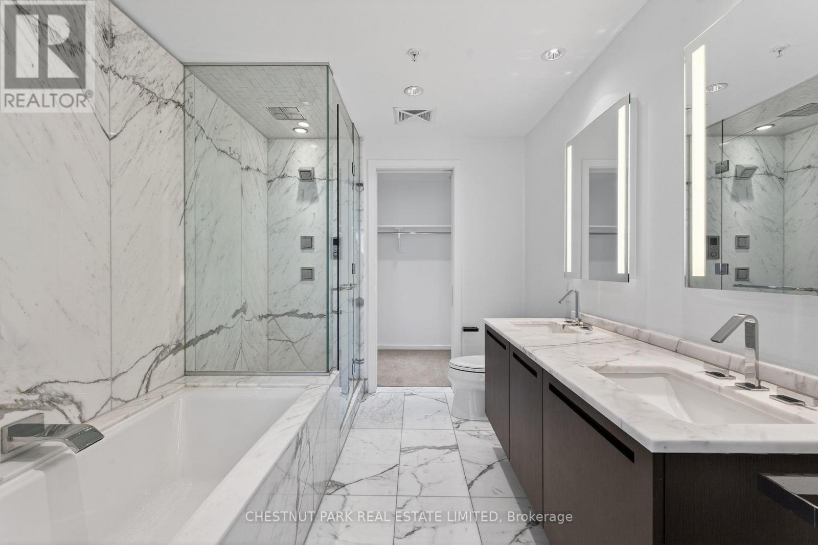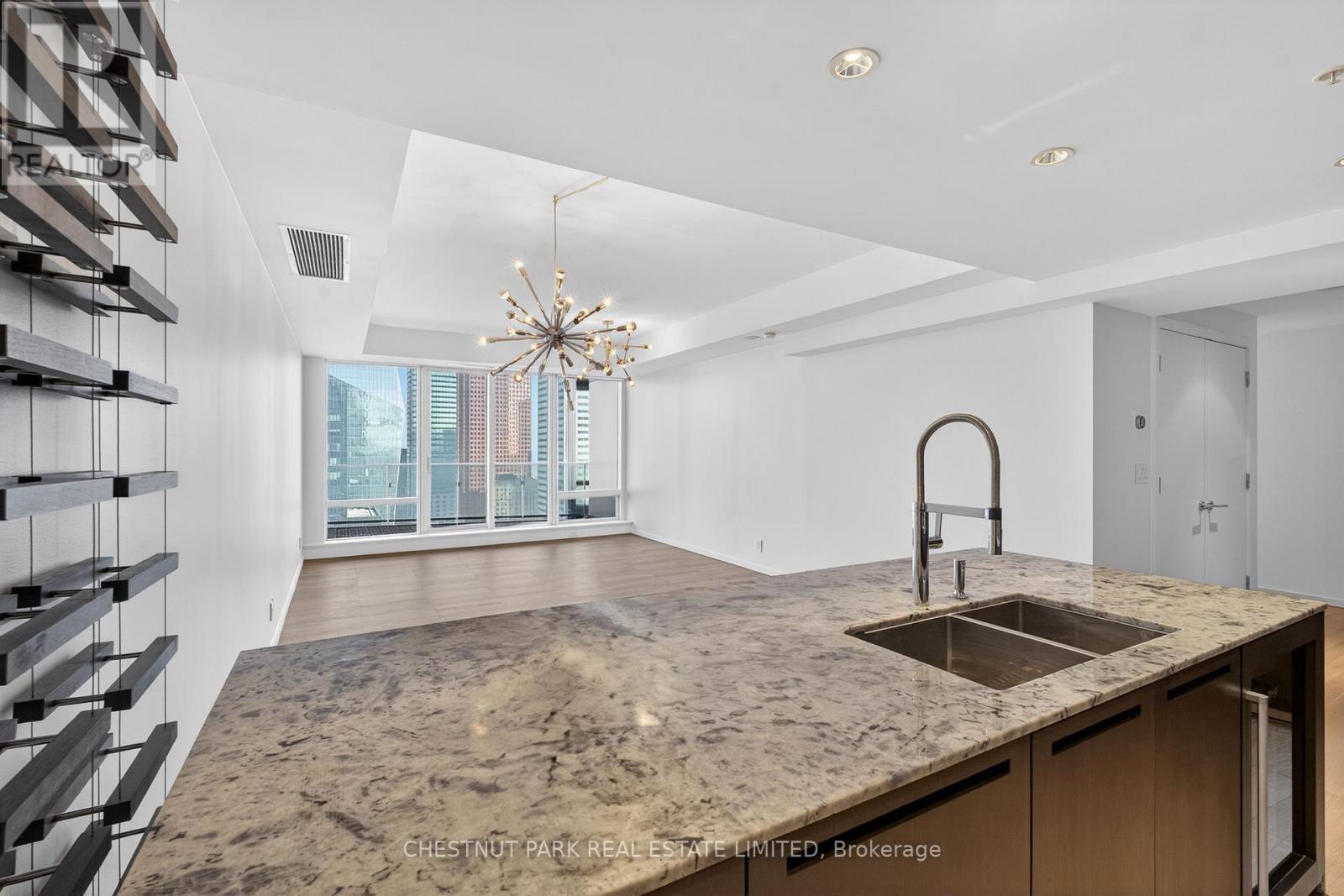 Luxury living above the five-star Shangri-La Hotel in downtown Toronto. 1,400 square feet with two bedrooms, high-end finishes, and an easy turnkey lifestyle. Boffi kitchen with Miele and Sub-Zero, granite counters, and a large island. The primary bedroom fits a king-size bed and is complete with a five-piece marble-clad ensuite and walk-in closet. The second bedroom offers its own three-piece ensuite and double closets, perfect for guests or a home office, plus a full laundry room for extra storage. Unobstructed, east-facing views flood the suite with light and take in the downtown core and Lake Ontario. Steps to the subway, Union Station, and UP Express. Full Shangri-La amenities include a 24-hour concierge, fitness centre, indoor pool, hot tub, and a la carte hotel services. (id:4555)