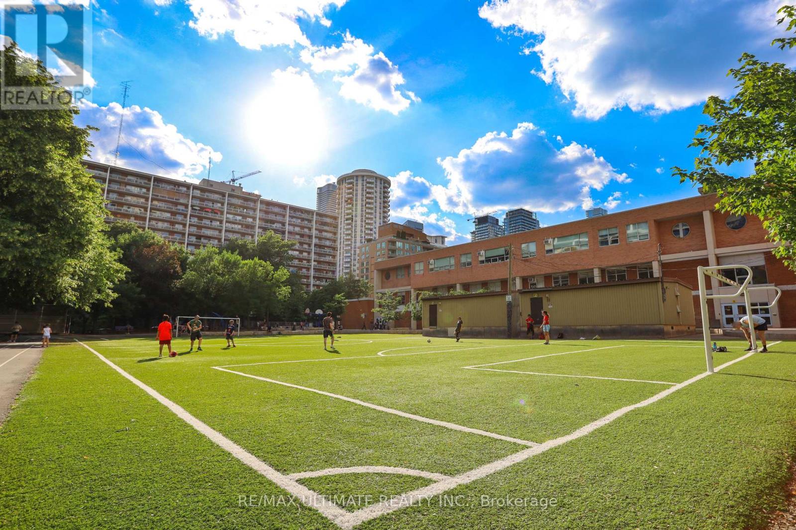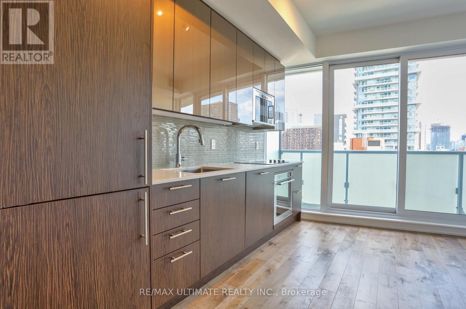 Welcome to Stanley Condos, ideally located at Carlton and Church. This well-designed 1+den suite offers desirable south-facing views and floor-to-ceiling windows, filling the space with abundant natural light. Laminate flooring runs throughout, while the primary bedroom features sliding doors that allow for maximum light and an open feel. The modern kitchen is equipped with built-in appliances and offers stunning views, all just steps from Loblaws at Maple Leaf Gardens. The den is a separate enclosed room, ideal for a guest room or home office. 4 piece bathroom with a soaker tub. Enjoy a highly functional layout, contemporary finishes, and exceptional building amenities. With an impressive Walk Score of 98, you're moments from College subway station, Toronto Metropolitan University, the University of Toronto, and the Eaton Centre. Outstanding amenities include a 24-hour concierge, state-of-the-art fitness centre, party room, sundeck, and yoga studio-perfect for those seeking a vibrant, connected downtown lifestyle. (id:4555)