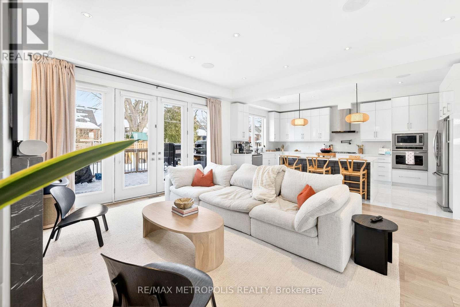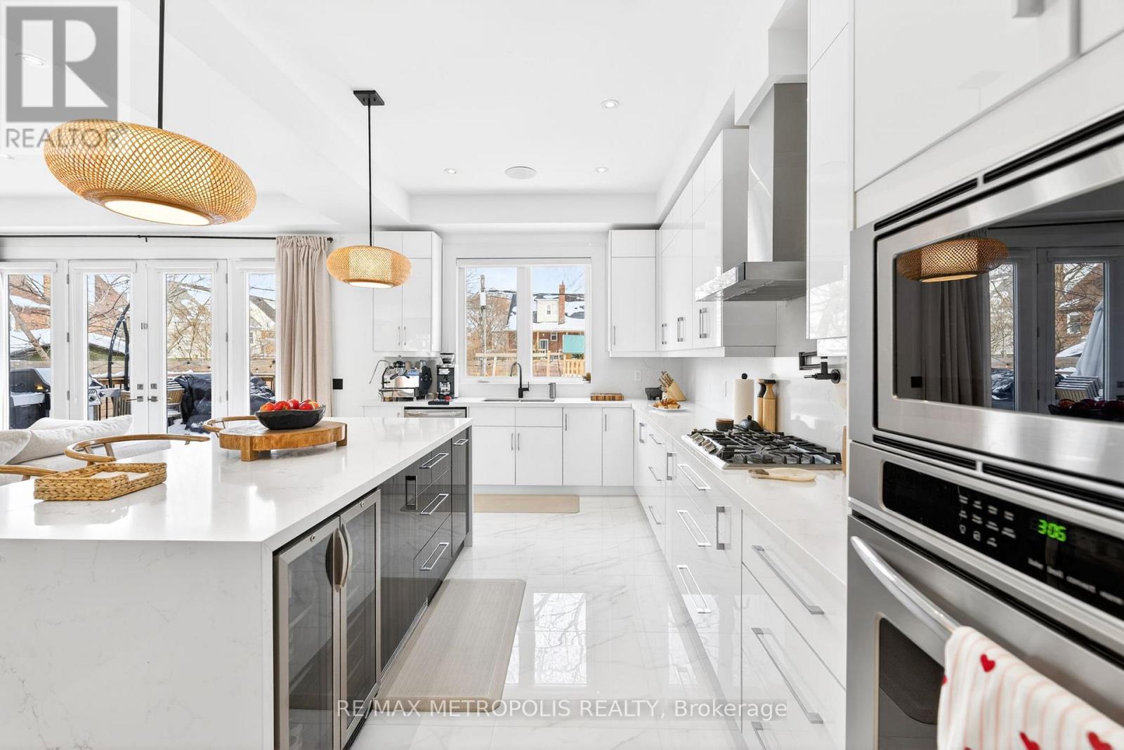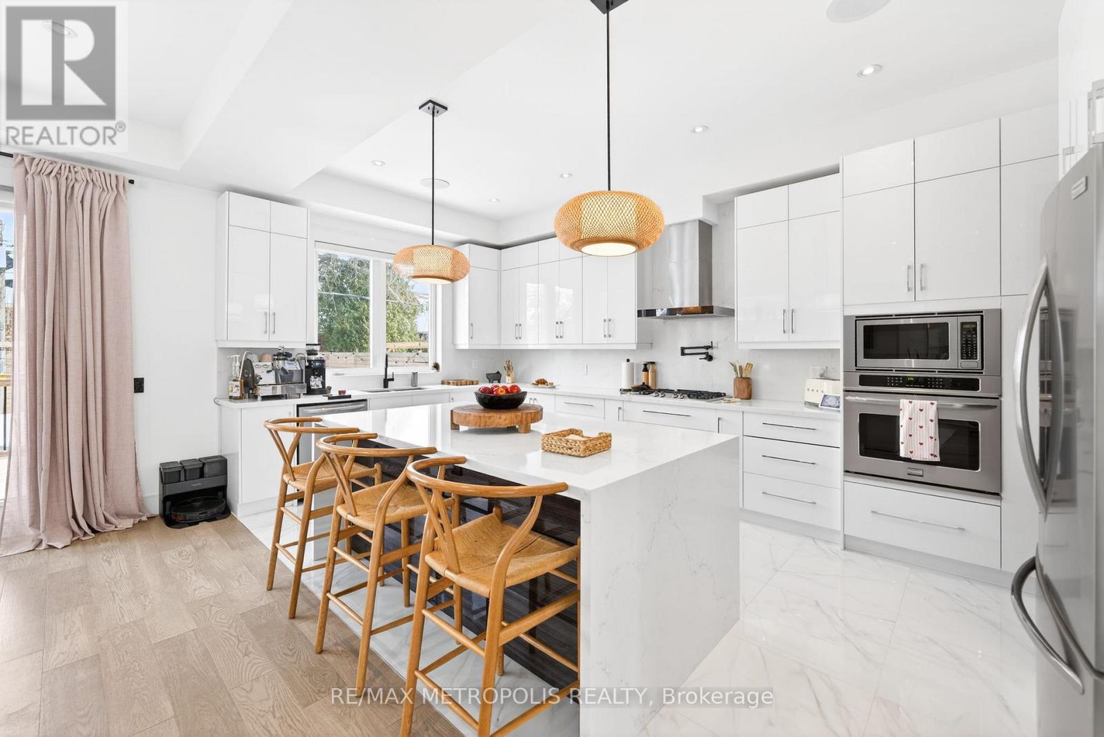 Custom-built, architectural masterpiece, approximately 4,300 sq ft of impeccably finished living space where no detail was overlooked and no expense spared. A true showpiece featuring soaring 43-ft wide lot and a dramatic atrium foyer combined with an open concept look, the home is anchored by a chef-inspired kitchen with a waterfall island and walk-in pantry. Premium finishes throughout include hardwood floors, an integrated speaker system, smart home technology and an EV charger while a striking glass staircase adds modern elegance. The magazine-worthy primary retreat delivers exceptional luxury 4 bedrooms along with 2 bedrooms in the basement and a separate entrance. All on a quiet one-way street, turnkey living at its finest. (id:4555)