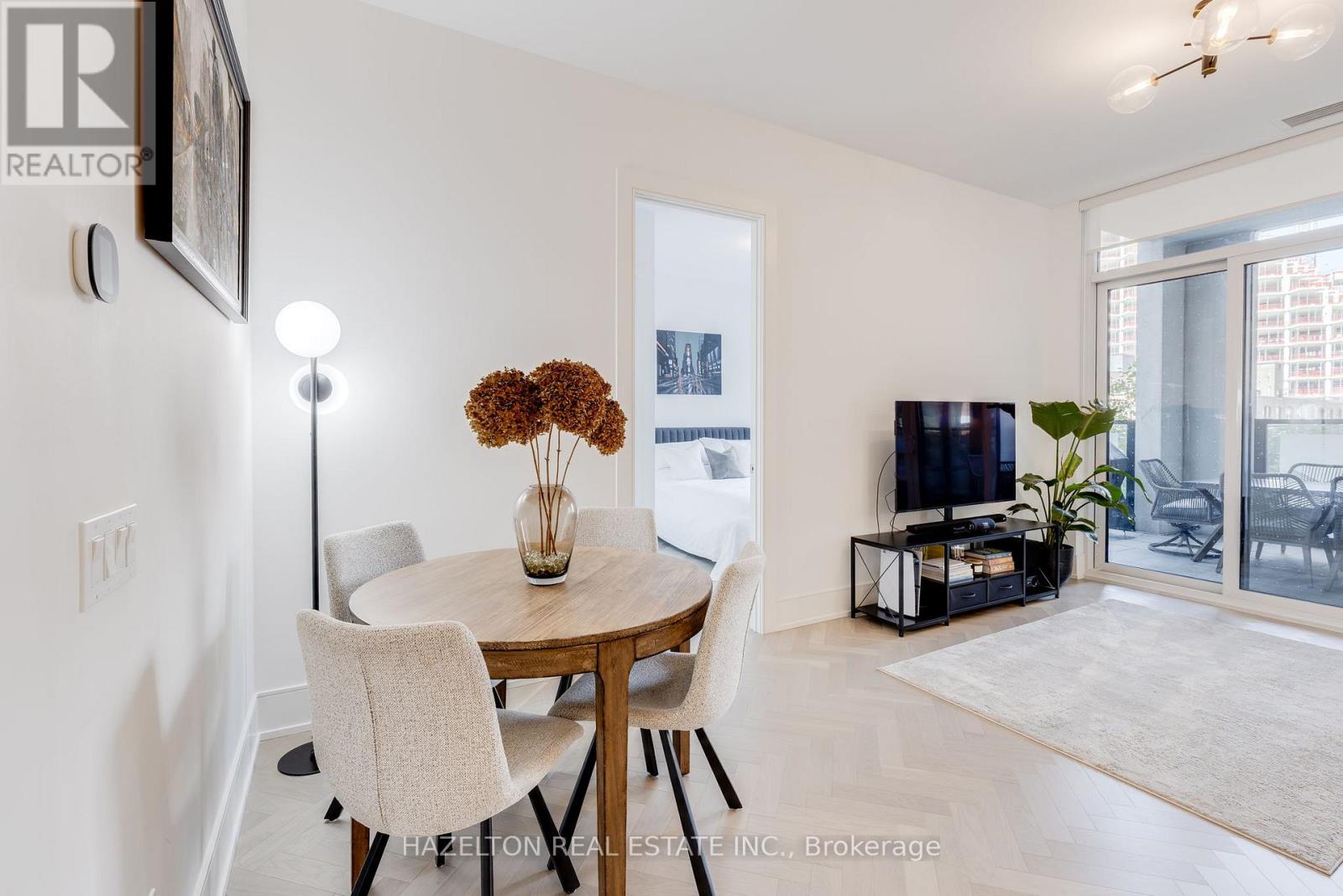 Welcome to the Signature Series at The Well-a boutique luxury address by Tridel in the heart of downtown Toronto. This exceptional 2-bedroom, 3-bathroom executive residence offers approximately 1,100sq. ft. of refined interior living space, framed by floor-to-ceiling windows and soaring10-foot smooth ceilings throughout, enhancing the sense of light, volume, and architectural elegance. Thoughtfully crafted with elevated finishes at every turn, the suite features a gourmet chef's kitchen appointed with upgraded built-in Miele appliances, a large breakfast island ideal for entertaining, and contemporary soft-close cabinetry. Herringbone-pattern hardwood floors run throughout the principal rooms, adding texture and warmth. The primary ensuite is enhanced with heated flooring and cascading marble walls, while both bedrooms offer private ensuites-creating a highly functional split-bedroom layout with optimal privacy for residents and guests. The open-concept living and dining area flows seamlessly to a rare 400 sq. ft. north-facing private terrace complete with BBQ gas hook-up and water line-an extraordinary extension of you rliving space for al fresco dining, summer entertaining, or quiet evenings overlooking the promenade. Located on the third floor, enjoy immediate access to world-class amenities including an outdoor swimming pool, landscaped garden with outdoor fireplace, entertainment lounge, private dining lounge, and fully equipped fitness studio. At street level, The Well's curated outdoor promenade offers an unparalleled collection of restaurants, cafés, bakeries, bars, food markets, and boutique retail-placing Toronto's most vibrant lifestyle destination right at your doorstep. Experience elevated urban living in one of downtown's most prestigious communities. (id:4555)