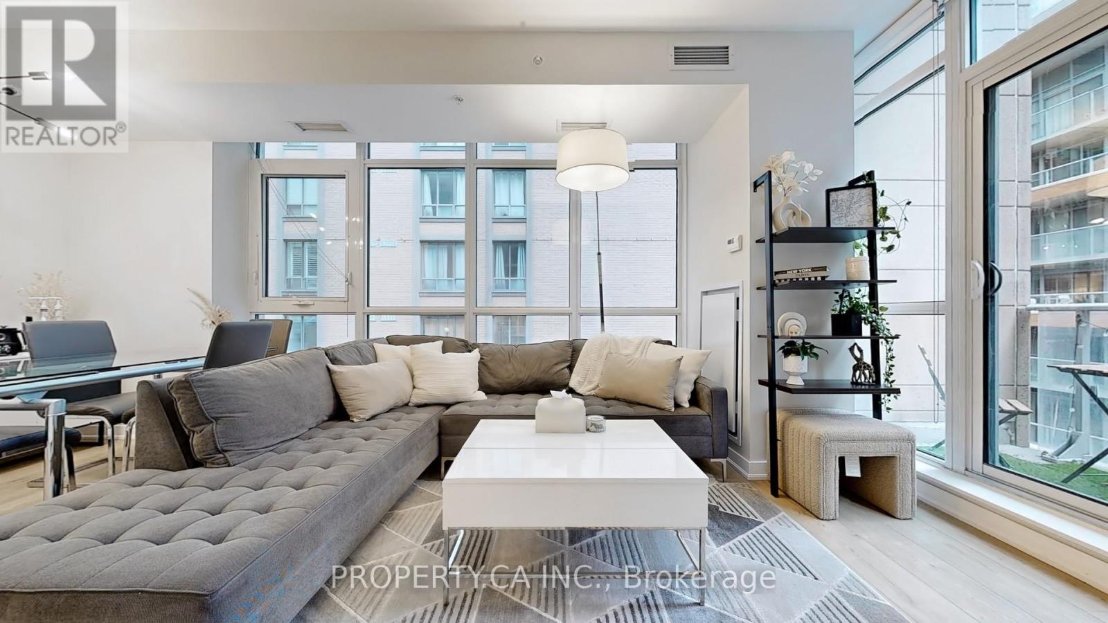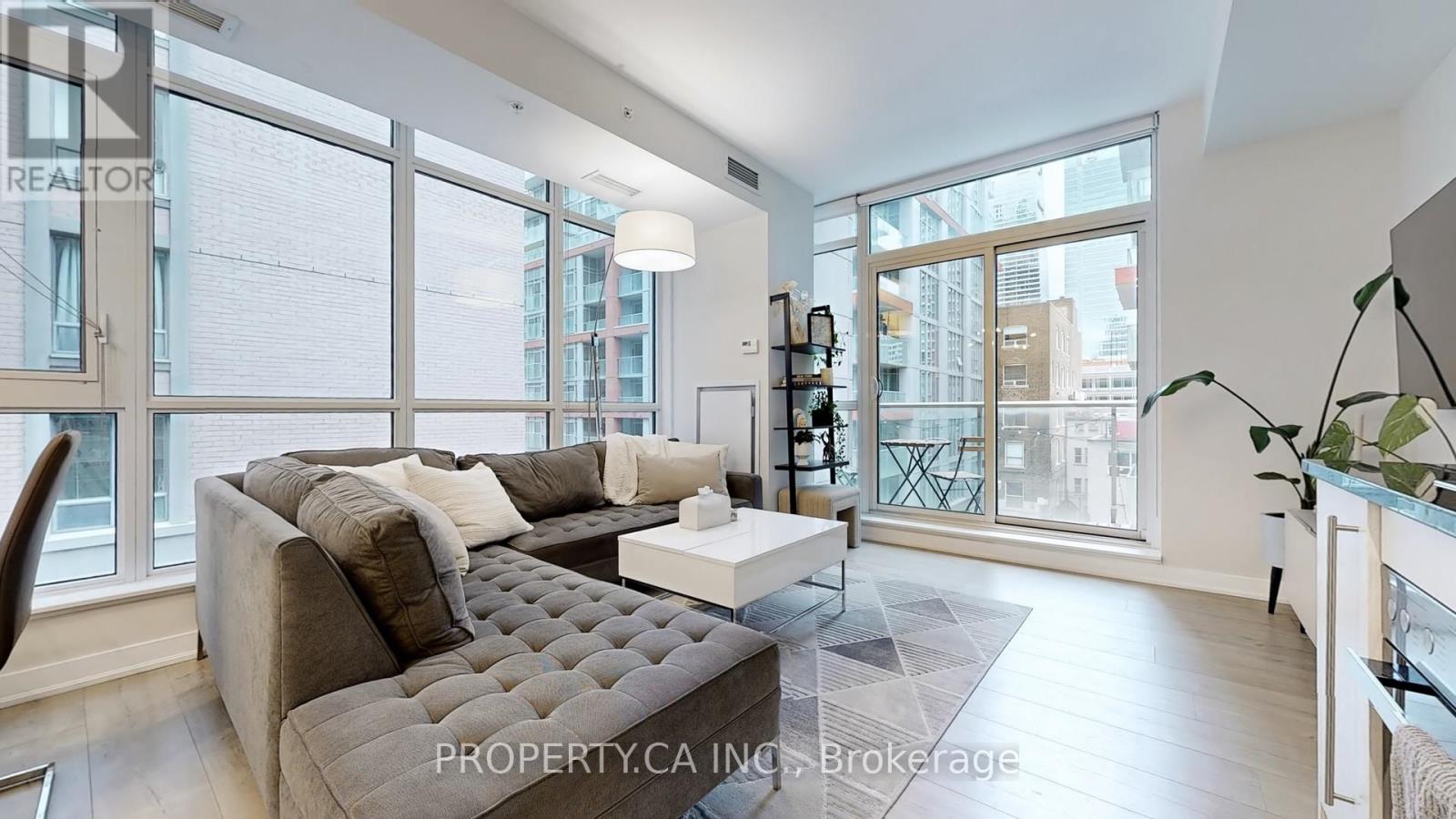 Welcome to this bright and modern 1 bed + den corner suite at the highly sought-after Studio 2 Condos in the heart of downtown Toronto. With 694 sq ft of wide, functional living space, this layout is rare and thoughtfully designed. Enjoy 2 private balconies, floor-to-ceiling windows, and an abundance of natural light throughout.Upgraded with new paint, custom lighting, and integrated appliances, this unit is move-in ready. The den is ideal for a home office or guest space. The kitchen features quartz countertops, sleek cabinetry, and a built-in cooktop for a seamless finish. Located right next to the stairs, you'll love the convenience of avoiding elevator wait times-perfect for busy urban living. Comes with 1 locker and underground parking. Situated in the heart of the Entertainment and Financial Districts, with a Walk Score of 99 and Transit Score of 100. Steps to TTC, the PATH, Queen St., King West, dining, shops, and more. Building amenities include 24-hr concierge, gym, sauna, party room, outdoor terrace, guest suites & more. (id:4555)