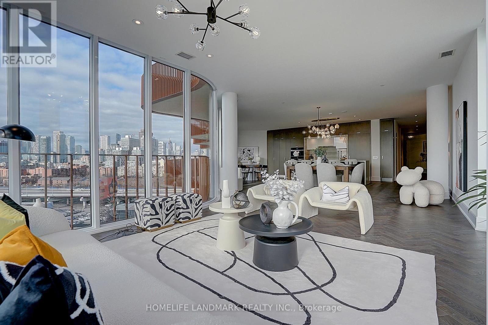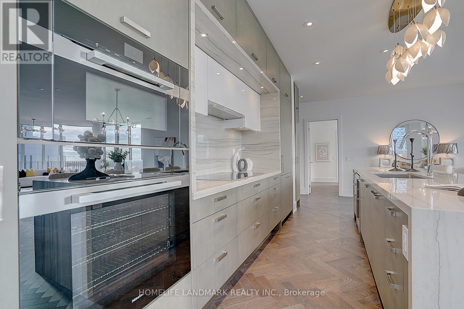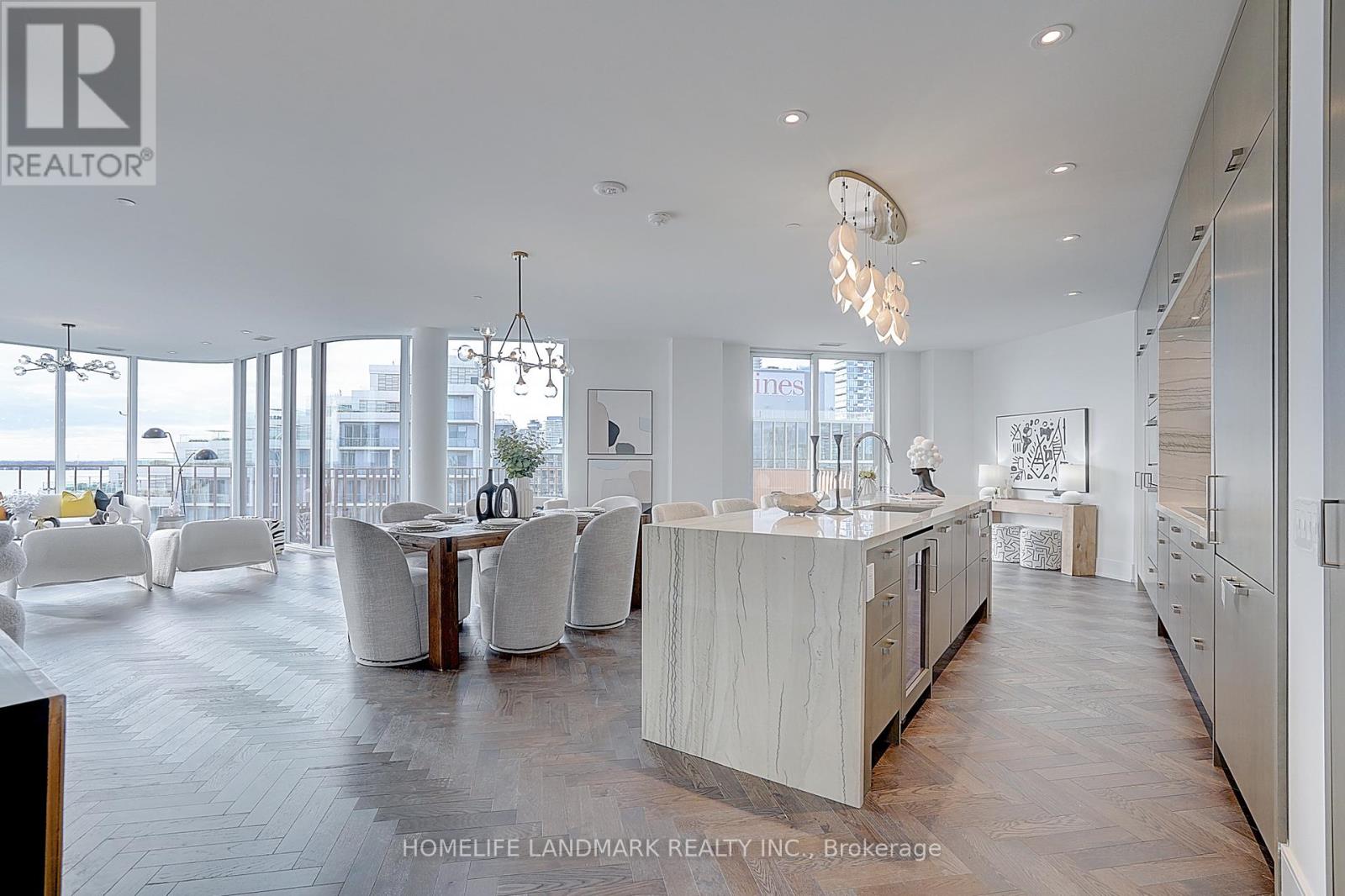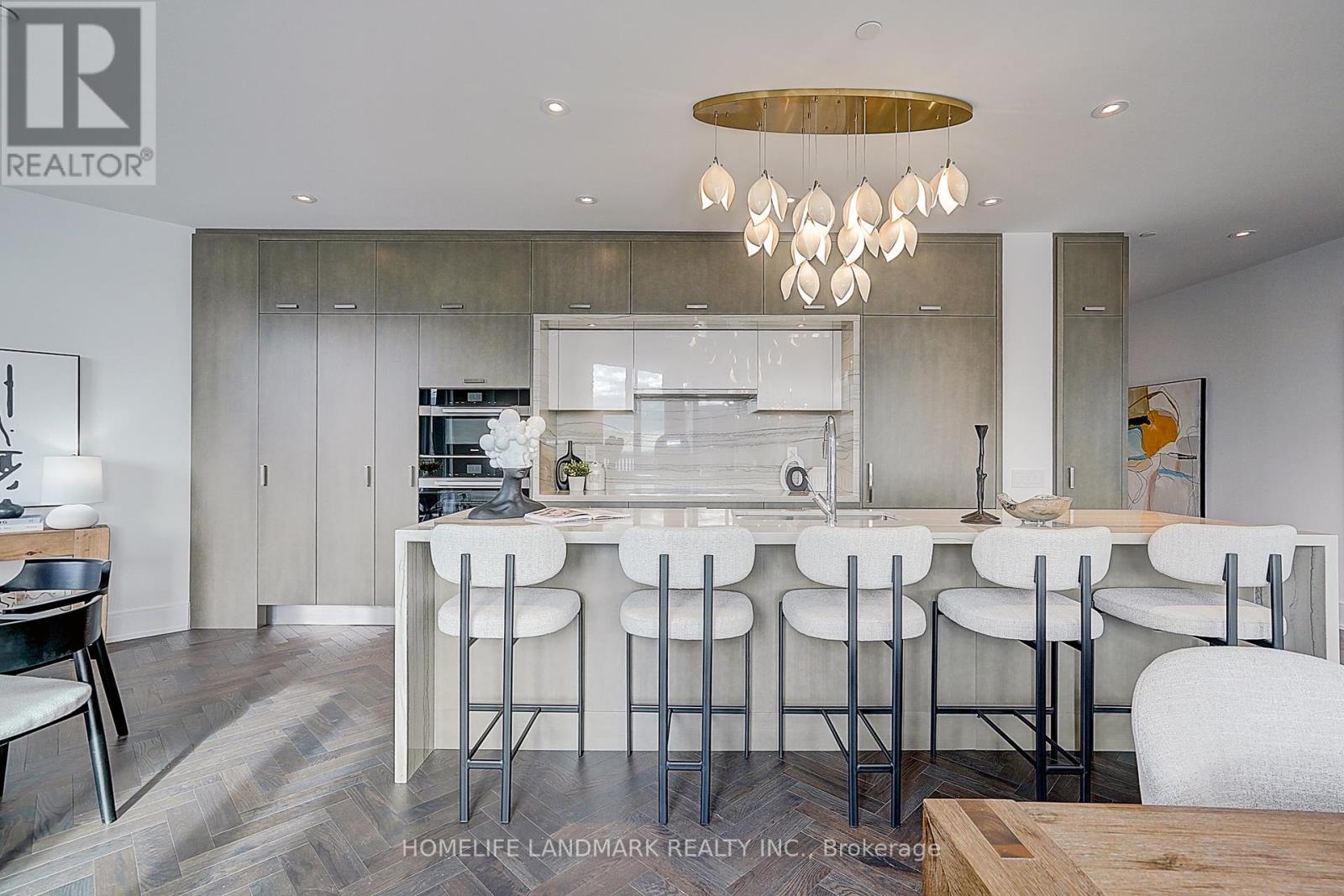 Welcome to luxury waterfront living at Tridel's Aqualuna, located in Toronto's vibrant East Bayside district. This exceptional brand-new 2-bedroom + enclosed den residence offers 2,433 sq. ft. of upgraded living space, featuring premium finishes and breathtaking south-facing views of the lake, gardens, and pool.Designed for both comfort and elevated entertaining, the suite showcases floor-to-ceiling windows, a spacious open layout, and a gourmet kitchen equipped with integrated appliances, an upgraded Miele induction cooktop with touch controls, natural stone countertops, custom cabinetry, a built-in wine cellar, and an enlarged double-waterfall island. Both bedrooms include private ensuites with heated floors and upgraded natural stone countertops, while the double-door enclosed den provides an ideal office or guest room. The luxurious primary retreat features his-and-hers walk-in closets, a spa-inspired ensuite, and direct access to a serene lake-view terrace, complemented by a second private balcony off the 2nd bedroom. Additional conveniences include a full-size laundry room with sink and ample cabinetry, along with an EV-ready parking space.Resort-style amenities include a lakeside outdoor pool, fitness and yoga studios, sauna, media and party lounges, and 24/7 concierge service. Just steps from Sugar Beach, the Martin Goodman Trail, the waterfront promenade, and some of the city's best dining and cultural destinations, this home offers an unmatched blend of tranquility, sophistication, and urban convenience. (id:4555)