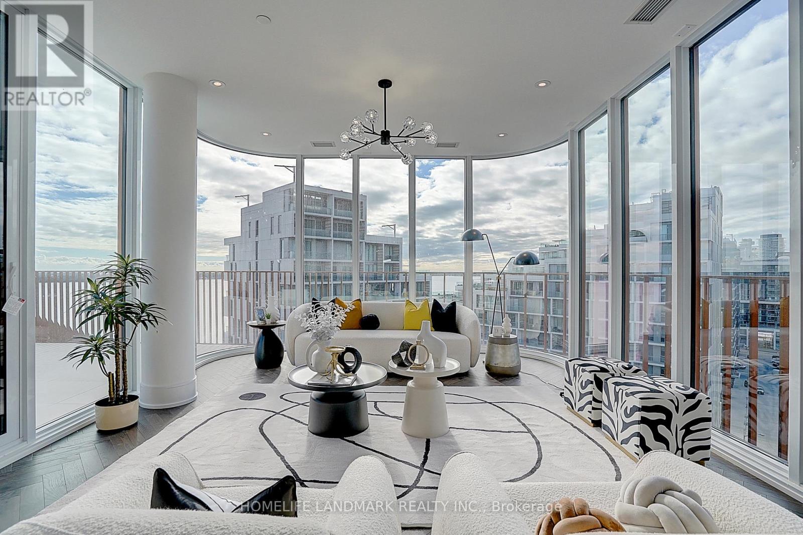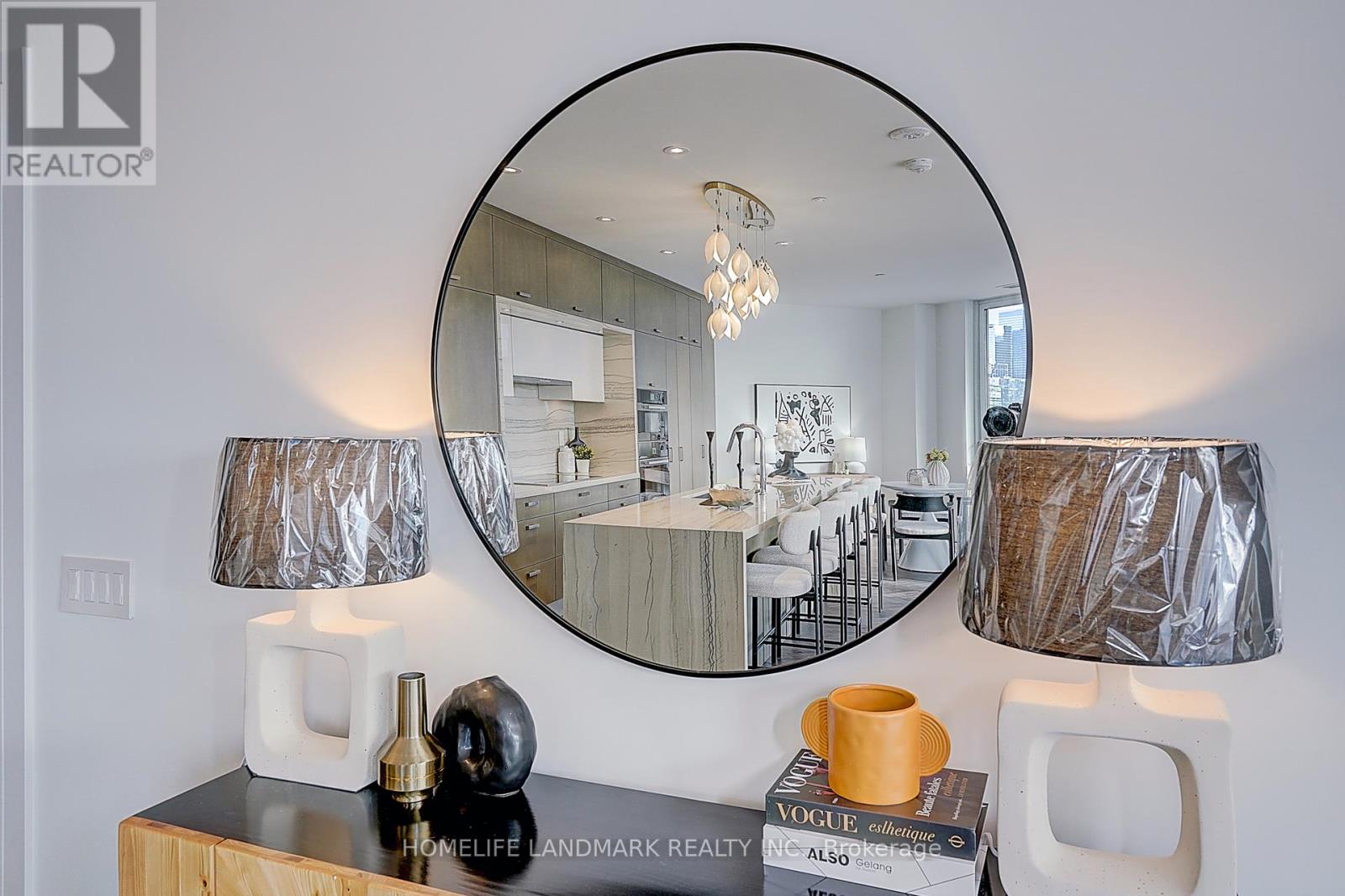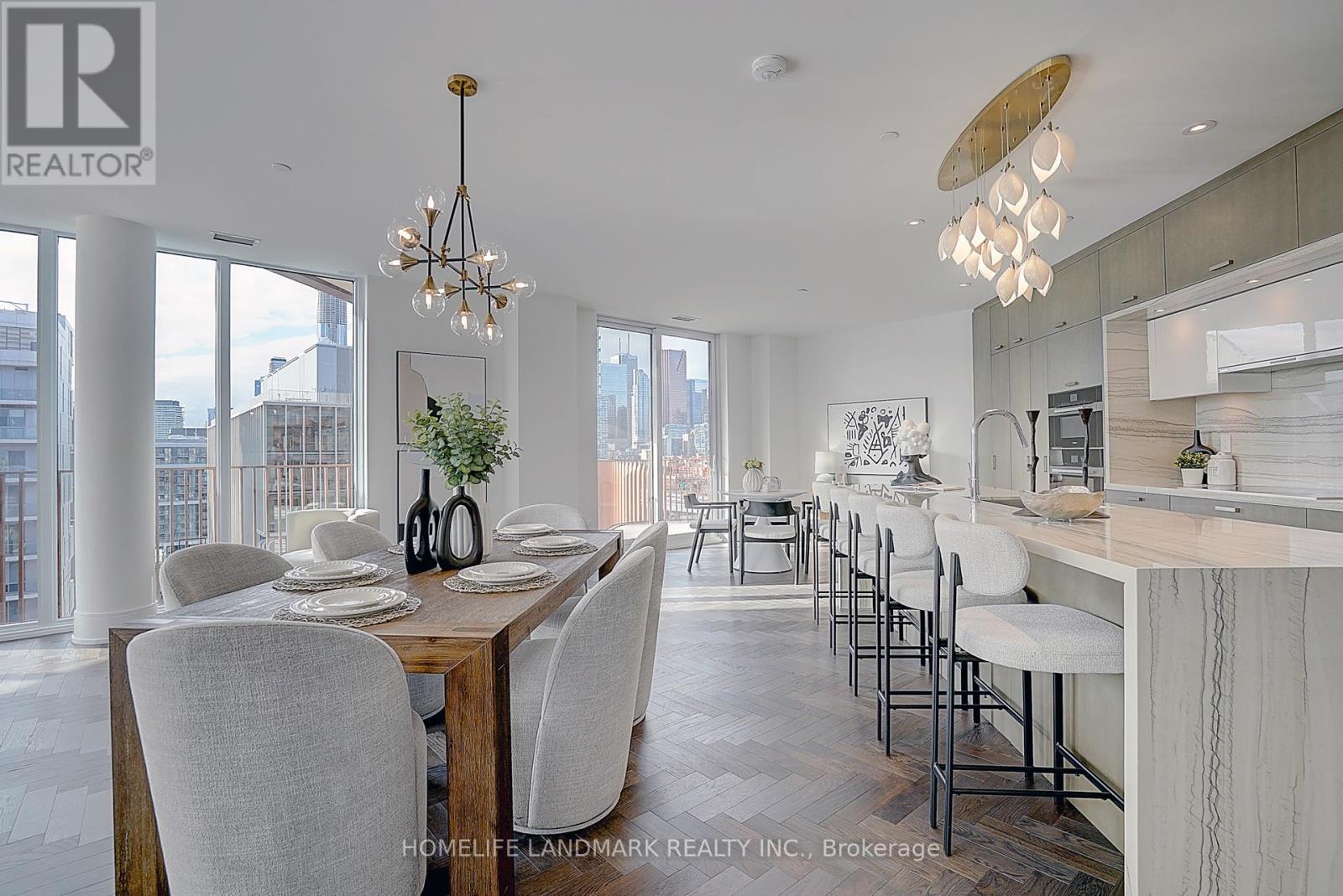 Welcome to luxury waterfront living at Tridel's Aqualuna, located in Toronto's vibrant East Bayside district. This exceptional brand-new 2-bedroom + enclosed den residence offers 2,433 sq. ft. of upgraded living space, featuring premium finishes and breathtaking south-facing views of the lake, gardens, and pool.Designed for both comfort and elevated entertaining, the suite showcases floor-to-ceiling windows, a spacious open layout, and a gourmet kitchen equipped with integrated appliances, an upgraded Miele induction cooktop with touch controls, natural stone countertops, custom cabinetry, a built-in wine cellar, and an enlarged double-waterfall island. Both bedrooms include private ensuites with heated floors and upgraded natural stone countertops, while the double-door enclosed den provides an ideal office or guest room. The luxurious primary retreat features his-and-hers walk-in closets, a spa-inspired ensuite, and direct access to a serene lake-view terrace, complemented by a second private balcony off the 2nd bedroom. Additional conveniences include a full-size laundry room with sink and ample cabinetry, along with an EV-ready parking space.Resort-style amenities include a lakeside outdoor pool, fitness and yoga studios, sauna, media and party lounges, and 24/7 concierge service. Just steps from Sugar Beach, the Martin Goodman Trail, the waterfront promenade, and some of the city's best dining and cultural destinations, this home offers an unmatched blend of tranquility, sophistication, and urban convenience. (id:4555)
