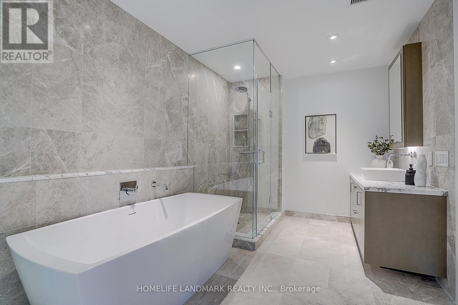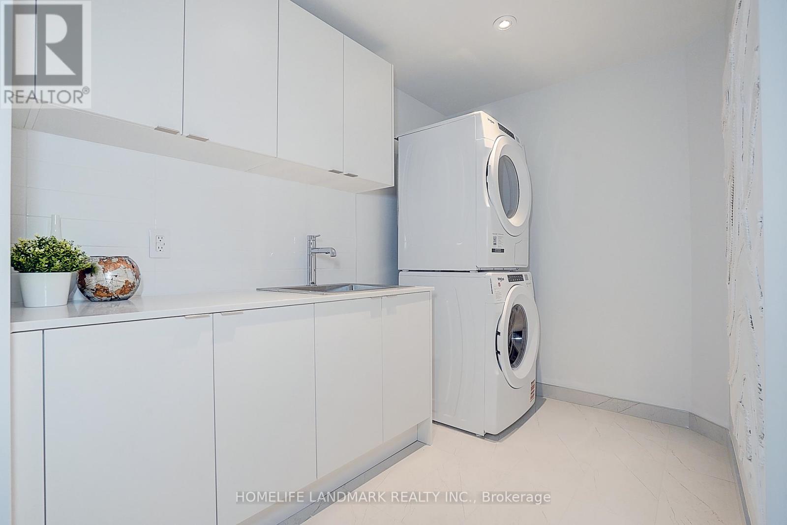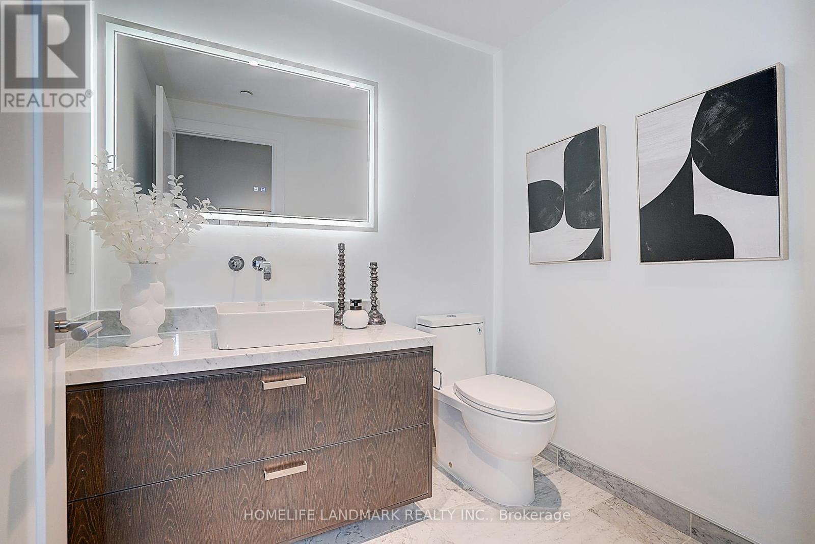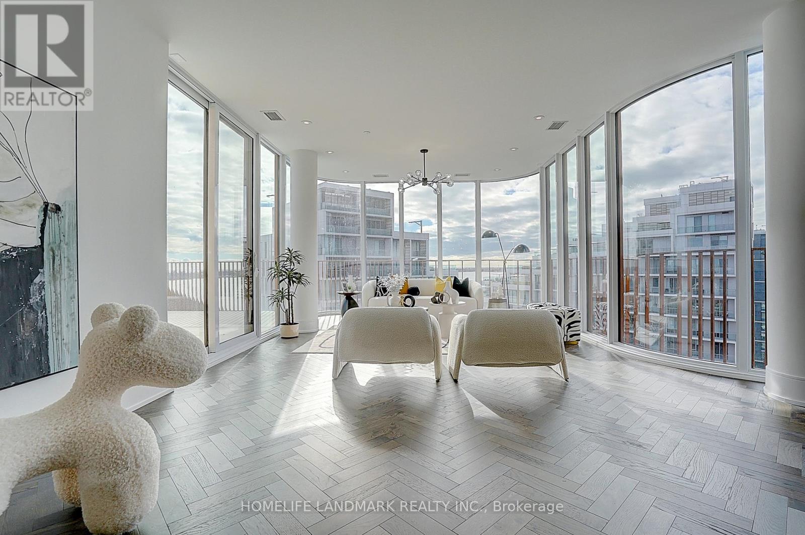 Welcome to luxury waterfront living at Tridel's Aqualuna, located in Toronto's vibrant East Bayside district. This exceptional brand-new 2-bedroom + enclosed den residence offers 2,433 sq. ft. of upgraded living space, featuring premium finishes and breathtaking south-facing views of the lake, gardens, and pool.Designed for both comfort and elevated entertaining, the suite showcases floor-to-ceiling windows, a spacious open layout, and a gourmet kitchen equipped with integrated appliances, an upgraded Miele induction cooktop with touch controls, natural stone countertops, custom cabinetry, a built-in wine cellar, and an enlarged double-waterfall island. Both bedrooms include private ensuites with heated floors and upgraded natural stone countertops, while the double-door enclosed den provides an ideal office or guest room. The luxurious primary retreat features his-and-hers walk-in closets, a spa-inspired ensuite, and direct access to a serene lake-view terrace, complemented by a second private balcony off the 2nd bedroom. Additional conveniences include a full-size laundry room with sink and ample cabinetry, along with an EV-ready parking space.Resort-style amenities include a lakeside outdoor pool, fitness and yoga studios, sauna, media and party lounges, and 24/7 concierge service. Just steps from Sugar Beach, the Martin Goodman Trail, the waterfront promenade, and some of the city's best dining and cultural destinations, this home offers an unmatched blend of tranquility, sophistication, and urban convenience. (id:4555)