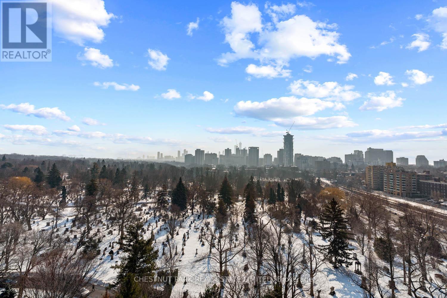 Suite 1606 is a bright and spacious south east corner residence with over 1200 square feet flooded with natural light and features incredible, unobstructed south views over the Toronto skyline and Belt Line Park. Enter into a large foyer with an impressive closet with space for all seasons attire which takes you through to the expansive open concept living and dining area which is ideal for entertaining. The updated east facing kitchen includes stainless steel appliances, granite counter tops, and a cozy breakfast bar. The den off of the kitchen walks out to the south facing balcony and is perfect for enjoying quiet moments. The Bedrooms are generously proportioned and the primary features large east facing window, a walk in closet, and four piece ensuite bath. The buildings location is close to a plethora of great mid-town Toronto dining and shopping experiences; hiking and cycling enthusiasts will appreciate the proximity to an expansive trail system and green spaces, and for commuters the Davisville subway stop is just around the corner. The monthly maintenance fees are incredibly inclusive and cover the cost of heat, hydro, water, common elements, Bell Better Package TV 300 channels, Bell Fibre Internet 1.5G High Speed, parking, and the building insurance. 35 Merton St is a building cherished by its owners and well cared for by all. (id:4555)