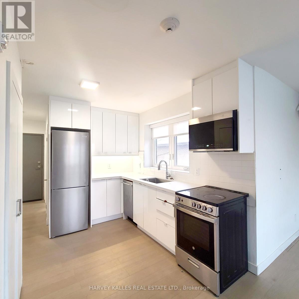Sophisticated Fully Renovated Bachelor in Boutique South Etobicoke Residence Experience refined urban living in this beautifully appointed bachelor suite within an exclusive six-unit boutique residence in highly desirable South Etobicoke. Fully gutted and meticulously renovated in 2021/2022 to modern condo standards, this residence offers turnkey comfort with elevated finishes throughout. The thoughtfully designed interior showcases elegant wide-plank laminate flooring, a sleek contemporary kitchen featuring soft-close cabinetry and premium appliances, and a spa-inspired modern bathroom with refined fixtures and finishes. In-suite laundry provides everyday convenience, while designer lighting and tailored window coverings add warmth and sophistication to the space. With only a limited number of residences, the building offers a quiet, private atmosphere ideal for professionals seeking boutique living without the congestion of high-rise towers. Perfectly positioned just minutes from Highway 427, the Gardiner Expressway, GO Transit, TTC, Sherway Gardens, and the Lake Ontario waterfront, the location offers seamless connectivity paired with vibrant lifestyle amenities. Vacant and available for immediate occupancy. Optional private parking available for $150/month.. Stove, fridge, dishwasher, washer, dryer, microwave, central AC (id:4555)