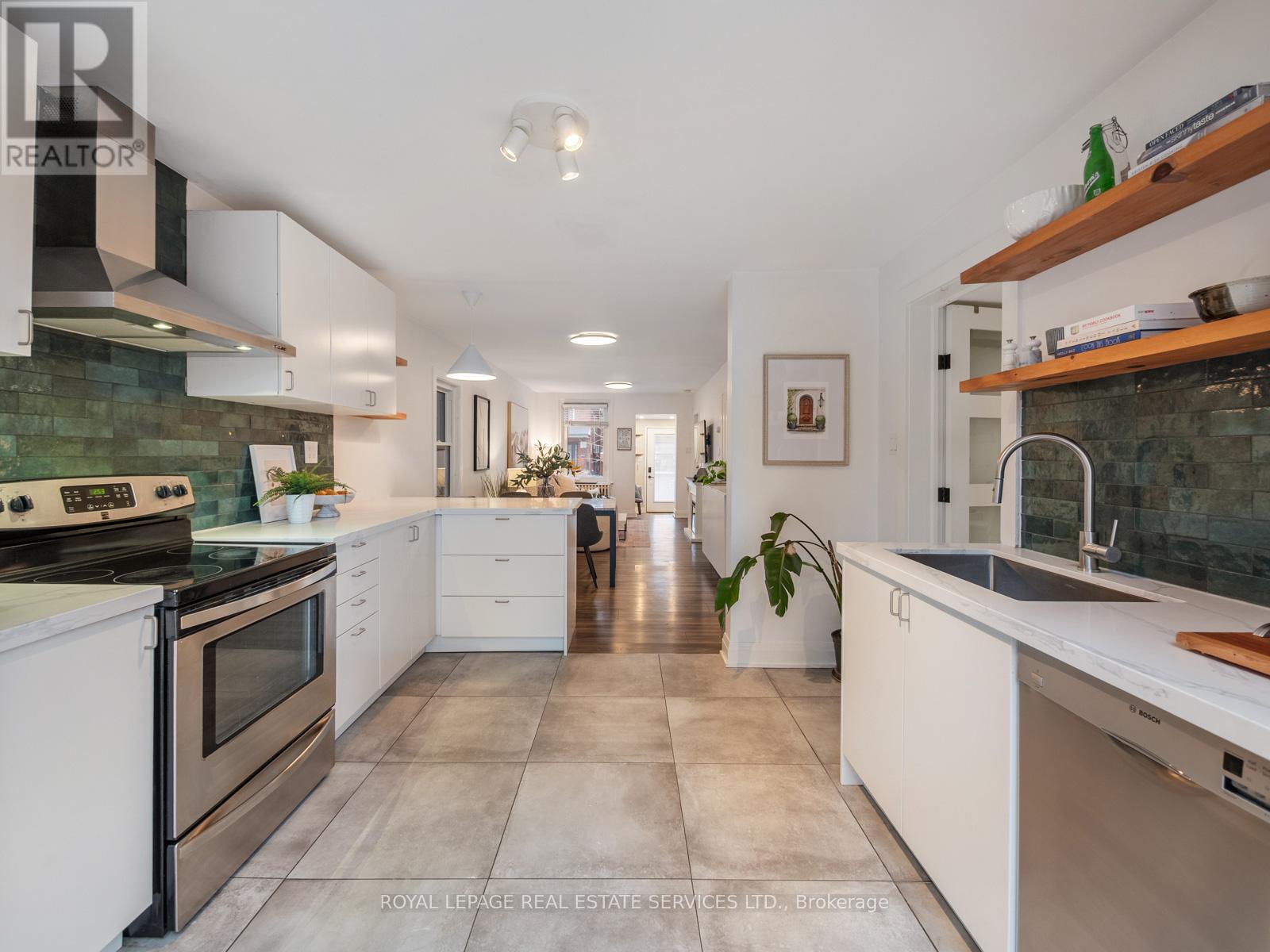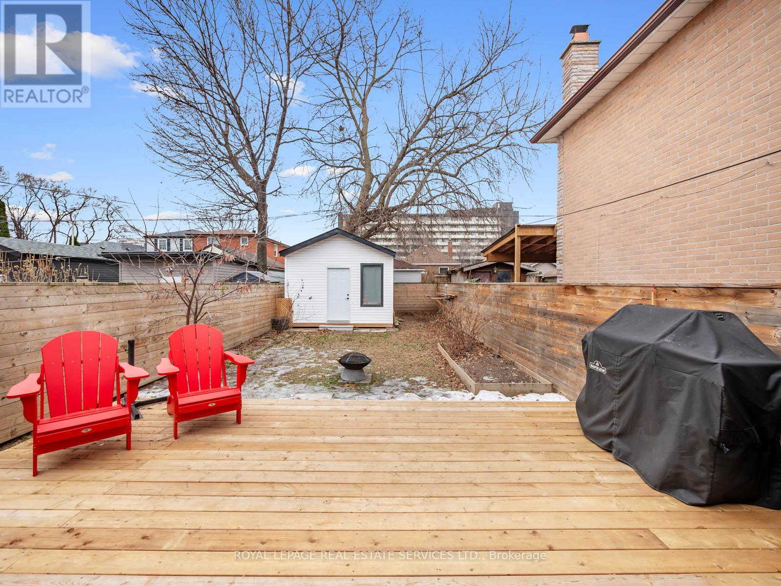 Fantastic opportunity to own a charming detached bungalow on a quiet dead-end street with a legal front parking pad. Bursting with curb appeal, this well-maintained home offers a bright and spacious open-concept layout, perfect for modern living and entertaining. A welcoming and functional mudroom entry features heated floors and a double closet, providing excellent storage and everyday convenience. The stylishly updated kitchen showcases open shelving, new quartz countertops, and a convenient breakfast bar, creating a warm and functional heart of the home. Large double French doors open to a private backyard oasis complete with brand-new decking, thoughtfully designed landscaping, and a generous 10' x 12' outdoor shed-ideal for storage or easily reimagined as a home office, gym, or creative studio. An excellent condo alternative and perfect for first-time buyers, this home offers the freedom of homeownership without maintenance fees. Located in the sought-after Rockcliffe-Smythe neighbourhood, this area is known for its strong sense of community, tree-lined streets, and easy access to parks, trails, and local amenities. Enjoy close proximity to the Junction and Stockyards districts, along with the added convenience of being close to the Eglinton Crosstown LRT, plus quick access to Bloor West Village, Jane Subway Station, Eglinton Flats, and Humber River hiking and biking trails. (id:4555)