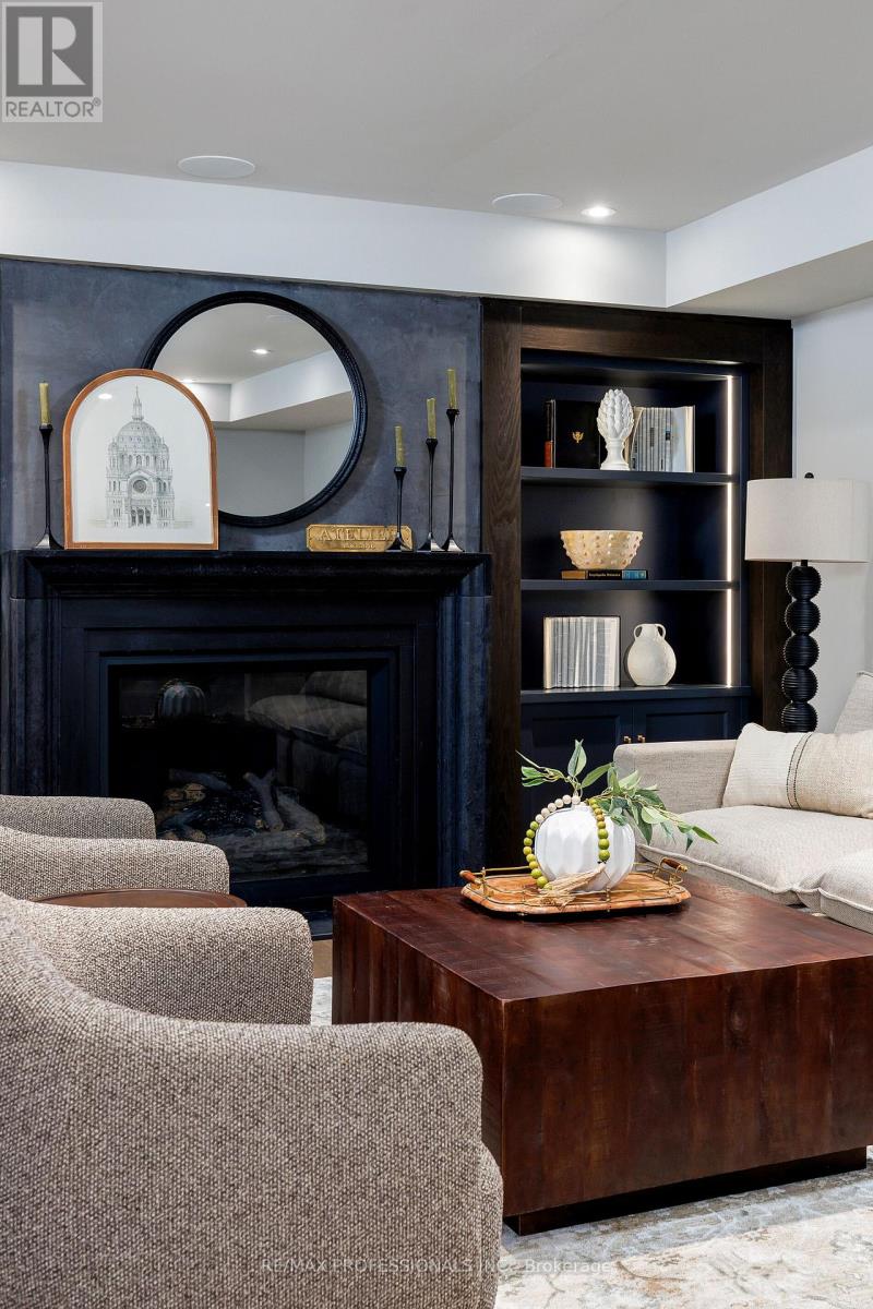 Nestled on a quiet cul-de-sac in a rare, beautiful ravine setting, this 5,000+ sq ft French-inspired estate architecturally refined by Hausworks, built by Atelier Custom Homes and designed and styled by Rizo Lola Designs offers three levels of refined luxury built with the finest curated materials. The main floor features a formal dining room, elegant office, and a stunning open-concept kitchen and family room with high-end appliances, honed quartzite & marble countertops, custom fine cabinetry, a large center island and a breakfast nook with ravine views. The family room, anchored by a limestone fireplace, flows into a sunroom overlooking the ravine. Upstairs boasts four spacious bedrooms, including a serene primary retreat with a grand walk-in closet and spa-like ensuite with oversized glass shower and heated floors. The lower level offers a wine room, wet bar, rec room with fireplace and custom built-ins, radiant heating, a fifth bedroom/office, full bath with steam shower, and gym. The exterior blends aged brick with limestone, professionally landscaped grounds, cobblestone driveway with snowmelt system, Generac generator, custom stone patio/walkway, and in-ground irrigation. Situated on an impressive ravine lot in one of the city's most prestigious enclaves, close to top schools, parks, and major routes, this residence delivers unmatched privacy, elegance, and lifestyle for the most discerning buyer. (id:4555)