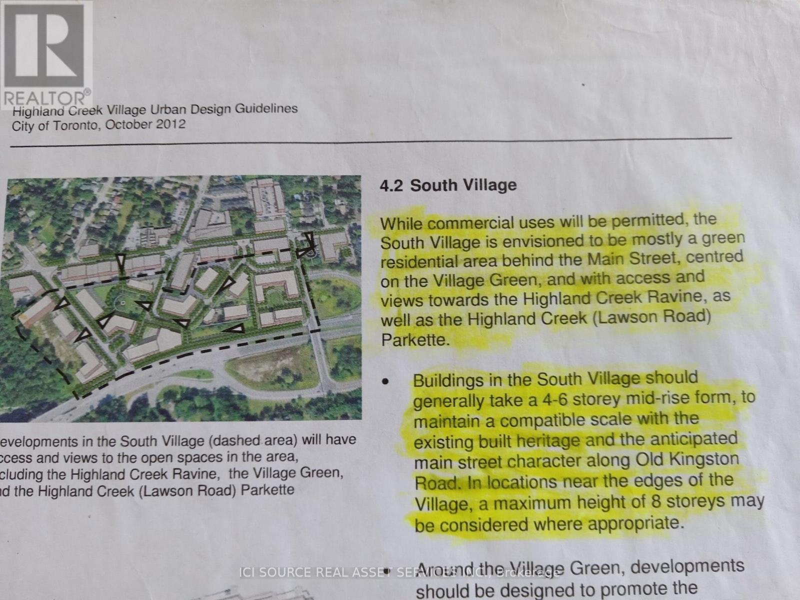 High demand location, Highland Creek Village.University of Toronto 5 minute walk to campus.Zoning CR mixed use. Apartment rental building,Nursing home,Retirement home, Condo development, Medical facility,Professional office,Daycare educational facility. Great outdoor trails by Rouge River, 7 minute walk to beach lake Ontario. Future New LRT to University Investors, Buyers, Joint venture, 50% ownership $1,999,999 *For Additional Property Details Click The Brochure Icon Below* (id:4555)