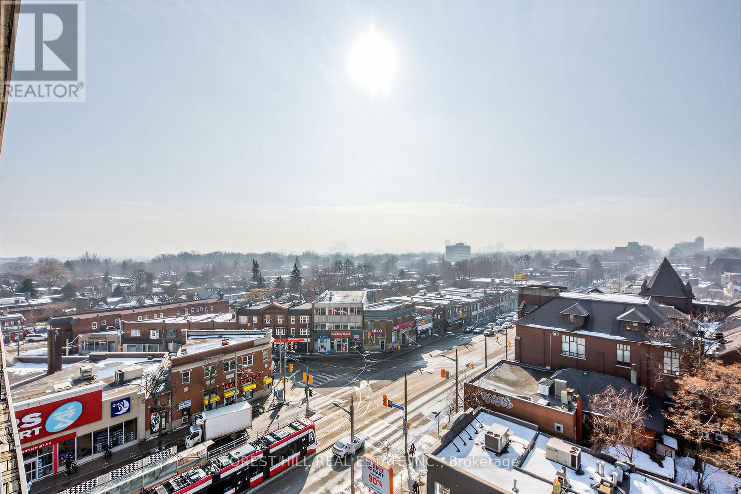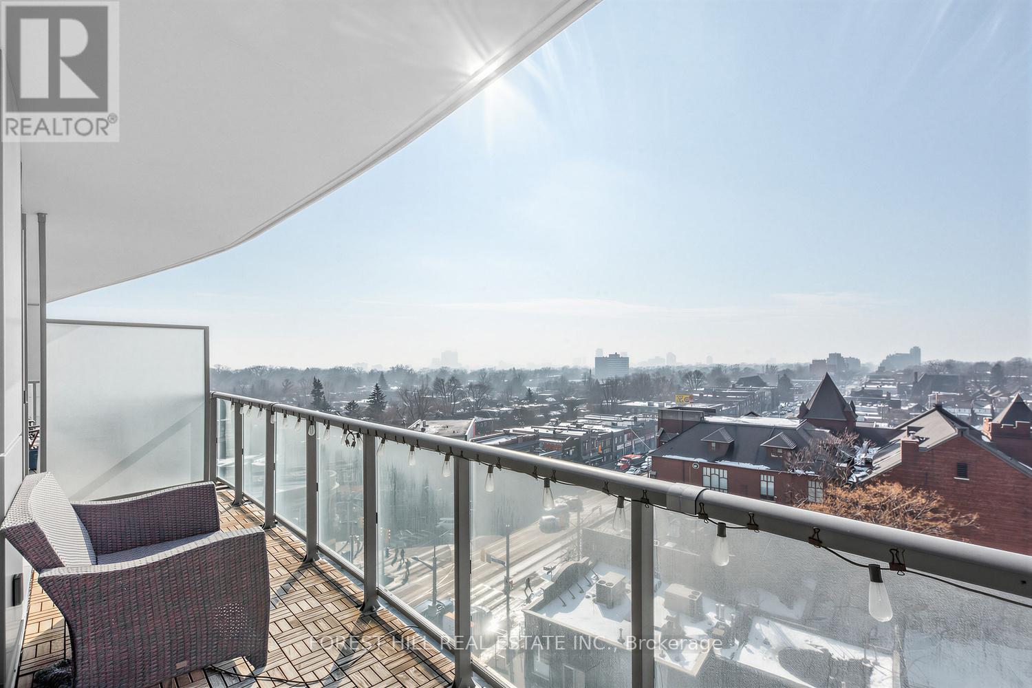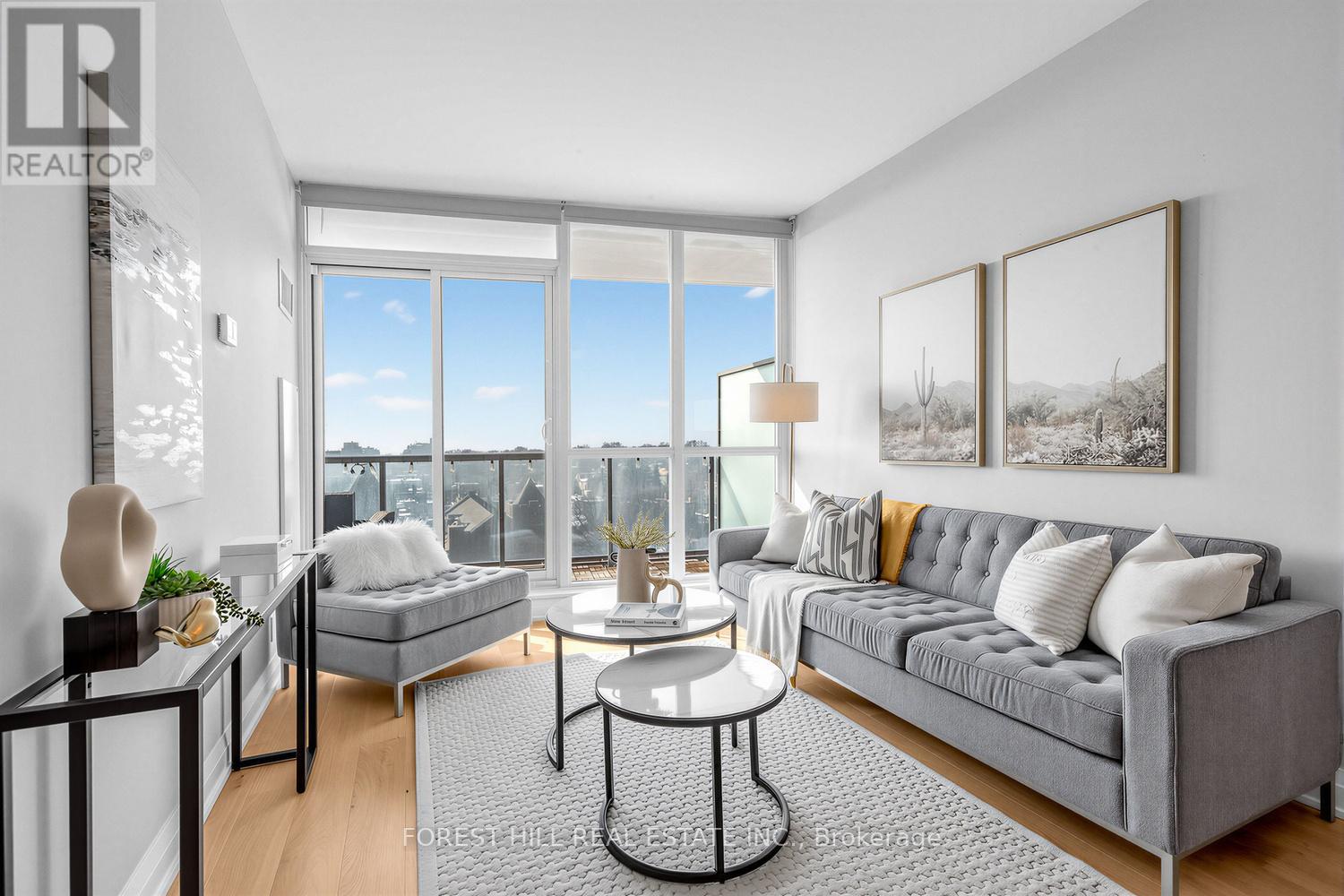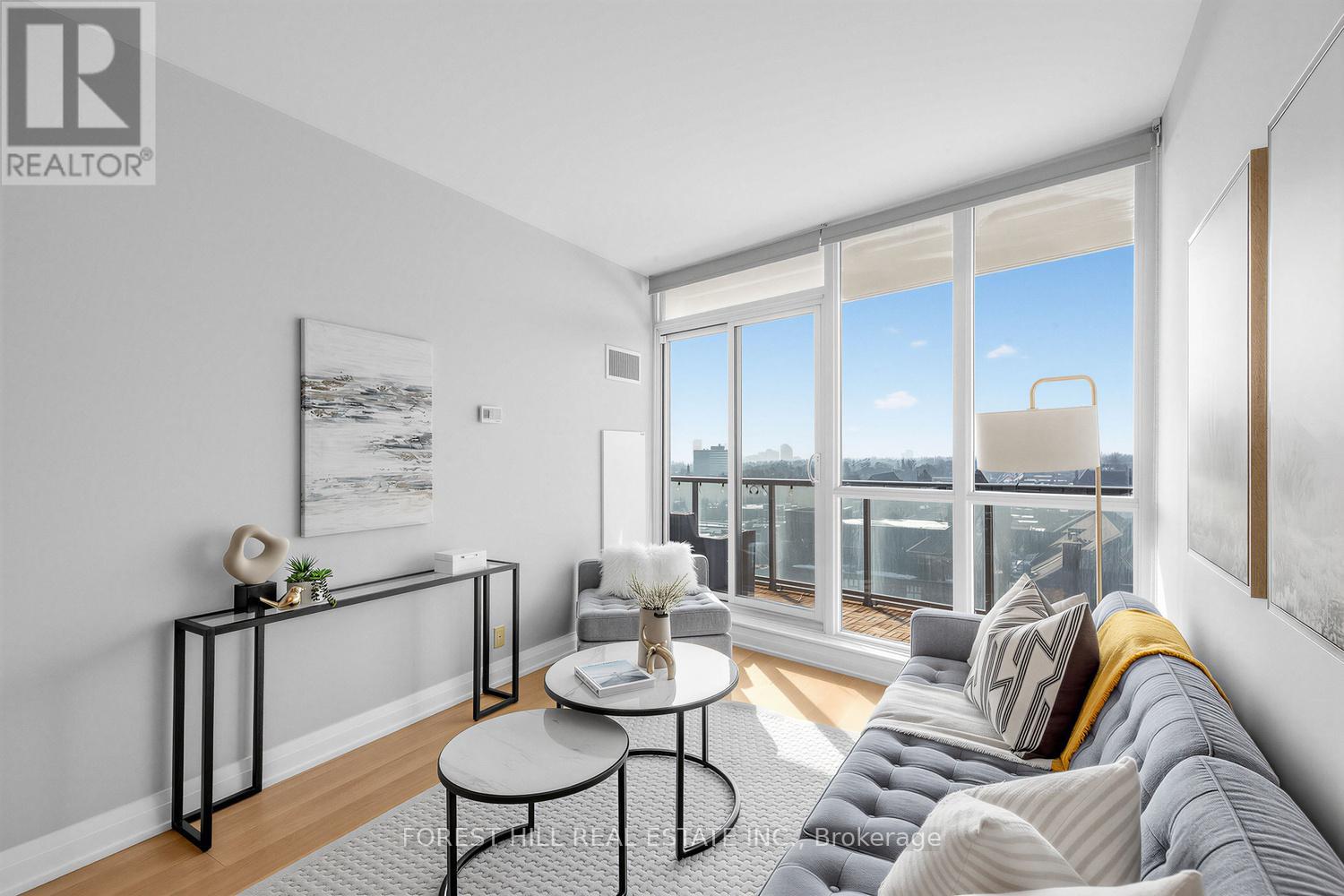 Experience sophisticated city life in this elegant one-bedroom plus den suite, perfectly situated where Forest Hill meets the vibrant St. Clair West community. This thoughtfully designed residence features a seamless open-concept layout illuminated by floor-to-ceiling windows and elevated by upgraded, modern light fixtures throughout the unit. The living space extends onto a generous private balcony that features acacia decking and stunning, unobstructed sunset views.The interior is defined by premium modern upgrades, including brand-new white oak engineered hardwood floors and an upgraded entryway closet with frosted sliding doors. The kitchen is equipped with a premium, low decibel Bosch dishwasher, while the adjacent dinette area boasts custom-designed built-in bookshelves that maximize both style and utility. For those seeking flexibility, the versatile den offers the perfect footprint for a dedicated home office or a cozy secondary sleeping area. The lifestyle at 530 St. Clair is one of unparalleled convenience, offering a storage locker and a parking spot that is steps from the elevator. Residents enjoy immediate access to the TTC and St. Clair West station, with premium shopping at the nearby Forest Hill Loblaws just moments away. Beyond the elite amenities of "The 530 Club," the surrounding neighborhood offers the rich local culture of Wychwood Barns and its renowned Saturday morning organic market, making this home a true sanctuary in the heart of the city. (id:4555)