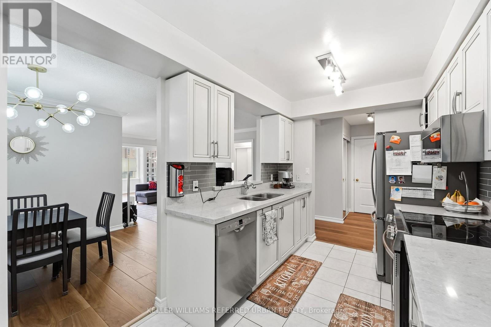 A rare opportunity to own a spacious and beautifully maintained 2-Bedroom + Den condo in the heart of North York at Yonge & Finch. Freshly transformed in February 2026 - the entire unit features a full designer paint refresh and stunning new flooring throughout, providing a seamless and contemporary feel. Located within a gated, Tridel-built community - this expansive suite offers an impressive blend of comfort, privacy, and modern upgrades-perfect for families, professionals, or downsizers seeking generous living space and exceptional convenience. Thoughtfully designed with separate living and dining areas, an upgraded modern eat-in kitchen with quartz countertops, and a bright solarium/den with elegant French doors - a perfect work-from-home or kid-zone option. The large primary bedroom includes a walk-in closet and a private 4-piece ensuite. East facing, offering morning sunlight and a peaceful atmosphere with no street noise. Large ensuite laundry room offers additional storage space. Recent improvements include updated appliances, lighting fixtures, window coverings, designer paint refresh and new luxury vinyl flooring throughout. New A/C 2025. Includes 2 owned underground parking spaces & storage locker. Building amenities features a 24 Hr Concierge, Gym, Party Room, Self-Serve Carwash++ Steps To Finch And North York Centre Subway Stations, Restaurants, Stores, Mel Lastman Square, Mitchel Field Community Center + Top-Rated Schools - McKee And Earl Haig. (id:4555)