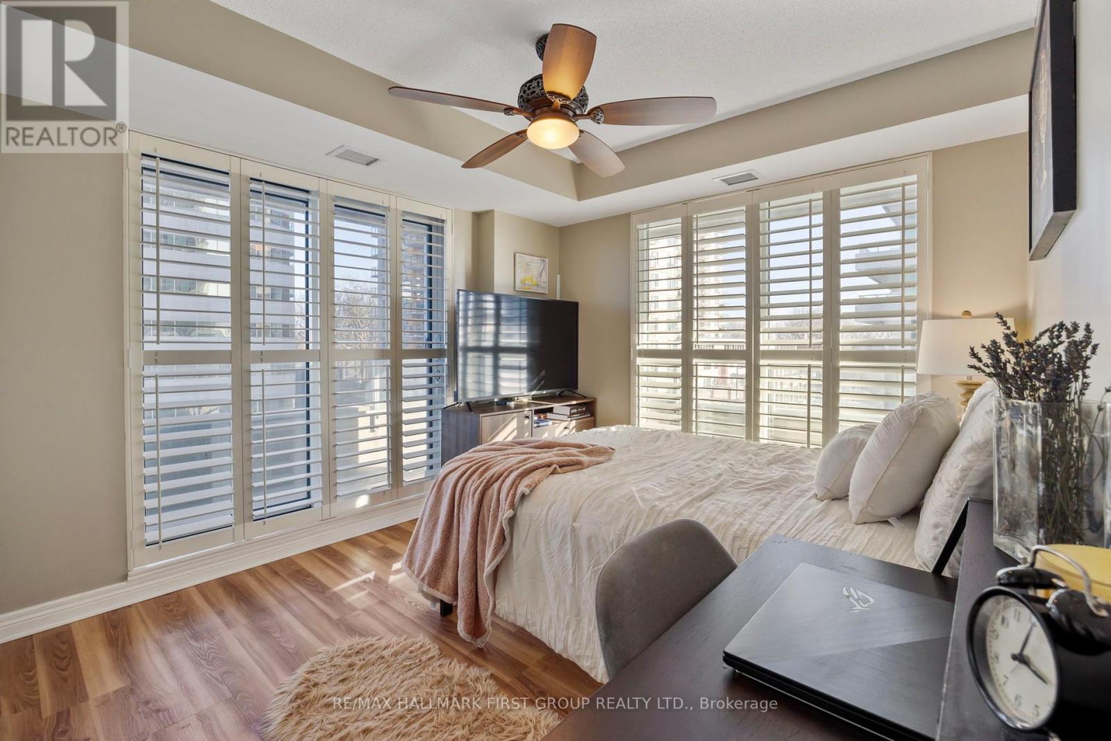 Welcome to this stunning 1-bedroom plus den corner condo in the heart of Scarborough Town Centre. This bright and spacious unit is filled with natural light and features a rare wrap-around balcony with panoramic East and South views. The open-concept living and dining area is perfect for entertaining, enhanced by floor-to-ceiling windows and modern finishes throughout. The sleek kitchen offers white appliances, granite countertops, and ample cabinet storage. The generously sized bedroom includes a closet and beautiful unobstructed views, while the enclosed den provides a versatile space ideal for a home office or guest room. Custom California shutters and designer window coverings add both elegance and privacy throughout the unit. Residents enjoy top-tier amenities in a well-managed building. Located just steps from Scarborough Centre Subway Station, Scarborough Town Centre, and the YMCA, you'll also be surrounded by dining and entertainment options. With easy access to Highway 401 and close proximity to the University of Toronto Scarborough, this is an exceptional opportunity to own in one of Scarborough's most convenient and vibrant communities. One parking space and one locker are included for added convenience-everything you need to call this beautiful condo home. (id:4555)