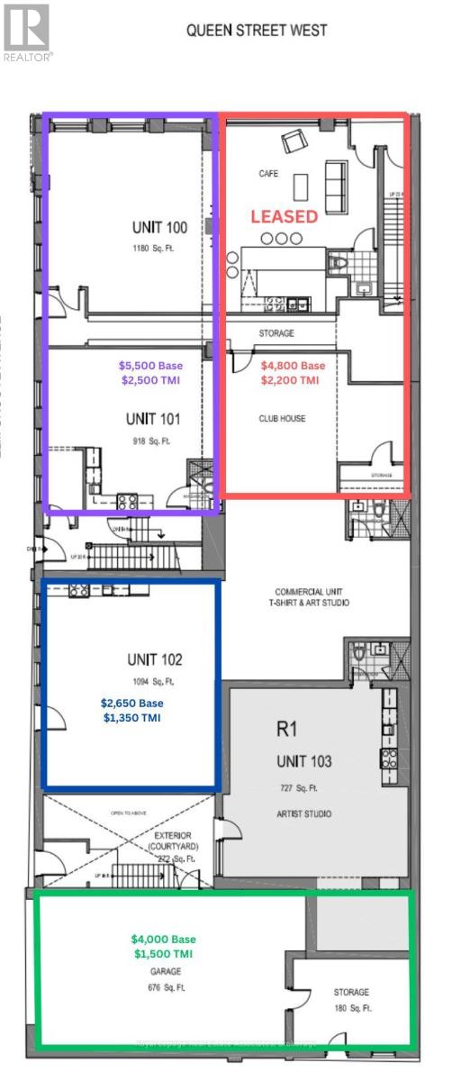 Corner retail unit on Queen St W with signage potential on both Queen St W and Elm Grove. High ceilings, open layout, and space can be demised with drywall to create separate areas. Clear glass door to be installed on Queen St W upon possession; currently has side-door access with potential for two entrances. Option to lease additional space at an adjusted rate. TMI is a monthly rate. (id:4555)