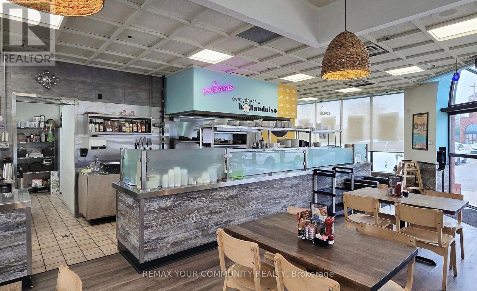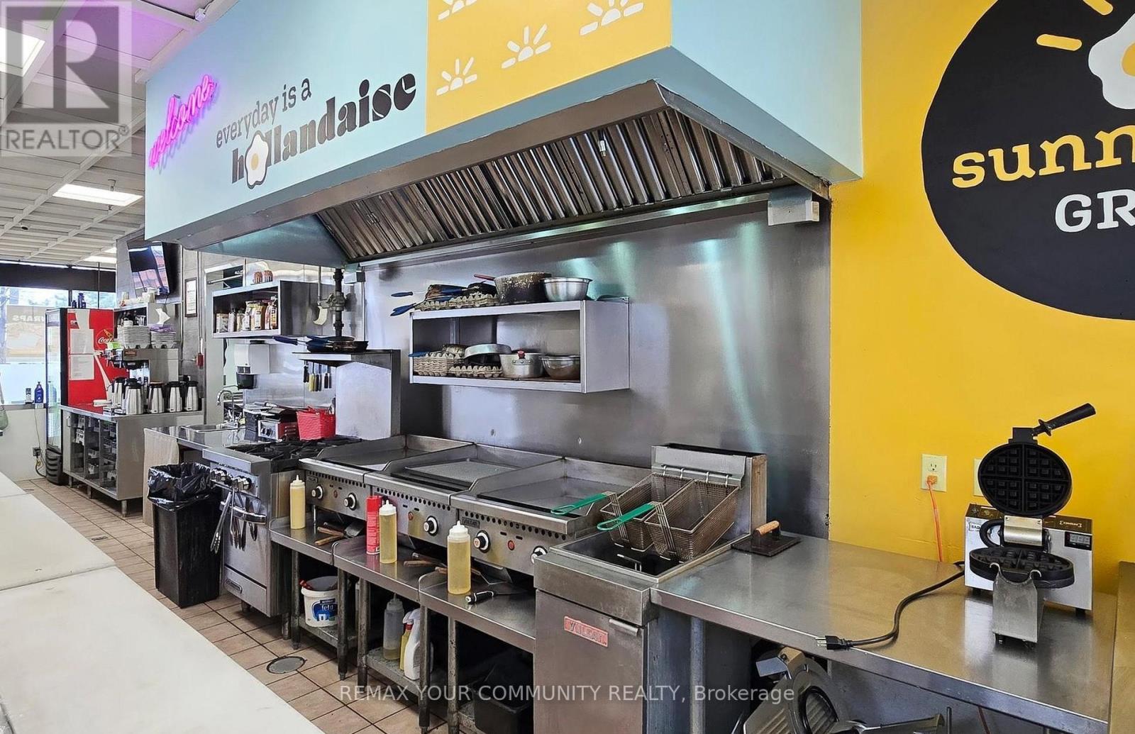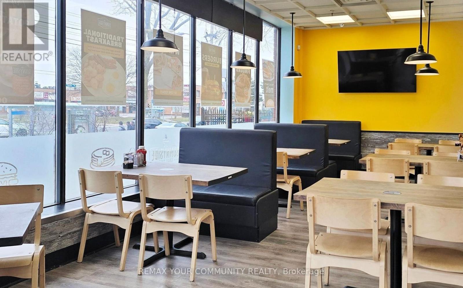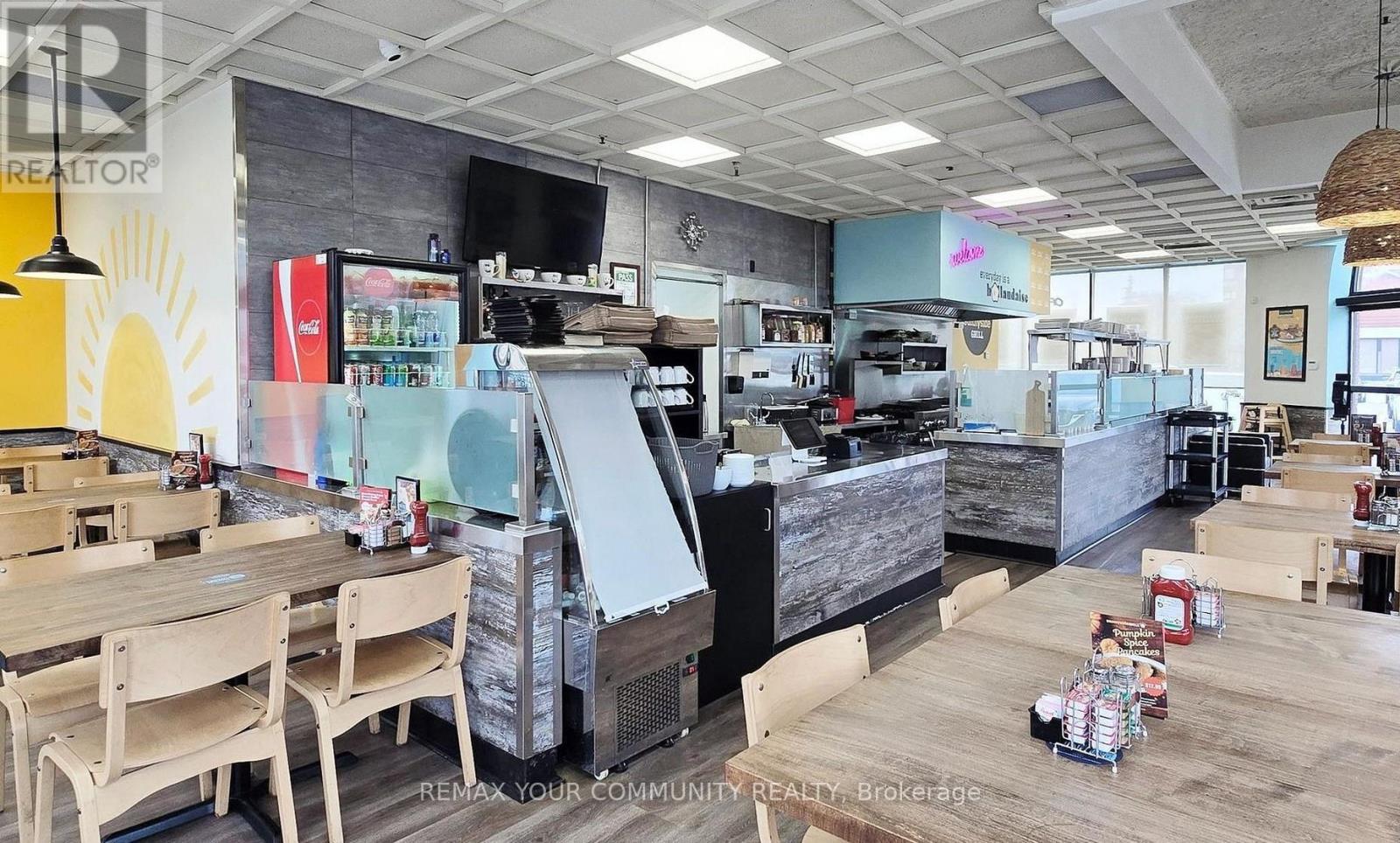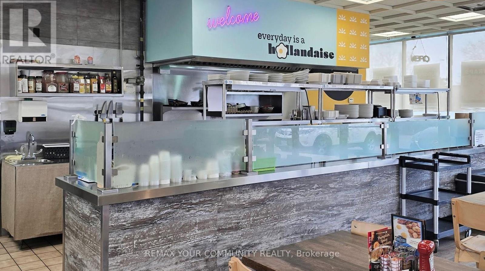 A rare opportunity to acquire a thriving Sunnyside Grillbreakfast and brunch franchise in a prime, high-visibility corner location on Steeles Ave. This turn-key operation features a transferable LLBO liquor licence, including patio privileges, and operates a convenient single daytime shift (7 AM - 3 PM), offering an excellent work-life balance.This profitable and well-established location benefits from strong brand recognition, loyal repeat clientele, and steady daily traffic. Fully equipped with modern fixtures and a streamlined kitchen, the business requires no immediate capital investment. Optimized for Uber Eats and SkipTheDishes, it also offers significant growth potential through expanded liquor service, catering, and increased delivery volume.The attractive lease includes water costs, with 4 years remaining plus a 5-year renewal option. With low overhead and a competitive 6% royalty fee, this is an ideal opportunity for an owner-operator or investor seeking a stable and scalable business. (id:4555)