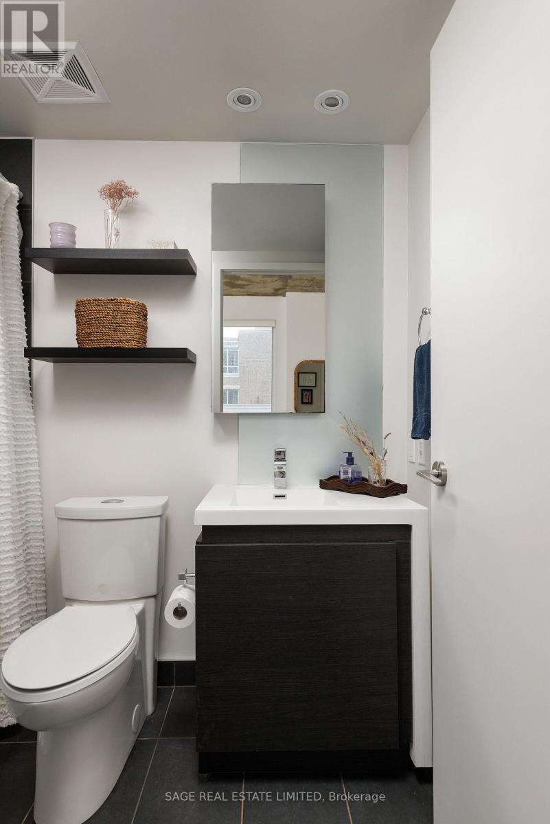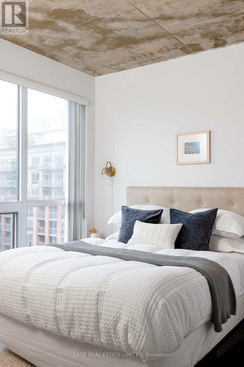 Bright. Airy. Effortlessly cool. This north east corner 2 bedroom, 2 bathroom suite blends modern design with a distinct loft aesthetic and exceptional everyday livability. Featuring 9 foot ceilings, exposed concrete, and expansive windows, the space is flooded with natural light and framed by leafy residential views over Queen West, lush and green in the summer, with a subtle skyline in the distance. The open-concept layout is anchored by a sleek kitchen with an island and seating, perfect for morning coffee, casual dinners, or hosting friends before a night out. Thoughtfully designed for everyday ease, the suite offers a functional split-bedroom layout and upgraded closet built-ins that add both style and smart storage. Set within DNA3, one of the area's most desirable and well-managed buildings, residents enjoy 24 hour concierge and an impressive suite of amenities including a fully equipped gym, yoga studio, theatre room, party room, and beautifully designed outdoor lounge areas. Pet friendly and community oriented, the building has become a standout choice for those who value design, convenience, and connection. Located directly on the King streetcar line, access to the Financial and Entertainment Districts is effortless, while Queen West, Ossington, Trinity Bellwoods, Stanley Park, and Garrison Common are all within walking distance. A grocery store right in the building adds everyday convenience to an already exceptional lifestyle. With a 96 Walk Score and 91 Transit Score, this is urban living without compromise. For those who want downtown energy, green space for weekend coffee walks, and a refined space to come home to, this is the one. (id:4555)