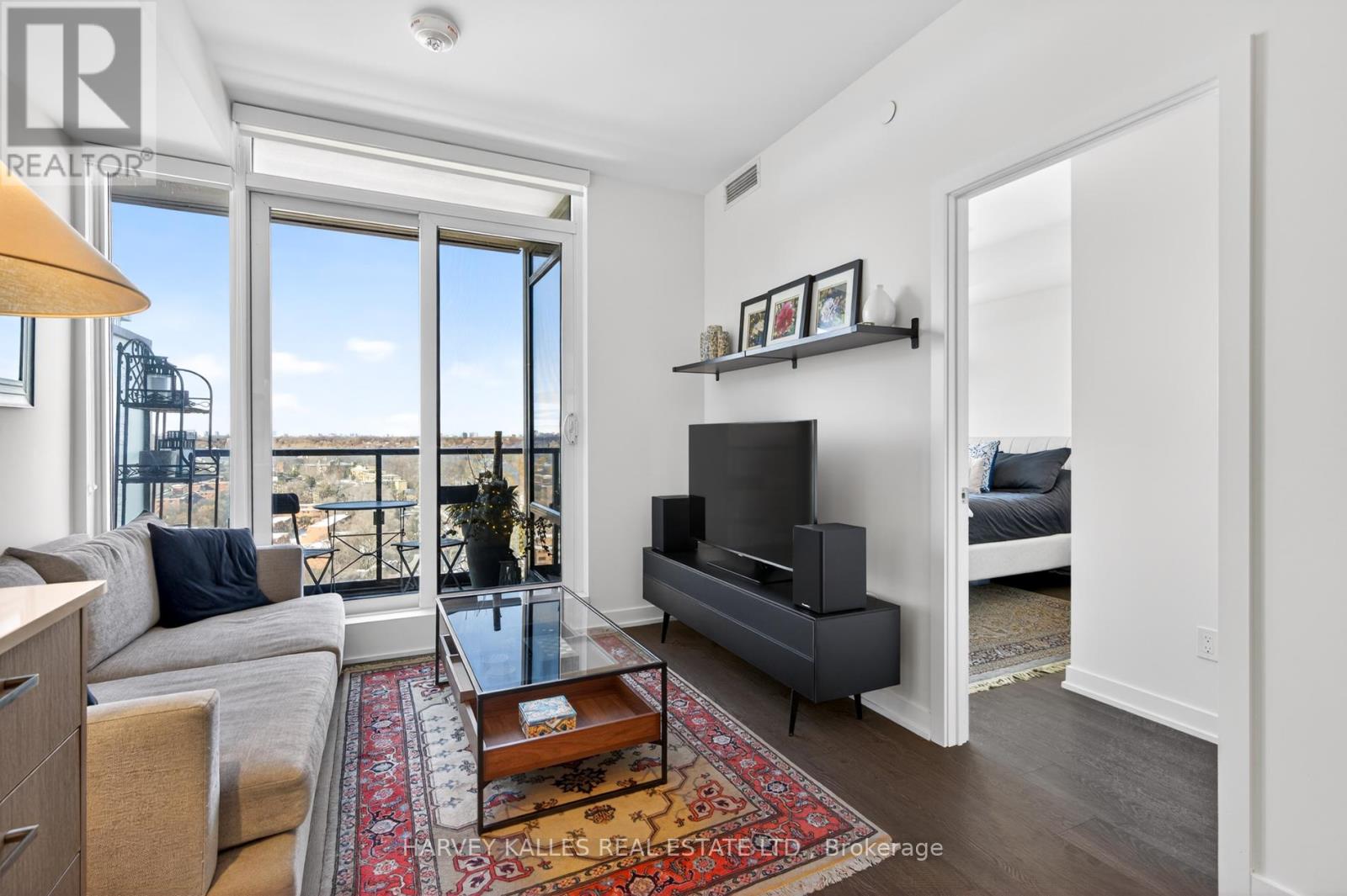 Nestled between High Park and Lake Ontario, this stunning oversized 1+ bedroom, 2 bathroom suite in the Mirabella Condominiums East Tower offers breathtaking north-facing views of High Park and Grenadier Pond. This bright, open-concept unit features 9-foot ceilings, wide-plank laminate flooring, and a sleek modern kitchen complete with stainless steel appliances and quartz countertops. Designed with both sophistication and comfort in mind, the spacious layout is perfect for everyday living and entertaining. An ideal location for outdoor enthusiasts, enjoy immediate access to the waterfront trails along Sir Casimir Gzowski Park, Sunnyside Pavilion, and High Park just steps away. Conveniently situated in vibrant South Parkdale, transit is at your doorstep with the 501 streetcar, Lake Shore Blvd W, and the Gardiner Expressway nearby. Bloor West Village is just a 5-minute drive. Daily essentials are within easy reach, including Sobeys Queensway, The Cheese Boutique, Rabba Fine Foods, Costco Wholesale Queensway, and Sobeys Urban Fresh High Park. Residents enjoy an exceptional array of amenities: rooftop terrace with seating & BBQs, indoor pool, fully equipped gym with WiFi, yoga studio, sauna, party room, guest suite with kitchen, business centre with WiFi, kids' playroom, dog wash station, secure bike rooms with dedicated bike elevator, EV chargers, free visitor parking, 24-hour security, and high-speed internet included in maintenance fees. A medical and dental clinic is conveniently located at street level. EXTRA'S: 24 Hours Concierge, Party Rooms, Fitness Centre, Outdoor BBQ, Stainless Steel Modern Appliances, Front Load Washer Dryer, single underground parking spot. Upgrades in LED lighting in kitchen and den as well as electrical outlet upgrades in living room and den. (id:4555)