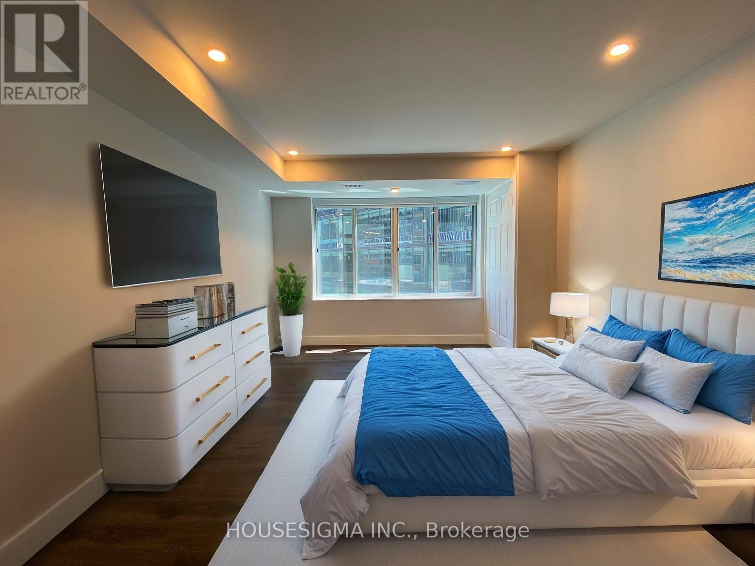 Spacious, fully renovated 3-bedroom, 2-bath corner suite offering approximately 1,400 sq ft of thoughtfully designed living space, complete with parking, an oversized locker, and two bike storage mounts at the parking spot. Exceptionally well-managed building with all utilities included in the condo fees.This sun-filled suite features a bright southwest exposure and expansive wrap-around windows throughout the open-concept living and dining area. Refined finishes include smooth ceilings, an abundance of pot lights, laminate flooring, and marble tile in the foyer and second bath. Solar privacy roller blinds enhance the living and dining areas, while blackout blinds provide comfort and privacy in all bedrooms.The contemporary kitchen is both stylish and functional, showcasing quartz countertops, a large island with breakfast bar, undermount sink with pull-down spray faucet, glass tile backsplash, under-cabinet lighting, and designer pendant lights-perfect for entertaining and everyday living.An impressive amount of custom built-in storage sets this suite apart, including closet organizers in every bedroom, a foyer bench, and additional hallway storage solutions.The spacious primary retreat features a luxury 4-piece ensuite with double sinks, quartz counters, ceramic flooring, and a spa-inspired shower with rain showerhead and separate hand sprayer.Ideally located in the Financial District, just steps to the PATH, Union Station, Eaton Centre, Scotiabank Arena, Rogers Centre, world-class dining, theatres, and everything downtown Toronto has to offer. A rare 3-bedroom offering, also highly attractive to investors - previously leased in just one day at excellent rental rates, reflecting strong demand in this prime location. (id:4555)