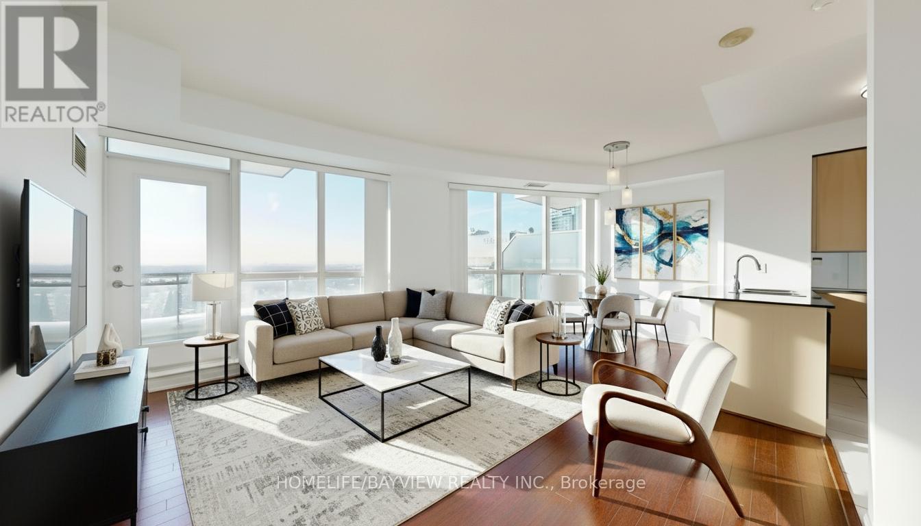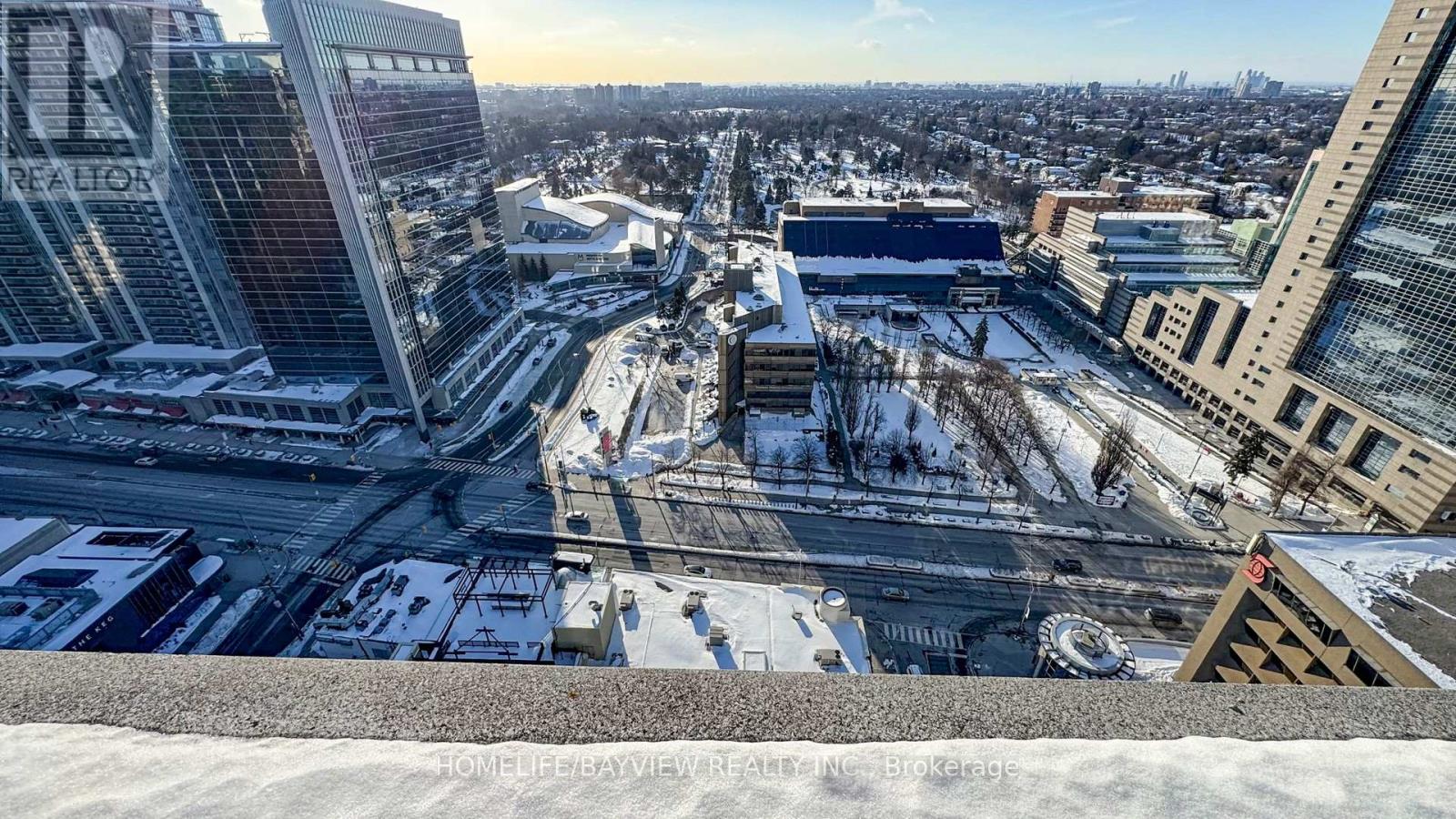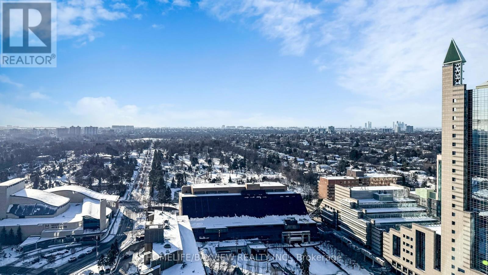 Prime North York Location. Rare opportunity for a bright, spacious, one of a kind unit in a luxury Monarch building. High-floor, 9 foot ceilings, suite features a unique layout with unobstructed skyline views overlooking Mel Lastman Square and the skating rink. Enjoy sunny floor-to-ceiling windows, and a large wraparound terrace with walk-outs from both the living room and bedroom. Freshly painted throughout and offers upgraded granite countertops, laminate flooring, brand-new never-used washer and dryer, and all new window blinds. Exceptional resort-style amenities include 24-hour concierge, indoor pool, hot tub, fully equipped gym, movie theatre, party room, car wash, internet cafe, and garden BBQ area. Unbeatable location With a walking Score of 100, just a 2-minute walk to North York Subway Station, Empress Walk, restaurants, shops, supermarkets, library, pharmacy, The Keg, Cineplex, and with quick access to Highway 401. Some photos have been virtually staged NOTE: Maintenance is inclusive of Water, Heat, Air Conditioning, Building insurance , Parking (id:4555)