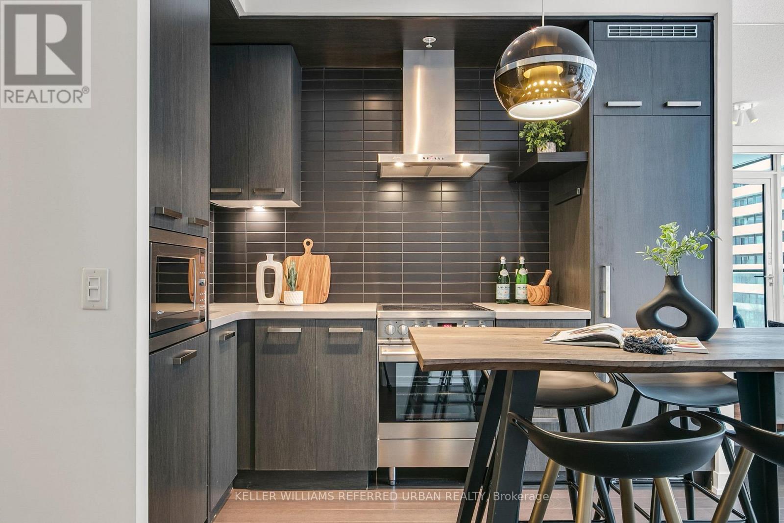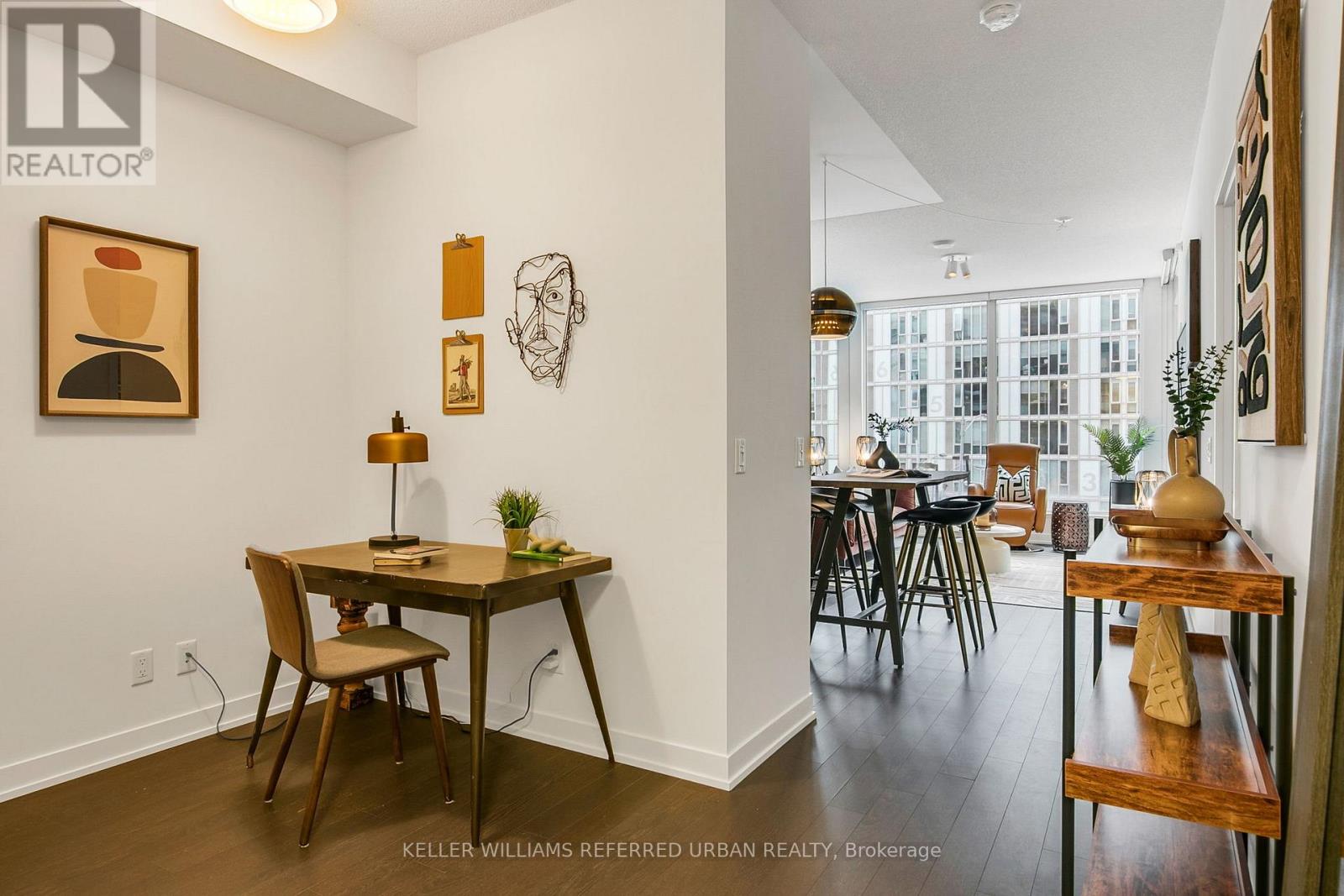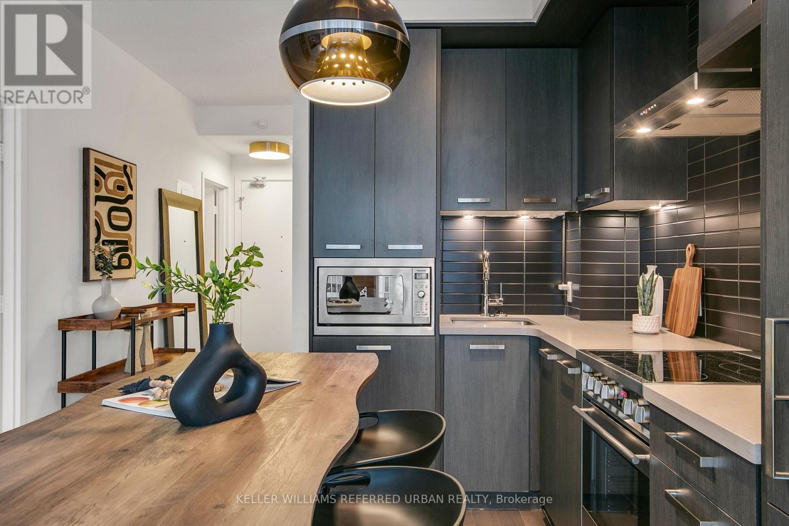 Welcome to 455 Front St E, a modern condominium located in Toronto's east downtown Canary District. This bright and functional 1+den, 2 full bath suite features an open-concept layout with contemporary finishes throughout. The combined living and dining area offers excellent natural light and flows seamlessly into the modern kitchen, ideal for both everyday living and entertaining. The primary bedroom includes a private ensuite bathroom and walk in closet, while the den provides flexible space for a home office or guest area. Extra perks of this unit are the large parking spot and unlimited internet included in the maintenance fees. Residents enjoy access to a full range of building amenities, including a fully equipped gym, games room, party room, rooftop terrace with BBQs, and 24-hour concierge. Conveniently located steps to Corktown Common, the Distillery District, TTC transit, A brand-new YMCA, shops, cafes, and everyday essentials such as a pharmacy, grocery store, dentist, and vet, the location doesn't get any better. Enjoy a quieter but well-equipped residential community with quick access to the downtown core and major commuter routes. A well-appointed suite in a connected and growing community, ideal for professionals, investors, or first-time buyers. (id:4555)