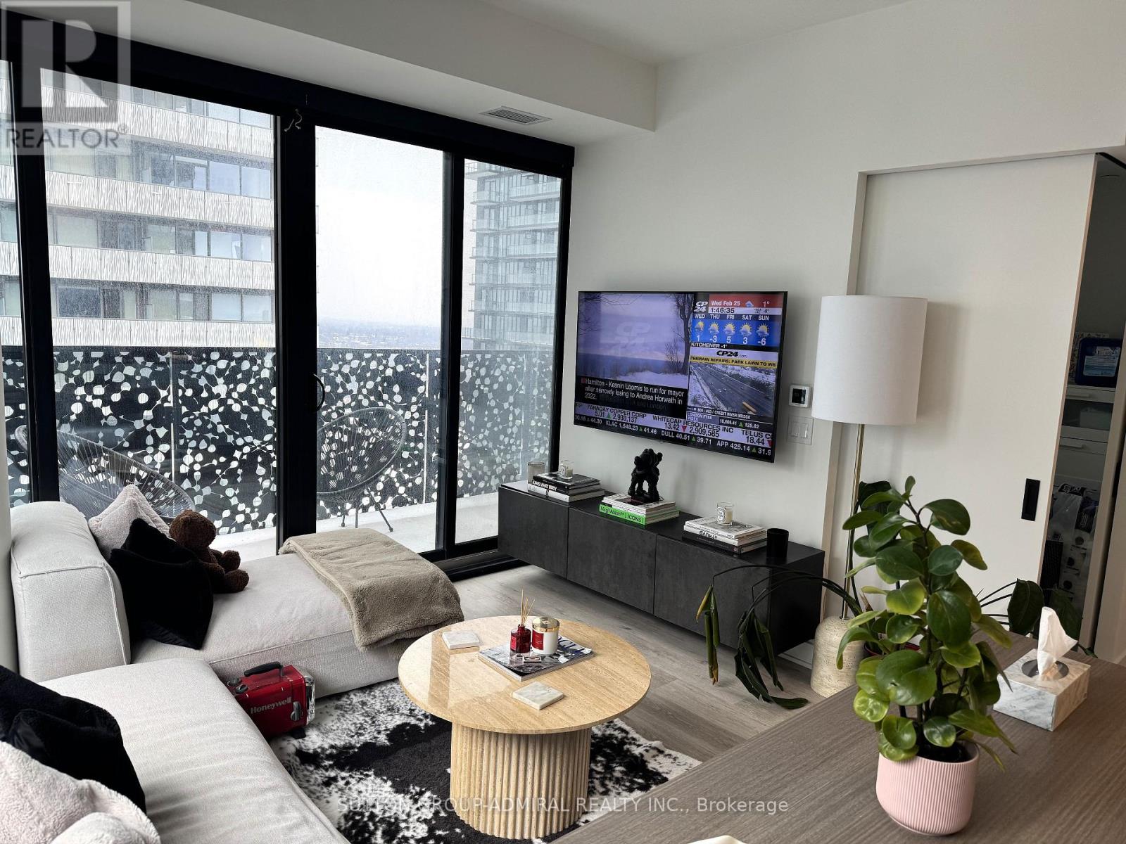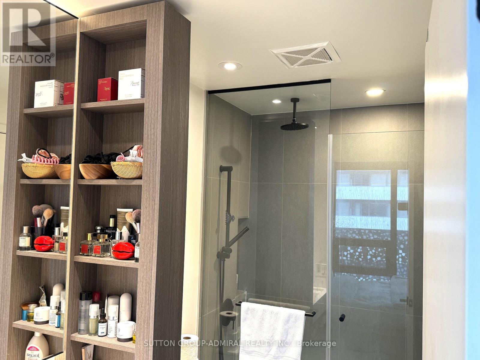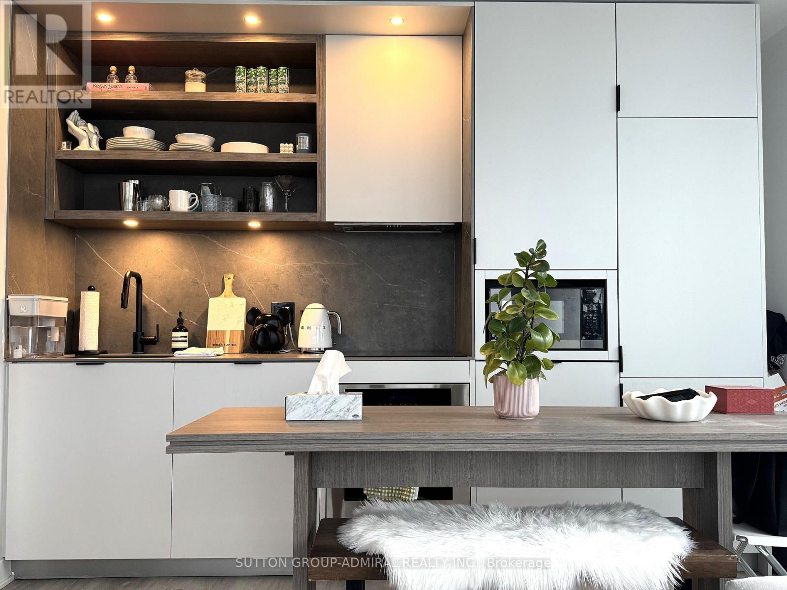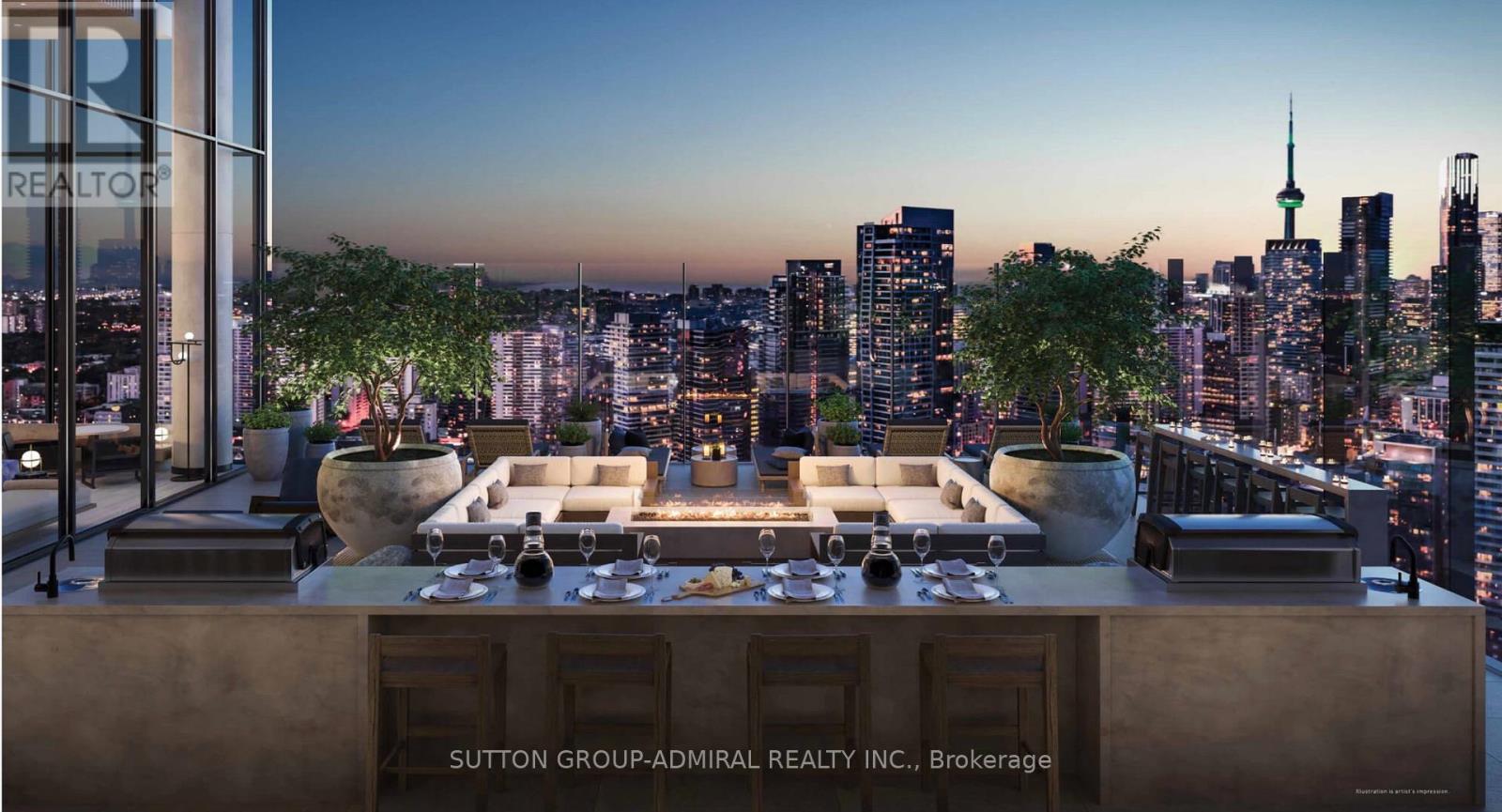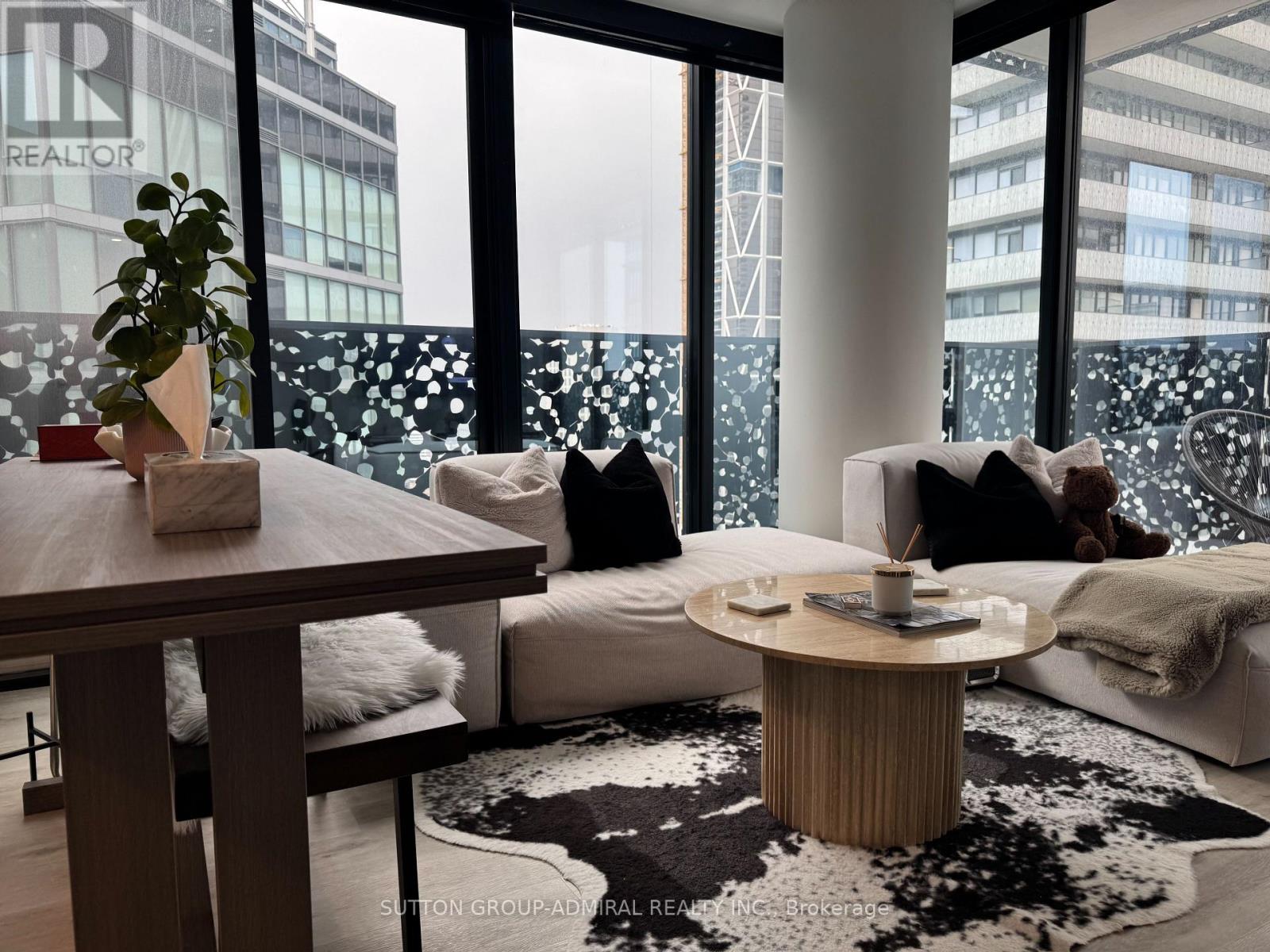 Stunning one plus den condo in Prestigious Yorkville at 55 Charles Residence. Steps to Yonge & Yorkville to enjoy the luxury shopping only minutes away. This well-designed suite with partly lakeview features 9' smooth finish ceilings, floor to ceiling windows, motorized blinds, wide plank laminate flooring. Modern and open concept, spacious layout and functional with beautiful chef' kitchen with high quality soft-close Italian cabinets, porcelain slab counter and backsplash. Upgraded to high end built-in appliances, backsplash, and innovative movable table. Primary bedroom with large windows and blackout motorized blinds. The signature bathroom has two doors easy for use and features functional shelving and drawers, backlit mirror and soft-close drawers. Spa-inspired rain shower head with separate handheld extension, frameless glass shower. The den has window and sliding door, perfect for guests or an office. Amenities including a large fitness studio, co-work/party rooms, and a serene outdoor lounge with BBQs and fire pits. The top floor has C-Lounge. (id:4555)