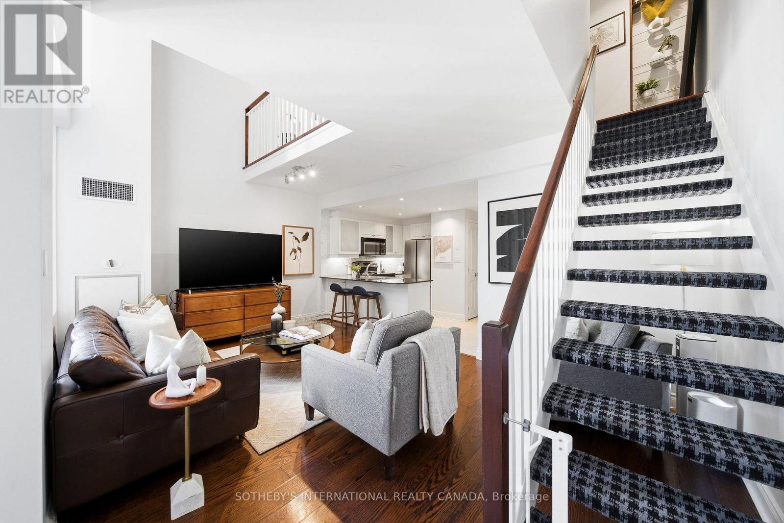 Experience the pinnacle of luxurious Yorkville living in this rarely offered two-storey loft at the prestigious 80 Cumberland. Offering 852 square feet of refined living space, this exclusive boutique residence is known for its quiet and respectful community, attentive management, and prime location in the heart of Yorkville at the corner of Bay & Cumberland. Soaring ceilings and dramatic double-height, floor-to-ceiling windows flood the open-concept living area with natural light. The thoughtfully designed two-storey layout is both functional and elegant. The eat-in kitchen is a chef's delight, featuring granite countertops, stainless steel appliances, and generous storage. Enjoy the rare luxury of not one, but two quiet and private balconies, ideal for morning coffee or evening relaxation. Upstairs, the open and airy primary suite includes a bonus nook perfect for a home office or Peloton setup along with a spacious four-piece ensuite complete with a built-in vanity. Your ensuite laundry is conveniently located on the bedroom level. A spacious den provides flexibility as a second bedroom or home office while two full bathrooms offer added comfort and convenience. Step outside to Toronto's top restaurants and cafés right at your doorstep with luxury shopping in every direction. Commuting is effortless with quick access to the TTC and the PATH just a minute away. Grocery options abound with Whole Foods, Eataly, and City Market nearby. Wellness spaces in every direction with AVANT, Equinox, Othership and top-rated pilates studios and spas within walking distance. Building amenities include a concierge, gym, and large outdoor terrace. One underground parking space and one locker are included. This is a rare opportunity to own a truly special loft in one of Toronto's most prestigious buildings and neighbourhoods. (id:4555)