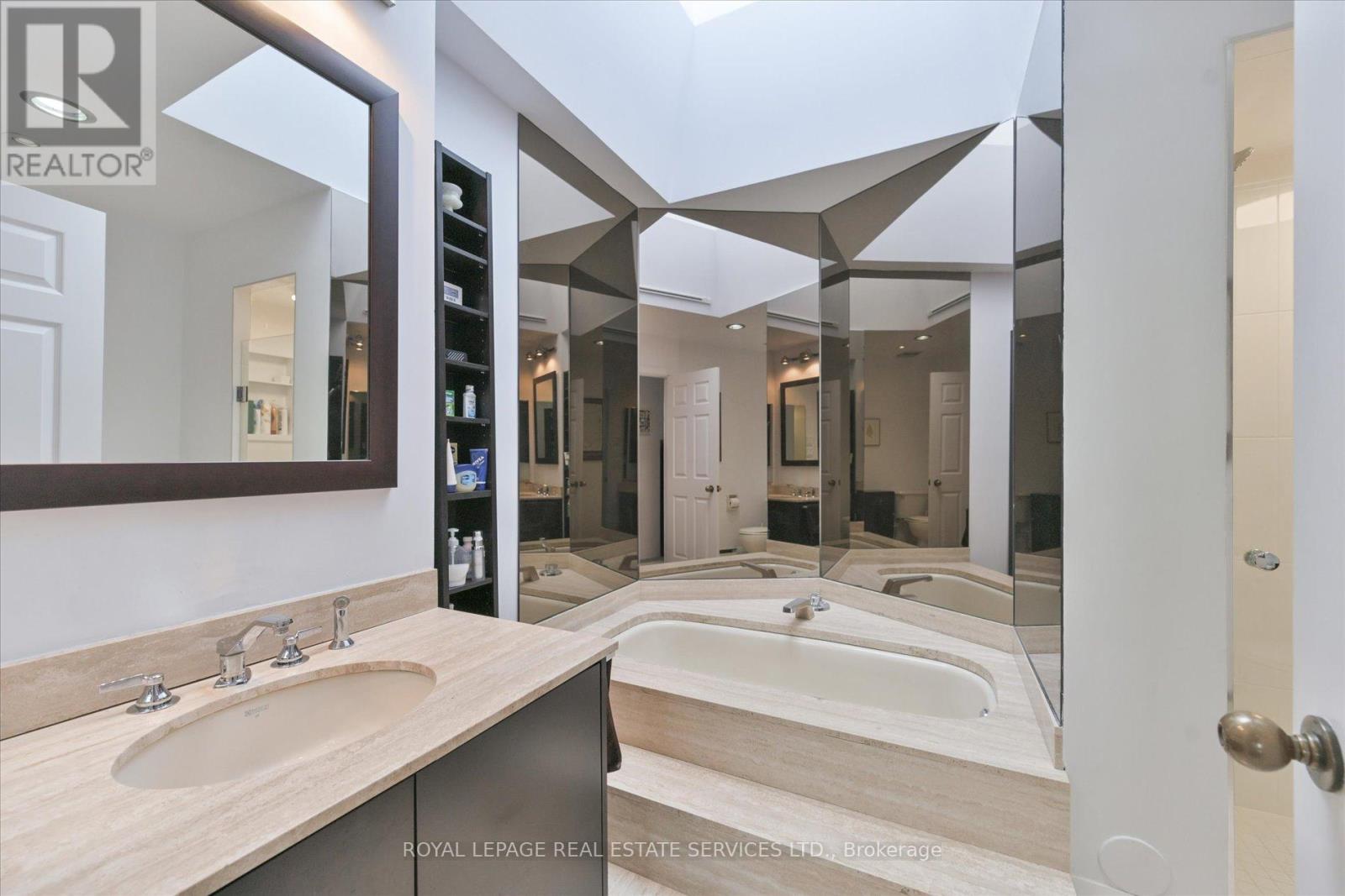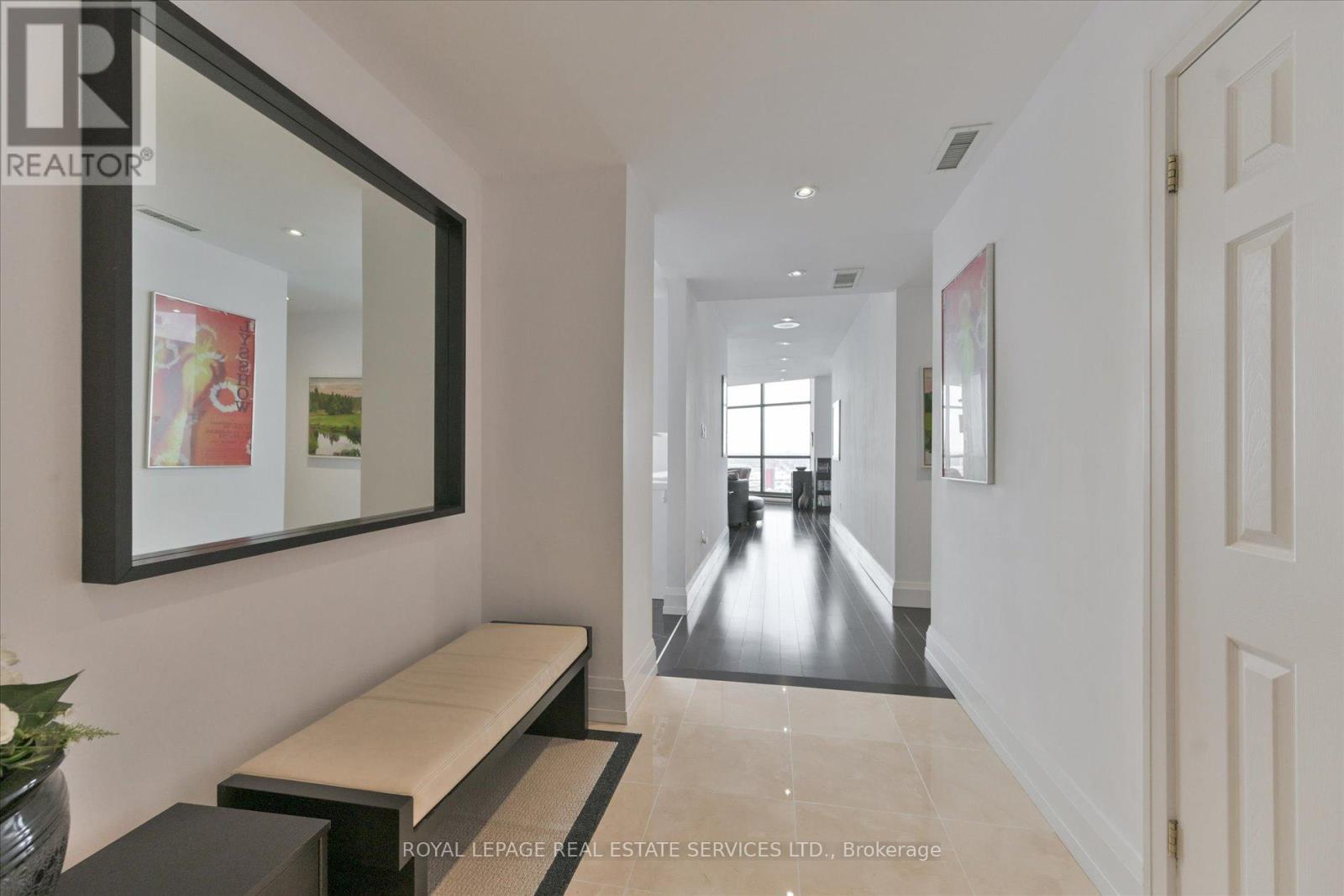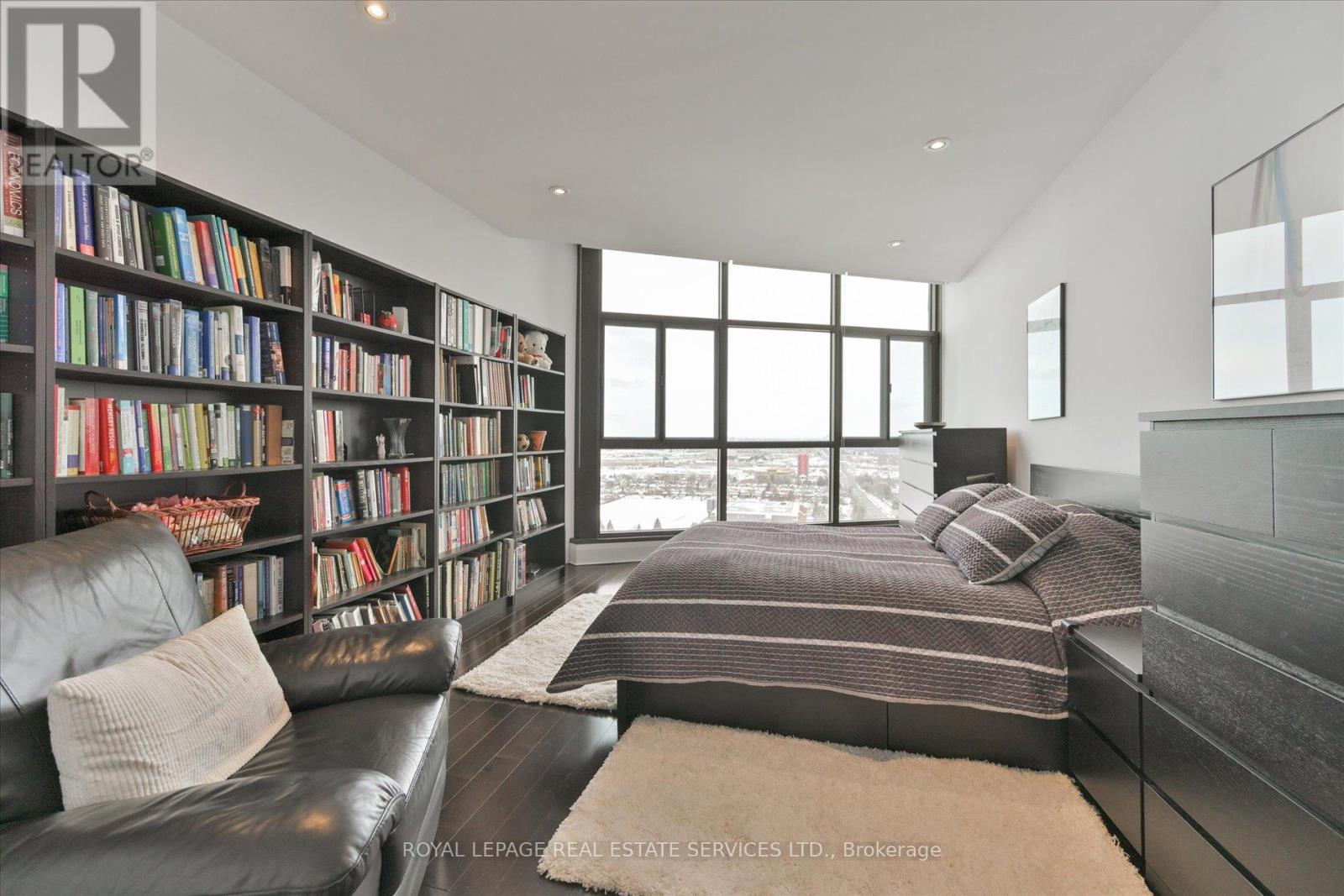 Experience refined penthouse living in the heart of Islington 2000. This rarely offered 2+1 bedroom, 2-bath residence spans approximately 2,100 sq ft, delivering exceptional scale, natural light, and timeless comfort within a beautifully maintained, established building surrounded by lush landscaped grounds. Expansive floor-to-ceiling windows showcase breathtaking, unobstructed north-west views, filling the home with golden afternoon light and spectacular sunsets. A dramatic cathedral ceiling with an oversized skylight crowns the chef-inspired kitchen, creating an airy, light-filled centerpiece ideal for both everyday living and entertaining. Elegant stone tile and engineered hardwood flooring flow throughout, enhancing the suite's classic appeal. Generous principal rooms provide remarkable flexibility for hosting and relaxing alike, while the separate den offers the perfect space for a home office, library, or guest retreat. The thoughtfully designed kitchen features abundant cabinetry and prep space to inspire culinary creativity. The spacious primary suite is a private sanctuary, complete with ample closet storage and a full ensuite bath. A well-proportioned second bedroom and additional full bath ensure comfort for family and guests. Offering the privacy, quiet prestige, and proportions of true penthouse living, along with exceptional building amenities, this residence is ideally situated close to transit, major highways, shopping, and parks. A rare opportunity to own substantial square footage and sweeping views in one of Etobicoke's most established communities. (id:4555)
