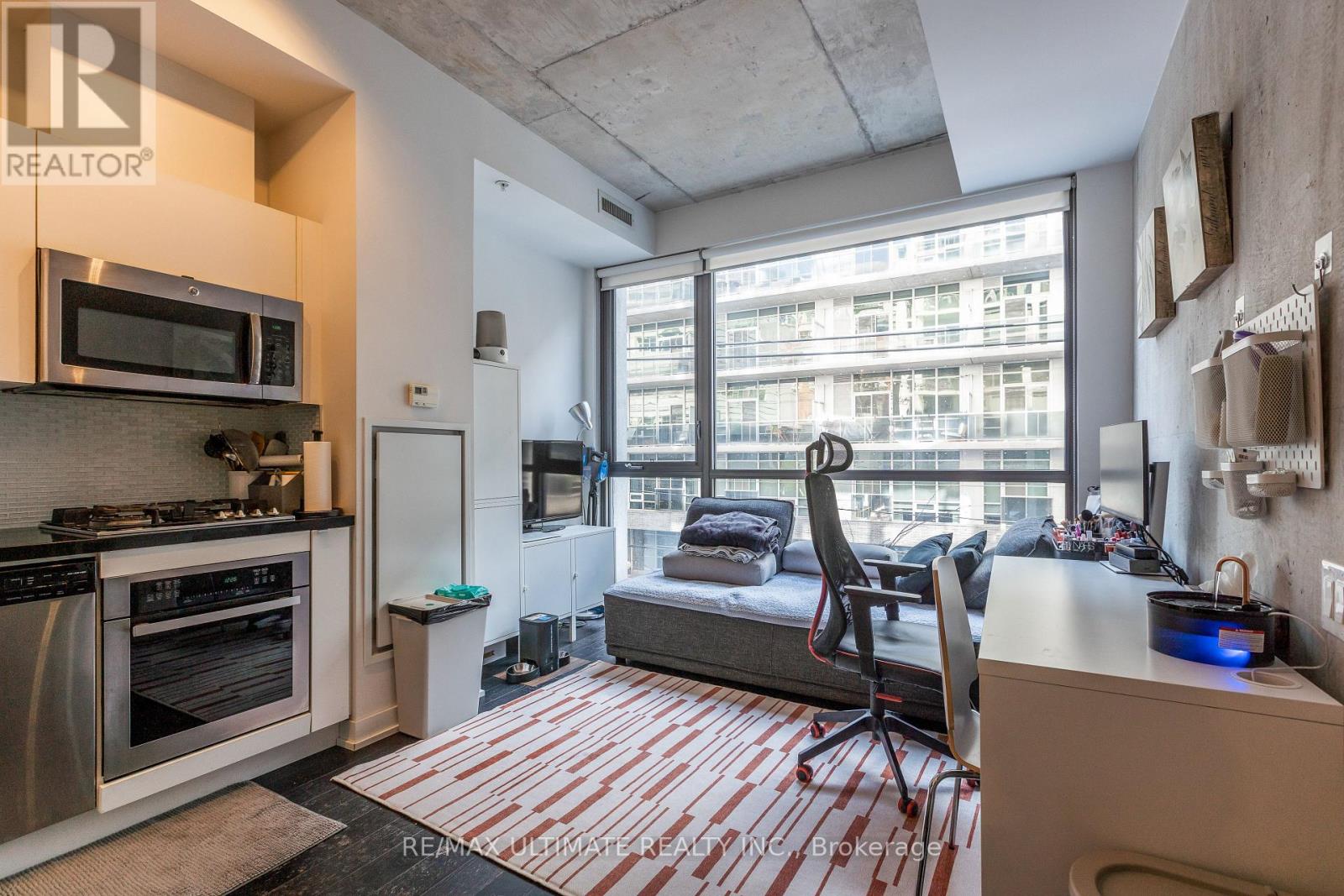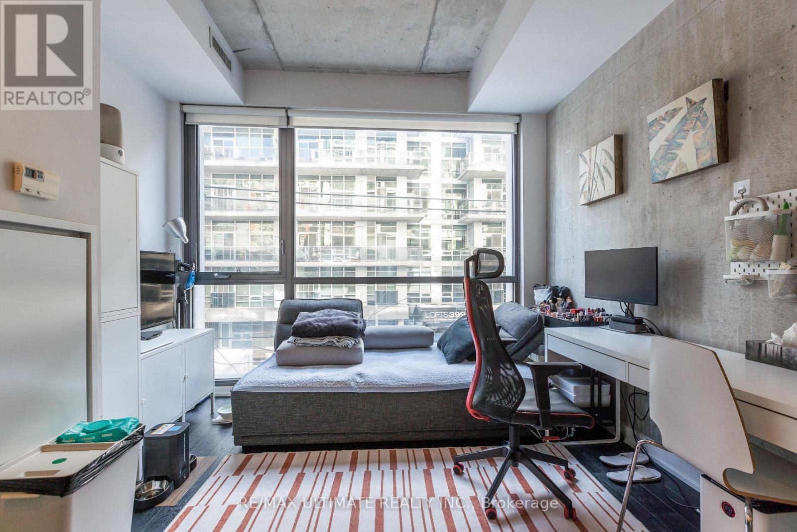 Fabulous "Home" on the "The Brant Park Lofts" in the heart of Vibrant King West Village-King West Neighborhood. This one-bedroom, with its modern design, makes it the perfect urban sanctuary. Bright, south-facing, open concept design with exposed concrete ceiling And Walls. Features 9 ft ceilings and large floor-to-ceiling windows. The kitchen boasts quartz countertops and a ceramic backsplash. Includes one locker. The boutique building offers 5-star amenities and enhanced security features, providing peace of mind for residents. Steps to all restaurants, cafés, fitness studios, nightlife, and close to the Financial District; directly across from Waterworks Food Hall & St. Andrews Park, with an off-leash dog area. (id:4555)