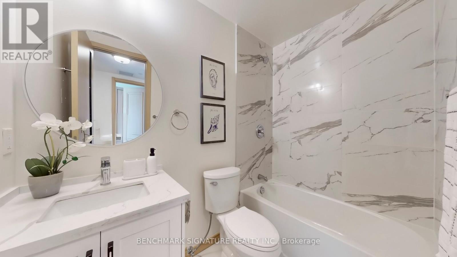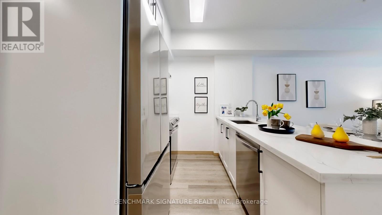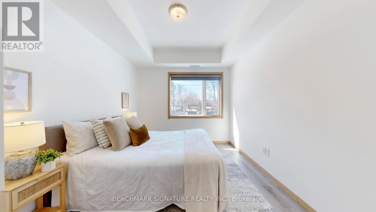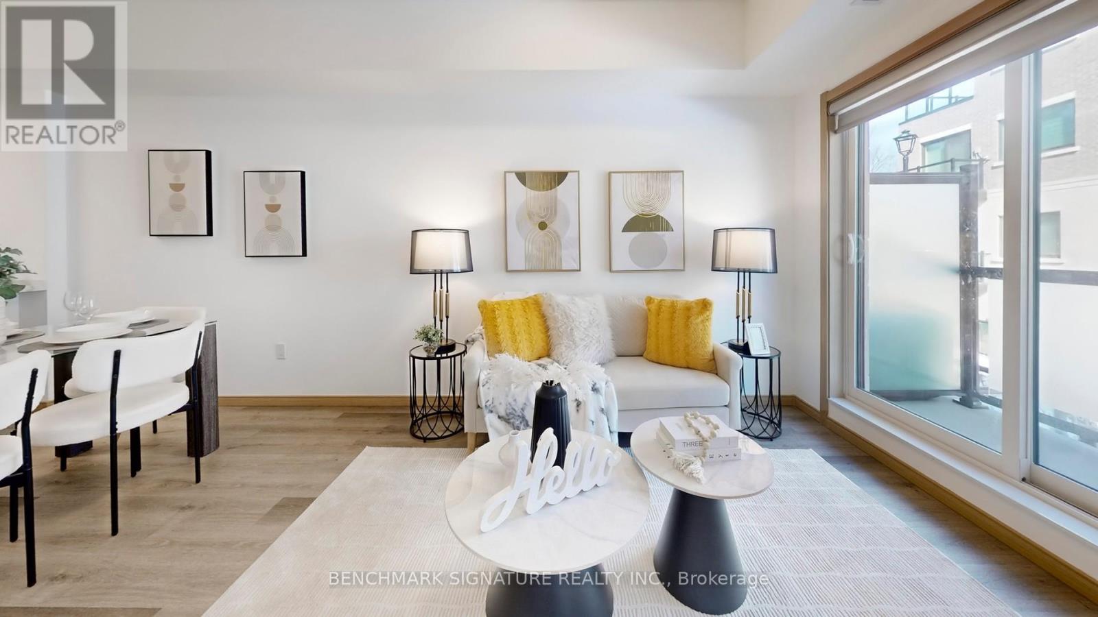 Welcome to this stunning, rarely available two-year-new modern flat-level stacked townhouse offering over 1,000 sq. ft. of beautifully designed living space in a quiet, family-friendly community. This bright and airy home features two generously sized bedrooms, two full bathrooms, and a versatile den with a closet-perfect as a third bedroom, stylish home office, or guest retreat. Enjoy a sun-filled open-concept layout with 9-ft smooth ceilings, sleek laminate flooring, and a contemporary kitchen complete with stainless steel appliances, quartz countertops, backsplash, undermount sink, and breakfast bar-ideal for both everyday living and entertaining. The spacious primary bedroom boasts a walk-in closet and a private 4-piece ensuite, while two balconies facing east and west flood the home with natural light and offer peaceful park views with refreshing cross-breezes. Conveniently located just minutes to Hwy 404, steps to TTC and York Region Transit, and close to Seneca College, Fairview Mall, parks, schools, dining, and shopping. Includes one underground parking space and one locker, plus low maintenance fees-an exceptional opportunity to own a bright, stylish home in one of the area's most desirable communities. (id:4555)