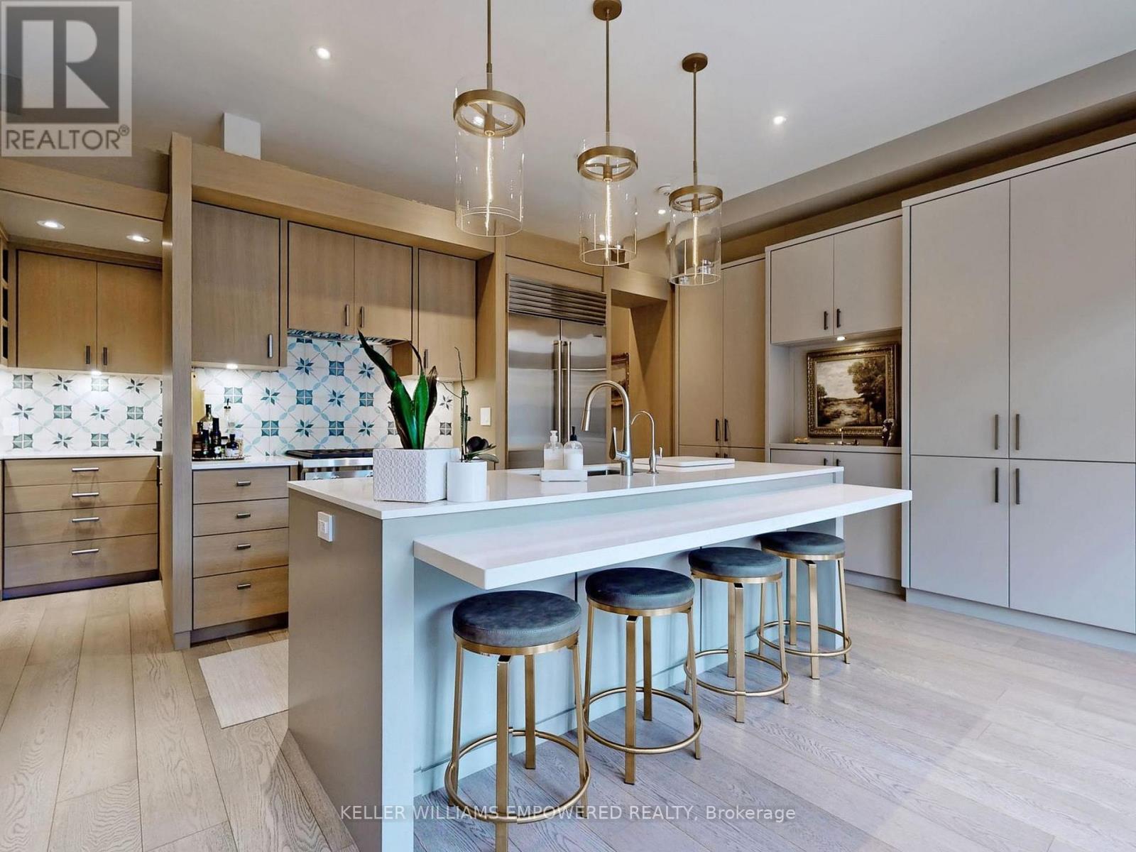 Modern luxury meets urban convenience in this exquisitely renovated home. Situated on a premium lot shaded by a majestic 250-year-old oak tree, this property offers meticulously renovated living space across three levels plus lower level. You'll adore the showpiece dual-tone kitchen featuring Wolf/Sub-Zero appliances, Caesarstone counters, and an oversized island with room for four bar stools. The open-concept main floor boasts soaring 9'8" ceilings, a floor-to-ceiling leatherback finished stone fireplace, phenomenal kitchen w/ dovetail drawers, pull-out drawers, reverse osmosis, instant hot water prepatory kitchen w/ sink, and seamless access to the entertainer's rear grounds. Upstairs, the primary suite stuns with a custom dressing room w/ automatic LED lights in cabinets and spa-like ensuite plus w/o to private balcony. Two additional bedrooms on the third level share access to a stylish bathroom and the incredible third-floor terrace - your private treehouse retreat. The lower level includes an oversized laundry room with dual wine fridges and abundant storage. Outside, the professionally landscaped grounds feature crushed granite flooring, nightscape lighting and an oversized storage shed. Just two blocks from Yorkville shopping, cafes and streetcar service & much more! This turnkey home combines luxury finishes, traditional charm and an unbeatable downtown location! Video and Audio may be on during viewings. (id:4555)