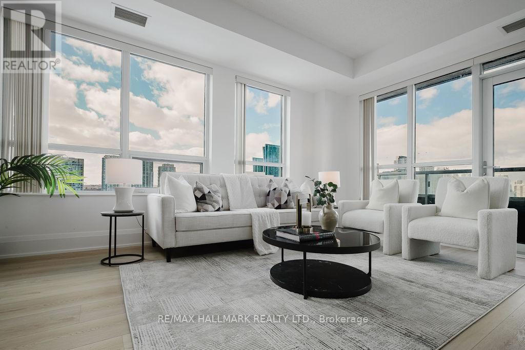 Welcome to Aristo at Avonshire by Tridel, an exceptional residence in the prestigious Harrison Garden community of North York. This stunning renovated top to bottom 2-bedroom suite offers breathtaking park views and refined finishes throughout - a rare opportunity to experience sophisticated urban living. Featuring 2 spacious bedroom, the suite is enhanced by soaring 9-foot ceilings, brand new laminate flooring throughout (except washrooms), and expansive windows that flood the space with natural light. Walkouts from the living room lead to a generous size private balcony. New modern chef's kitchen is appointed with mostly brand new stainless steel appliances, upgraded cabinetry, and elegant countertops, combining functionality with refined design. The suite also includes a full size stacked front-load washer and dryer, one parking space and one locker. Residents of Aristo enjoy access to an array of world-class amenities, including fully equipped fitness centre, sauna, party and entertainment rooms, meeting room, BBQ terrace and theatre. Ideally situated just minutes from Hwy 401, 404, 400, subway station, restaurants, shops, and schools, this residence also offers easy access to downtown Toronto. This is a rare opportunity to own or live in one of North York's most desirable communities - combining luxury, comfort, and convenience in one exceptional address. (id:4555)