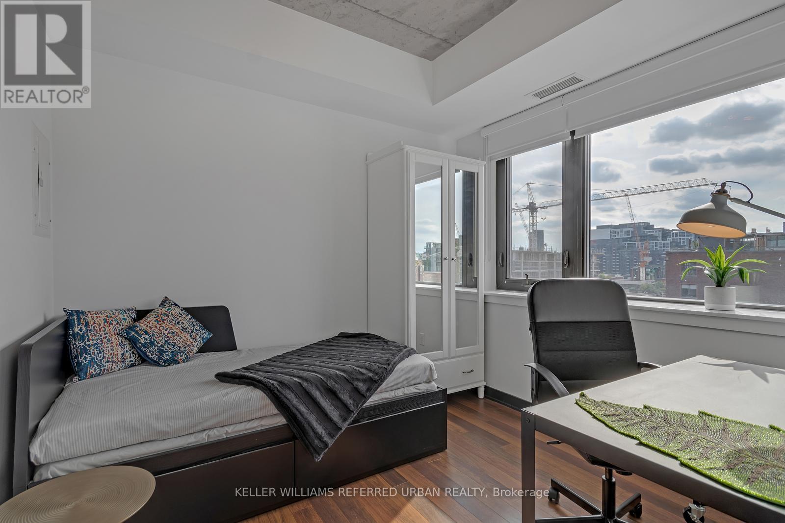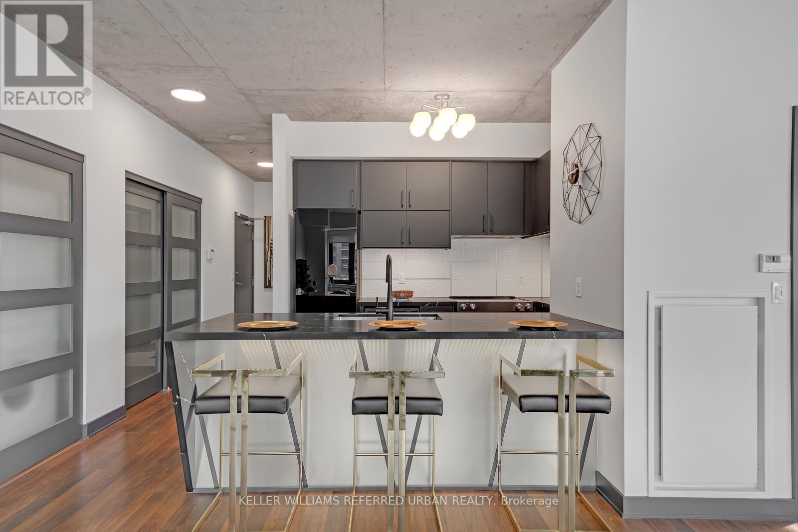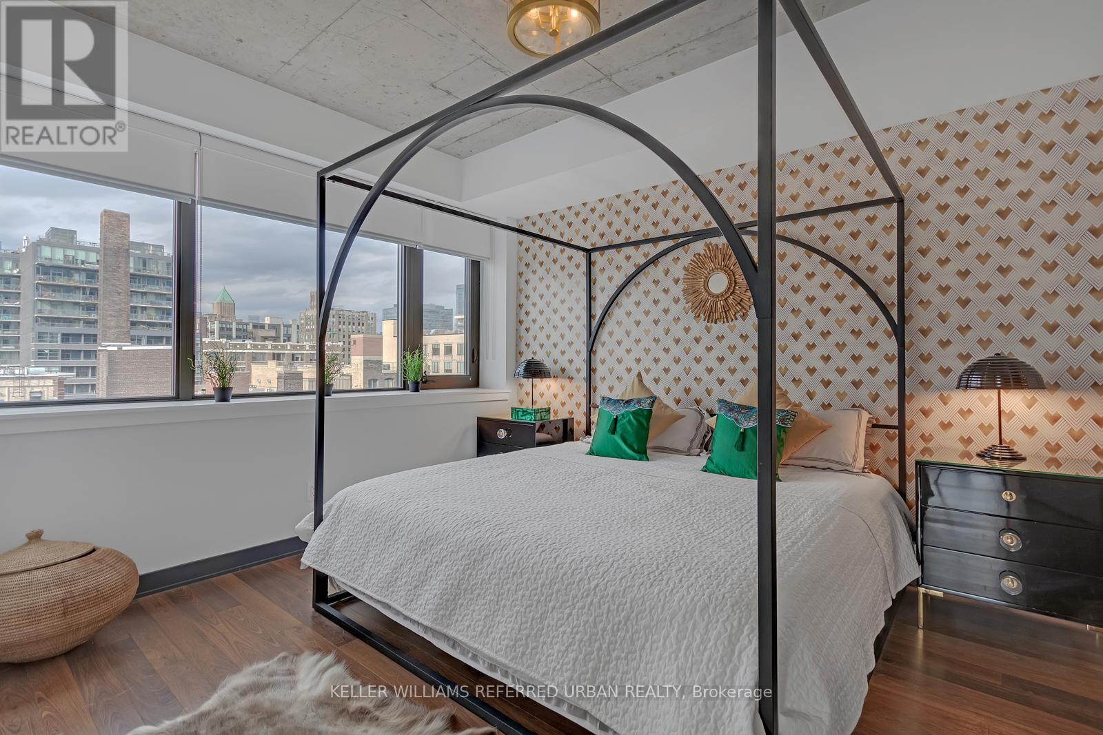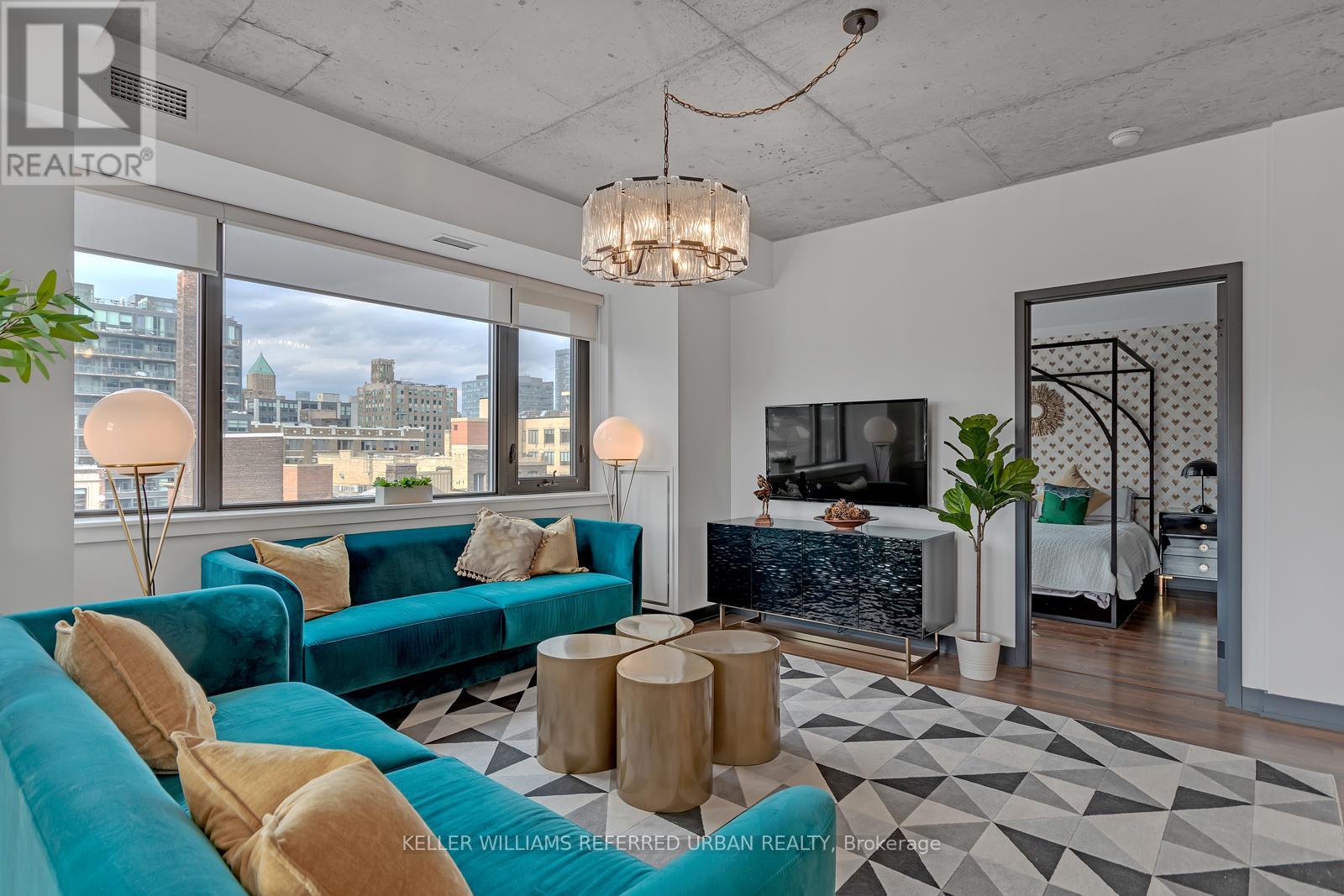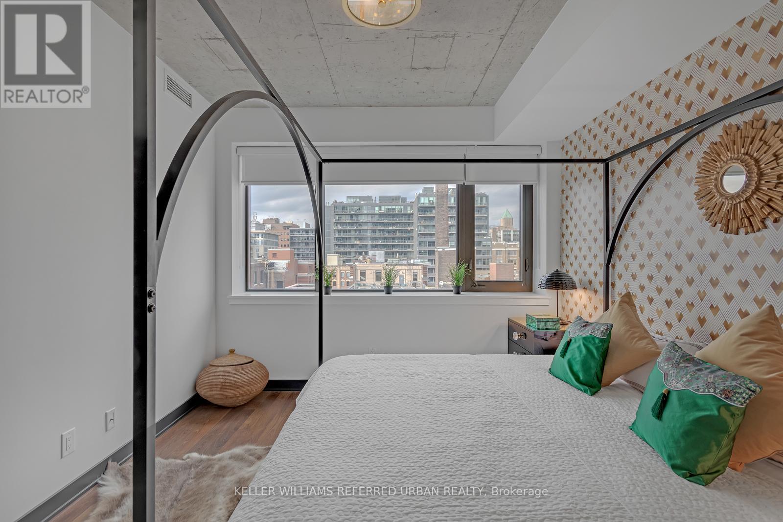 Highly Sought After 1 Of A Kind Mid-Rise Boutique Building On A Quiet St Near King & Spadina. Fully Furnished Sophisticated Mid-Century Chic 2 Bedroom Luxe Suite. This Absolute Gem Encapsulates The Finest Of Dt Living. Designer Kitchen, Stylish Lights, Blackout Blinds & Beautiful Hardwood T/O. Spacious Open Concept, 1085 Sqft Corner Suite With Soaring Exposed Concrete Ceiling. Enjoy A Coffee On Your Stylish Breakfast Bar Or Watch The Sunset On Priv. Balcony (id:4555)