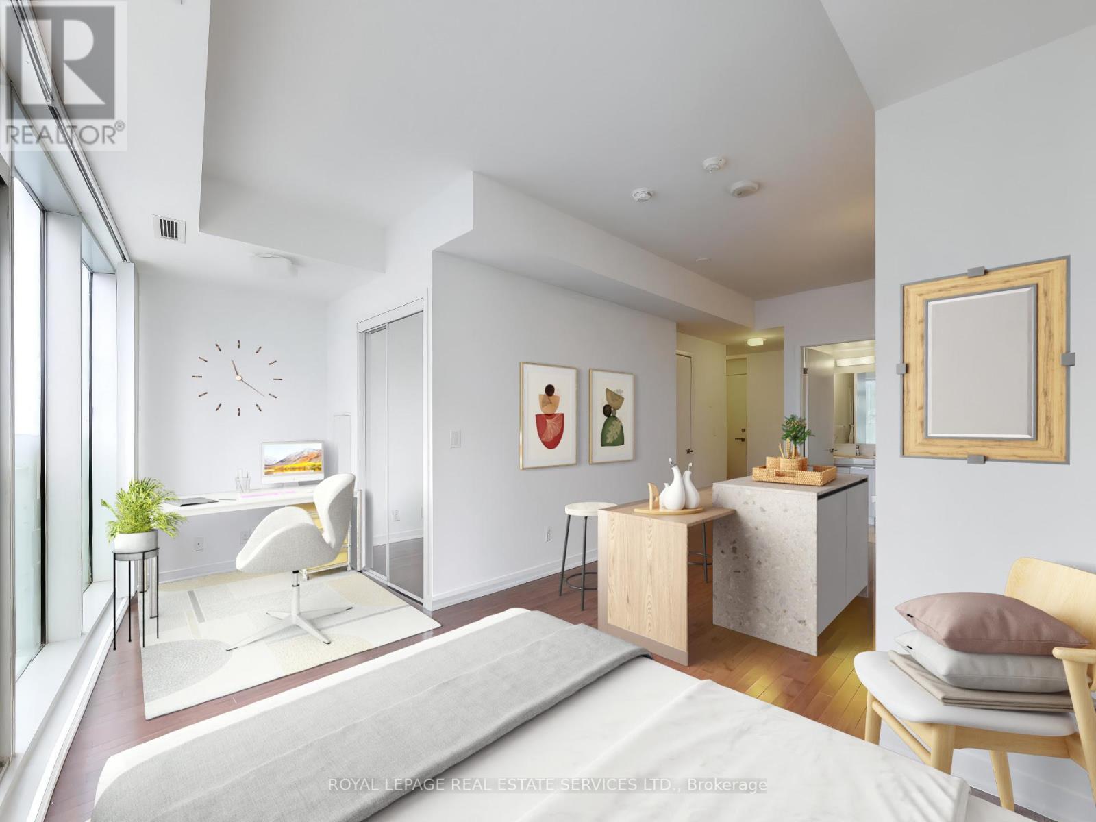 Perched on the 30th floor, this stunning bachelor suite offers elevated city living with 9-ft ceilings and dramatic floor-to-ceiling windows that flood the space with natural light. Enjoy a spacious, open layout that comfortably accommodates a kitchen island, beautifully paired with sleek designer appliances perfect for both everyday living and entertaining. Also enjoy a separate sun-filled studio space that provides the perfect work-from-home retreat or creative nook. You can then step onto your Juliette balcony and take in breathtaking, unobstructed views of the skyline and Lake Ontario -a truly spectacular backdrop both day and night. Located in the heart of downtown Toronto, residents are just steps from the vibrant waterfront at Toronto Harbourfront, the iconic CN Tower, Rogers Centre, and convenient access to the Gardiner Expressway. Enjoy seamless connectivity with direct access to the underground PATH, placing you moments from Longo's Grocery Store, Union Station, Scotiabank Arena, and Maple Leaf Square. This dynamic neighborhood perfectly blends Toronto's financial district with premier residential, sports, and entertainment hubs. The building itself offers exceptional, resort-style amenities with a 24-hour concierge and luxurious common spaces including a fully equipped fitness and weight center, yoga studio, party and theatre rooms, business and meeting suites, and elegant lounge areas. Relax and recharge in the indoor pool complete with separate hot and cold Jacuzzis, steam rooms, and saunas. Families will also appreciate the secure, private children's playroom located on the mezzanine level. An incredible opportunity to live in one of Toronto's most sought-after locations - where convenience, lifestyle, and luxury meet. (id:4555)