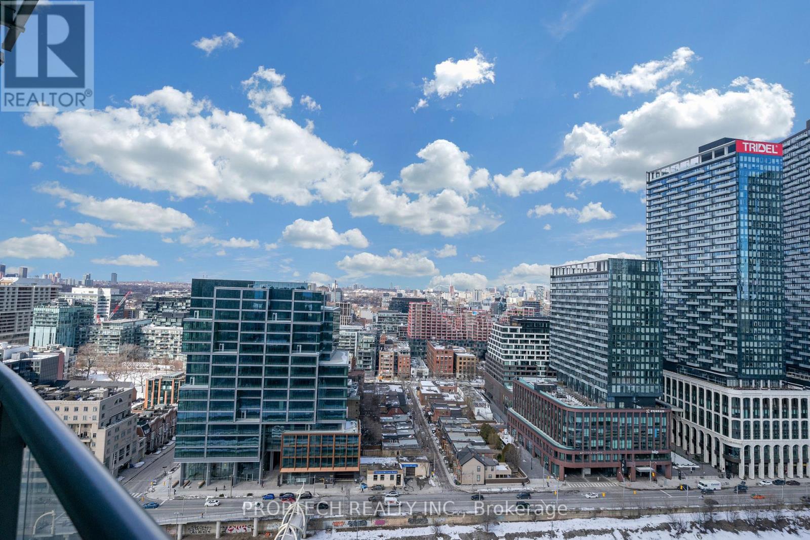 Welcome to Suite 2902 at 21 Iceboat Terrace - a bright, high-floor condo in the Renown Parade 2 by Concord in the heart of CityPlace . This freshly painted unit features laminate flooring and modern LED lighting throughout. The contemporary kitchen has been beautifully updated with brand new quartz countertops and a matching quartz backsplash, offering a sleek, and stylish finish. This well-appointed unit features a functional open-concept layout, 9 ft ceilings, a generously sized bedroom with floor-to-ceiling windows offering stunning city views, filling the space with natural light. Enjoy full access to the Club Parade - one of downtown Toronto's most impressive amenity spaces. Featuring a 24-hour concierge, indoor pool, fully equipped fitness centre, yoga studio, squash courts, theatre room, party and games rooms, rooftop terrace with BBQs, guest suites, kids' play area, and ample visitor parking. Steps to the waterfront, parks, TTC, PATH, Union Station, The Well, Financial & Entertainment Districts and more! - perfect for end-users or investors seeking downtown convenience and lifestyle. (id:4555)