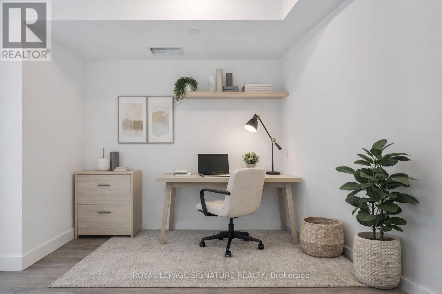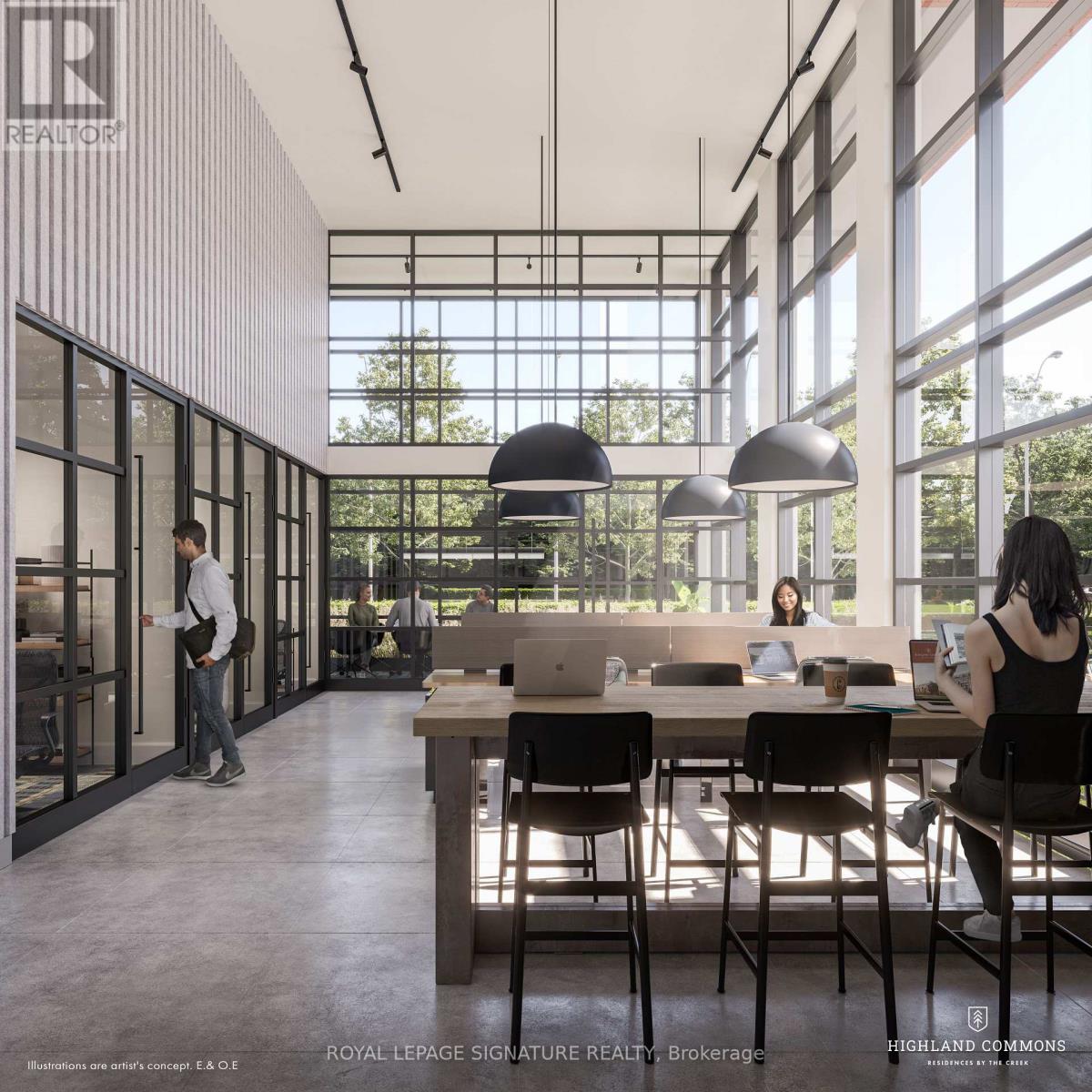 Be the first to live in this sleek 1+1 bedroom, 2-bath suite at Highland Commons by Altree Developments, offering 622 sq ft of thoughtfully designed interior space plus a 51 sq ft balcony, with an open-concept living/dining area, modern kitchen with integrated appliances and contemporary cabinetry, spacious den ideal for a home office or guest space, a bright bedroom with large closet, two spa-inspired bathrooms with matte black fixtures and glass shower, wide-plank flooring throughout, floor-to-ceiling windows, in-suite stacked laundry, 1 EV parking space and locker, all in a brand new midrise community steps to UTSC, Centennial College, ravine trails, parks, transit and quick access to Hwy 401, with impressive building amenities including 24/7 concierge, co-working space, dual-level gym, party room, outdoor pool, rooftop terrace, basketball court, games room and more for a complete urban-meets-nature lifestyle in Highland Creek (id:4555)