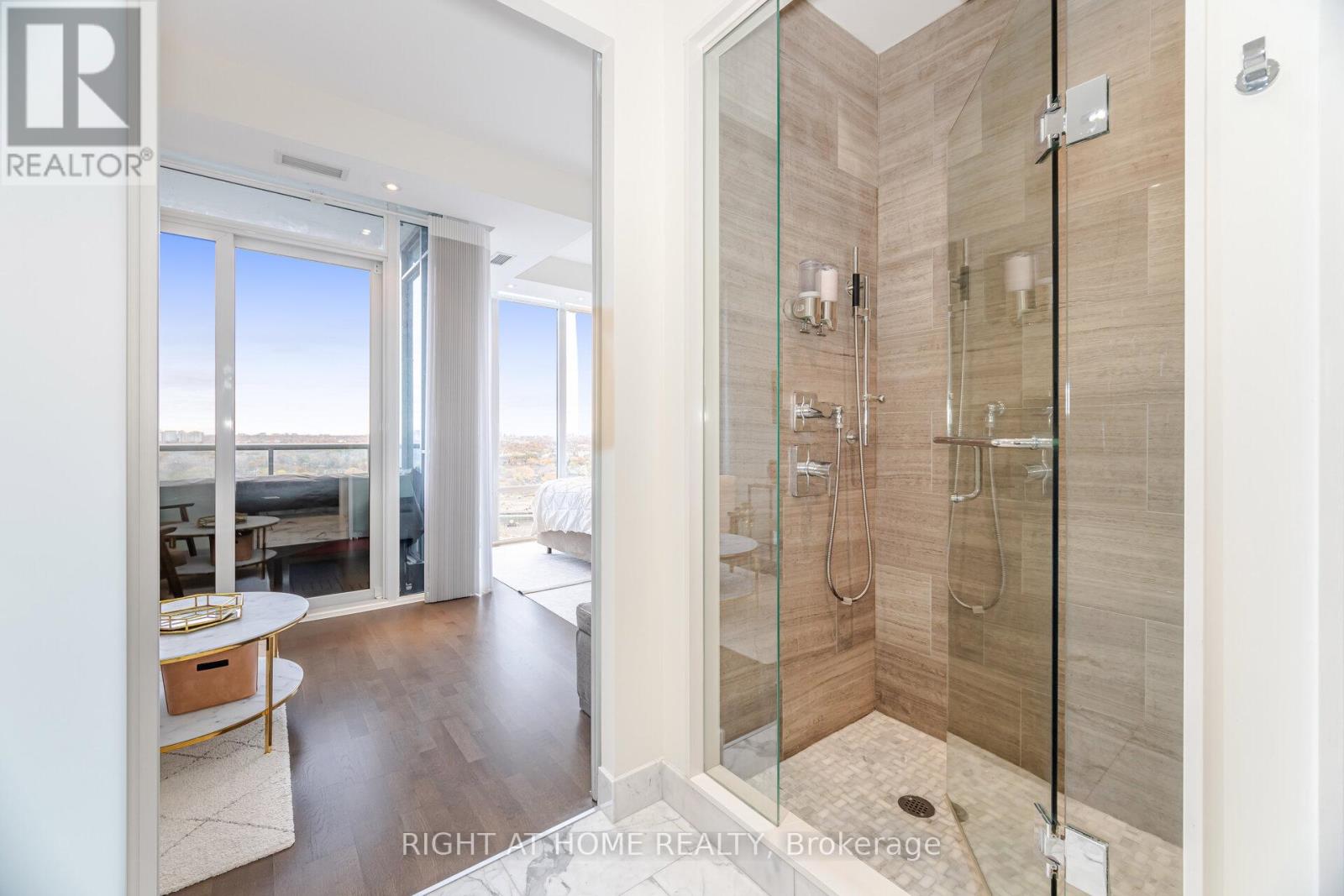 Remarkable Luxury Living in this incredibly spacious condo offering almost 1,900 sqft of interior living space plus 300sqft of wrap-around terrace and second balcony. A truly expansive lifestyle experience featuring 3 large bedrooms + enclosed den and 3 bathrooms. Enjoy floor-to-ceiling windows, 10-foot ceilings, and custom Hunter Douglas remote-controlled window coverings that frame panoramic city and lake views. The large open-concept layout is complemented by custom cabinetry, a walk-in laundry room, and a separate walk-in pantry/storage room-all designed for convenience and modern living. The residence includes two luxurious 5-piece bathrooms adorned with marble finishes and a 2-piece powder room. The unit has been freshly painted. Enjoy the convenience of 2 (side-by-side) parking with a fully installed EV charger, plus one locker for even more storage. Residents enjoy access to over 30,000 sqft of resort-style amenities, including indoor and outdoor pools, hot tubs, a state-of-the-art fitness centre, basketball/pickleball court, party rooms, billiards, a lounge, 24-hour concierge, free visitor parking, and much more. A rare opportunity to own one of the largest and most desirable suites in the building-offering unparalleled space, style, and amenities in an unbeatable location. (id:4555)