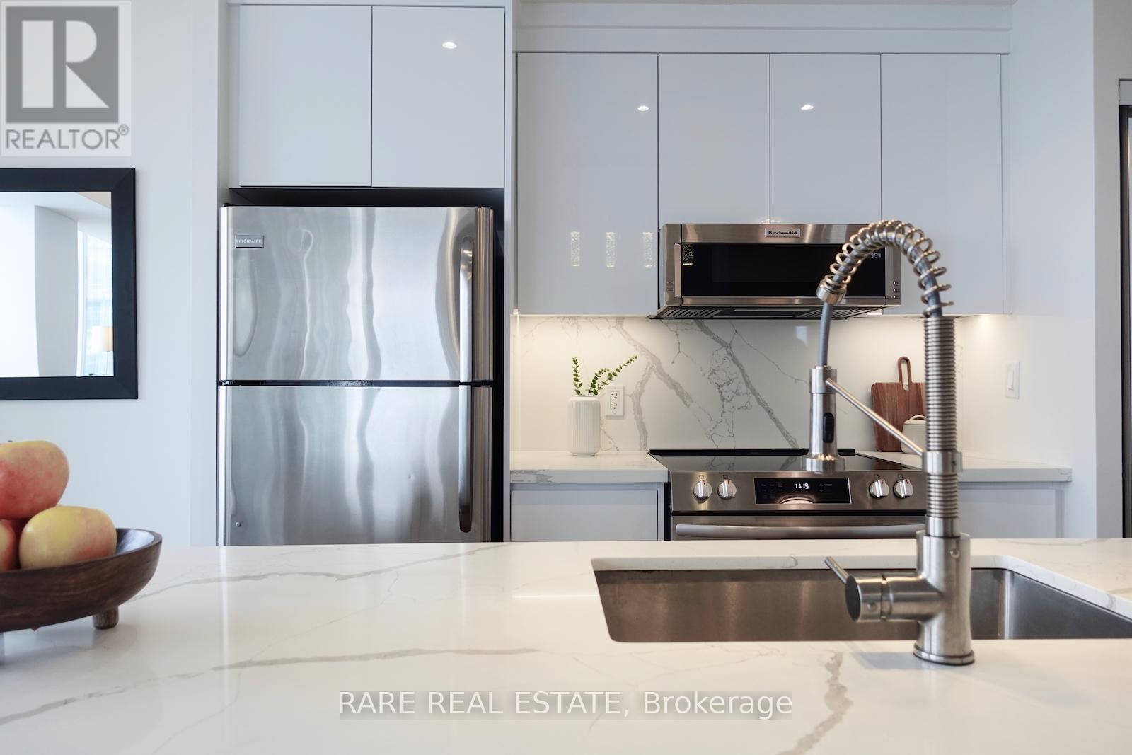 Step into sophisticated city living at Unit 2006 located in Emerald City. This 2-bedroom + den, 2-bath residence offers over 1,000 sq ft of sun-drenched, open-concept living space with southwest unobstructed views. Hardwood floors flow throughout, and the renovated luxury kitchen features quartz countertops, a centre island, and brand-new appliances including stove, dishwasher, and washer/dryer. The primary suite boasts a walk-in closet and 4-piece ensuite, while the second bedroom is bright and spacious. The den is perfect for a home office or additional storage. Includes one underground parking spot and locker. Location is unmatched: steps from Don Mills Subway Station with underground access to Fairview Mall, plus quick connections to Highways 401 and 404, parks, and all conveniences of Don Mills & Sheppard. Enjoy the luxury of a well-managed building with concierge and amenities, combining premium upgrades, functional layout, and a rare high-floor location. (id:4555)